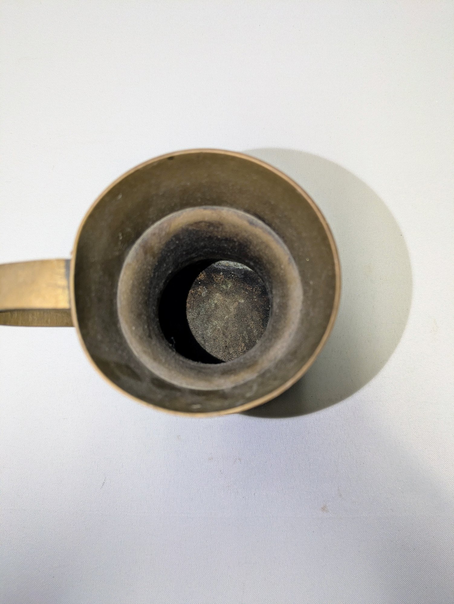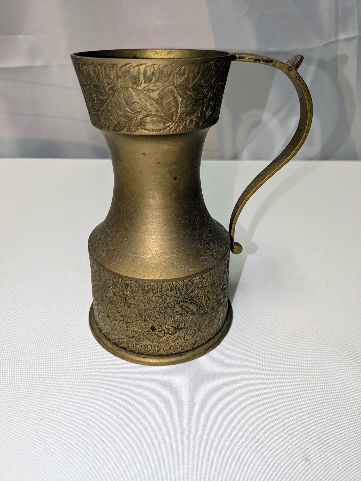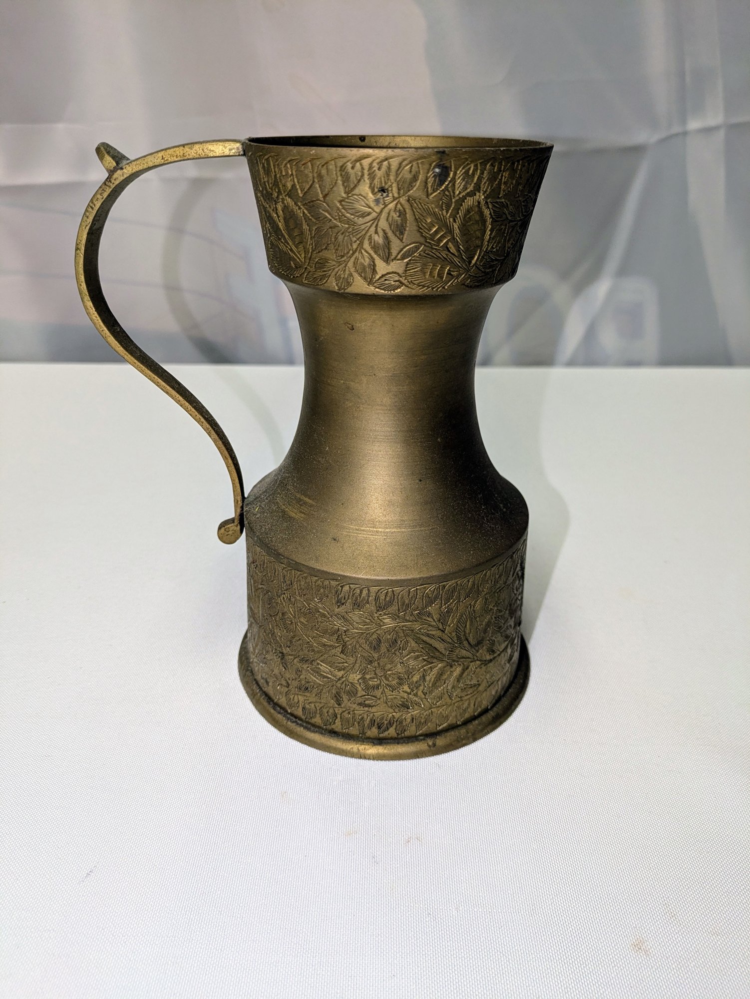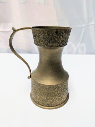 Intricate Design Detail. Some light marks, consistent with age and brass. Overall, Very Good Vintage Condition. Please see all photos as part of the description and condition. 7.25"H x 4.25" Base / 5.5" From Handle to End