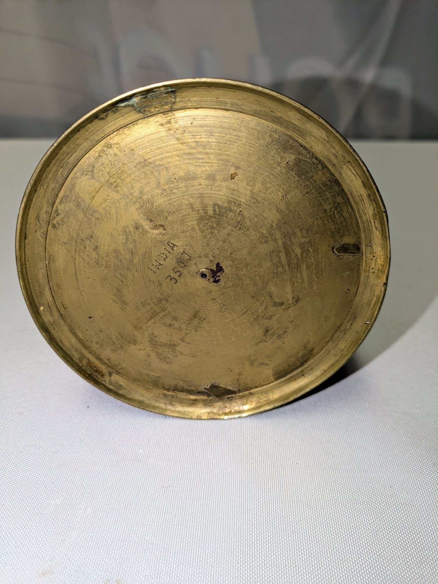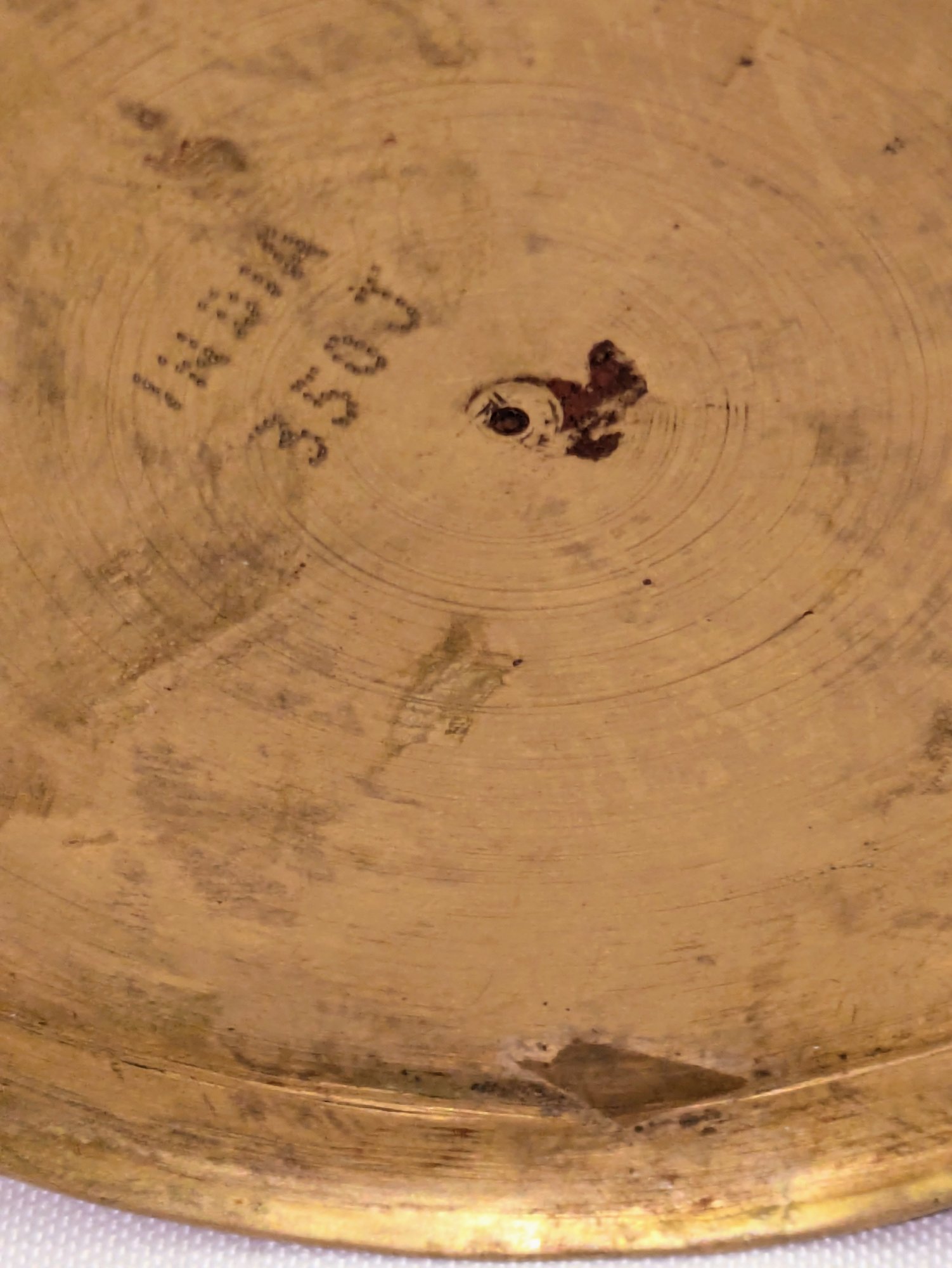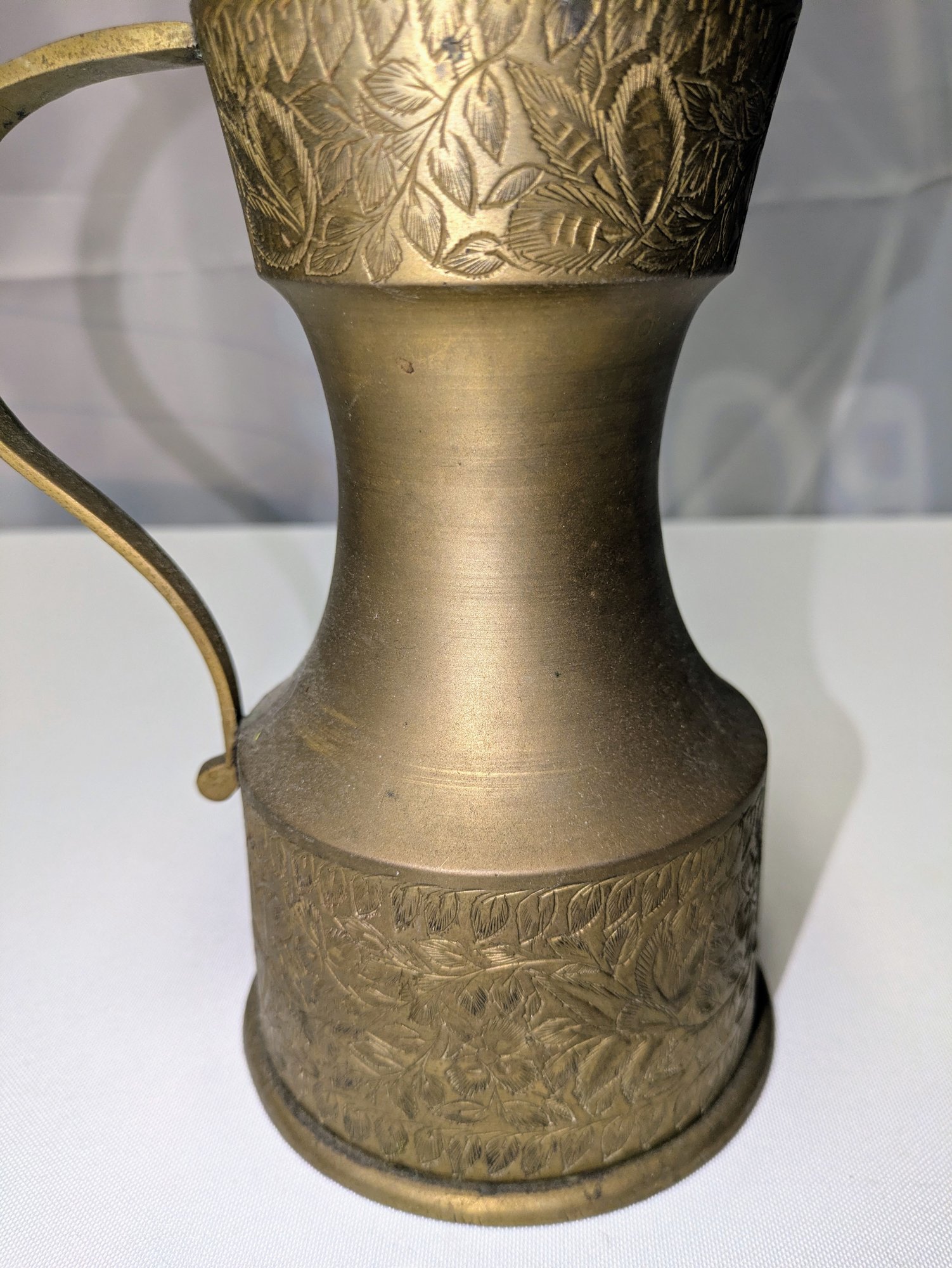 Intricate Design Detail. Some light marks, consistent with age and brass. Overall, Very Good Vintage Condition. Please see all photos as part of the description and condition. 7.25"H x 4.25" Base / 5.5" From Handle to End