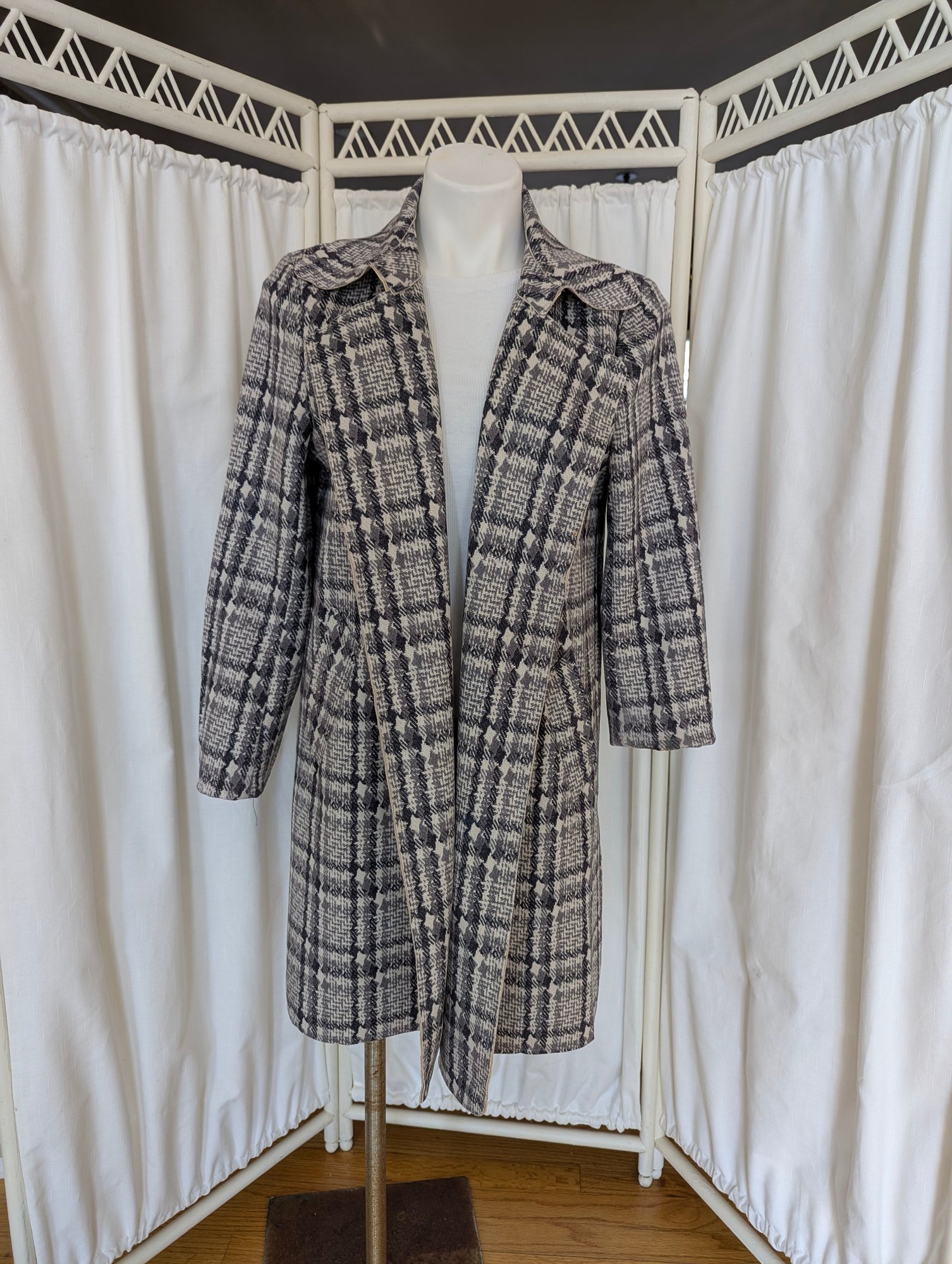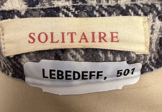 Fabric is really soft possibly a polyester blend with elastin. Size medium to Large