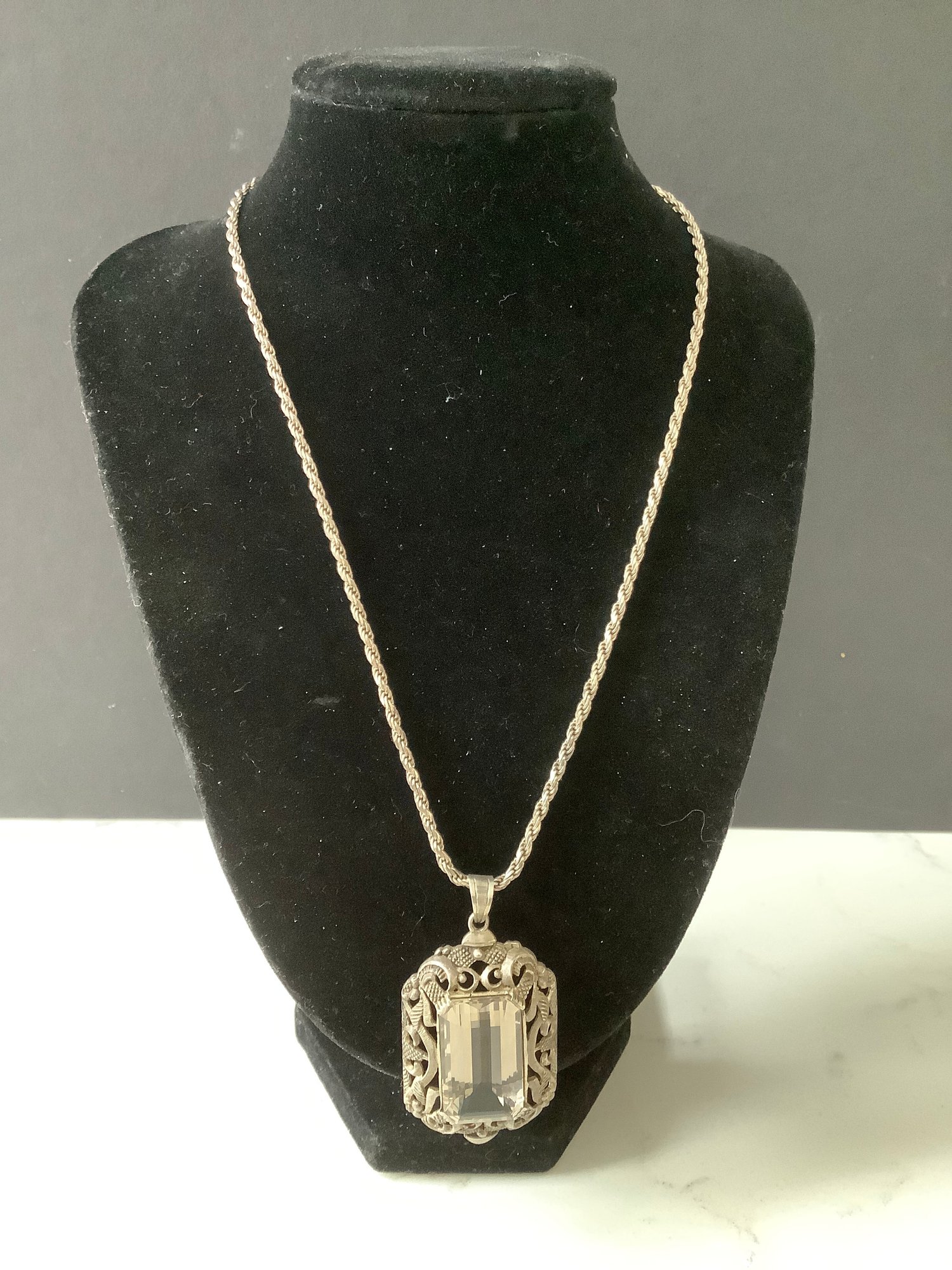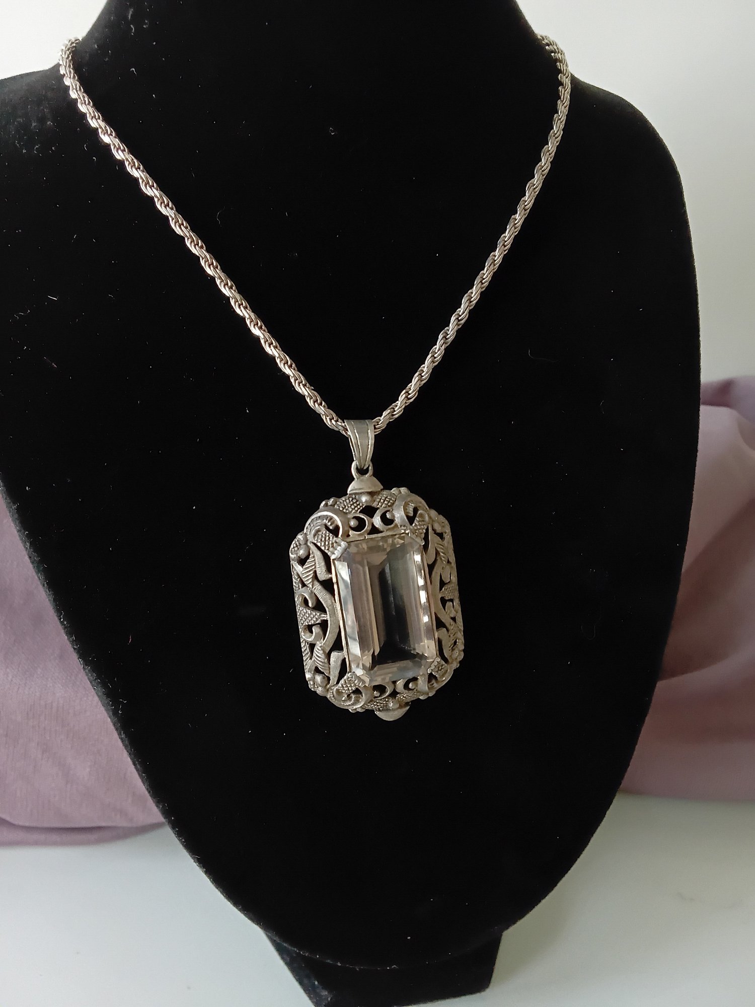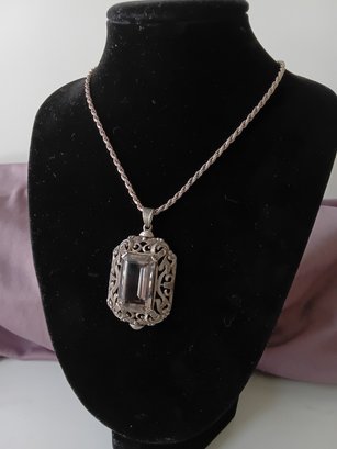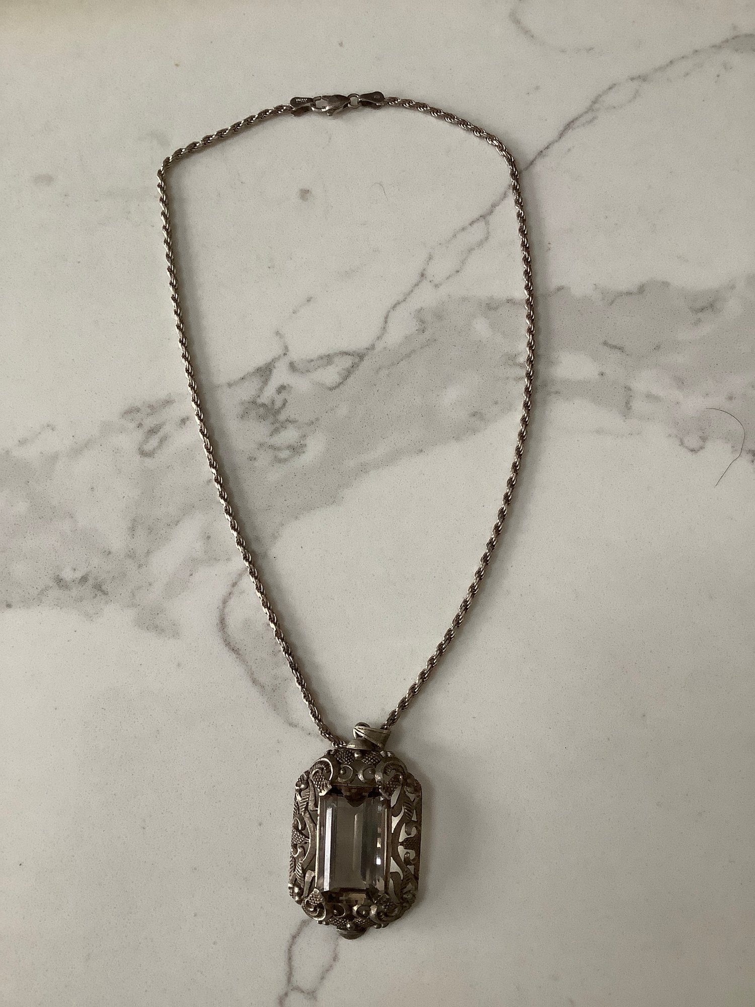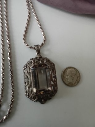 Vintage Sterling Silver 835 Rock Crystal Pendant Necklace #5