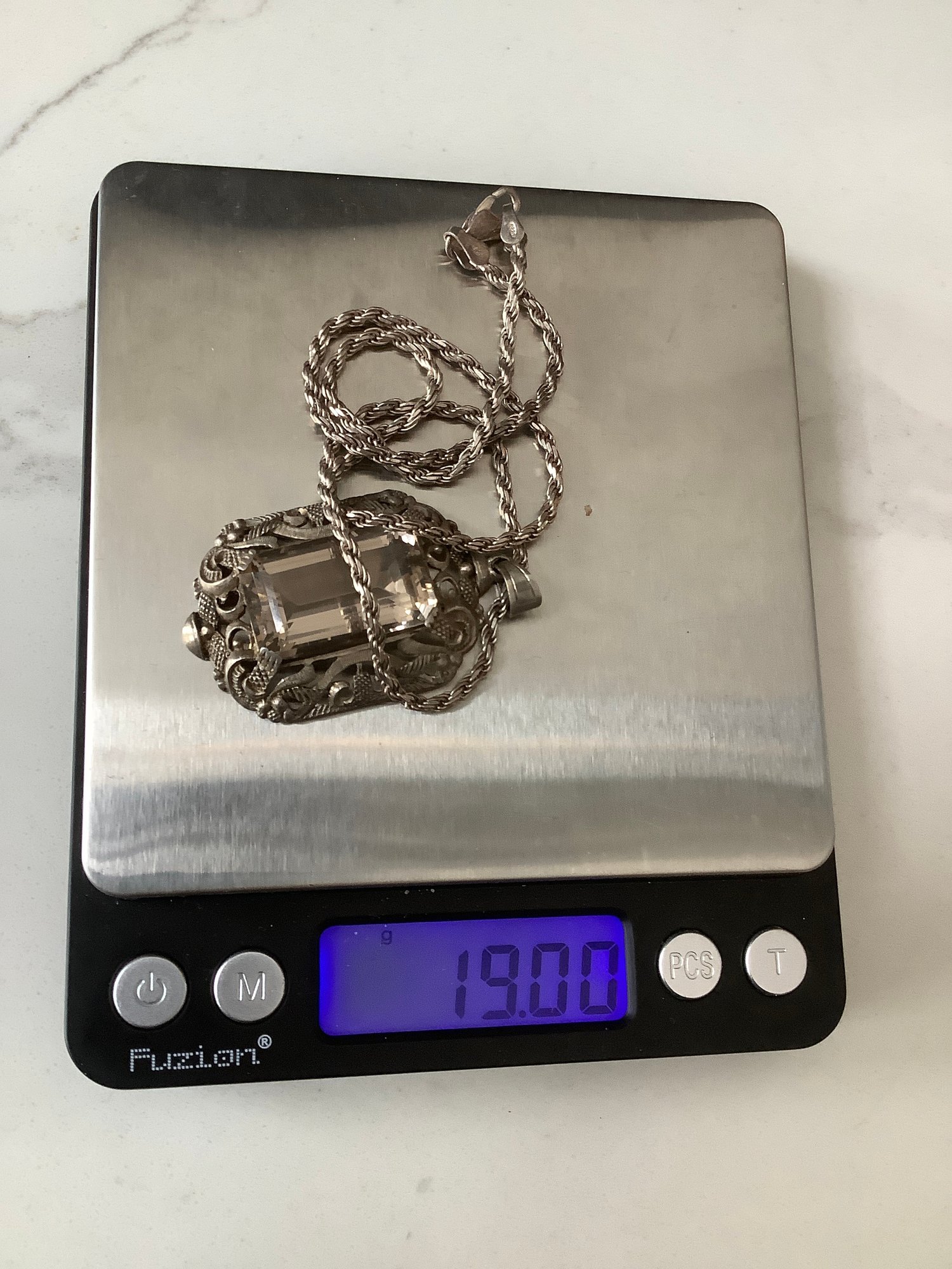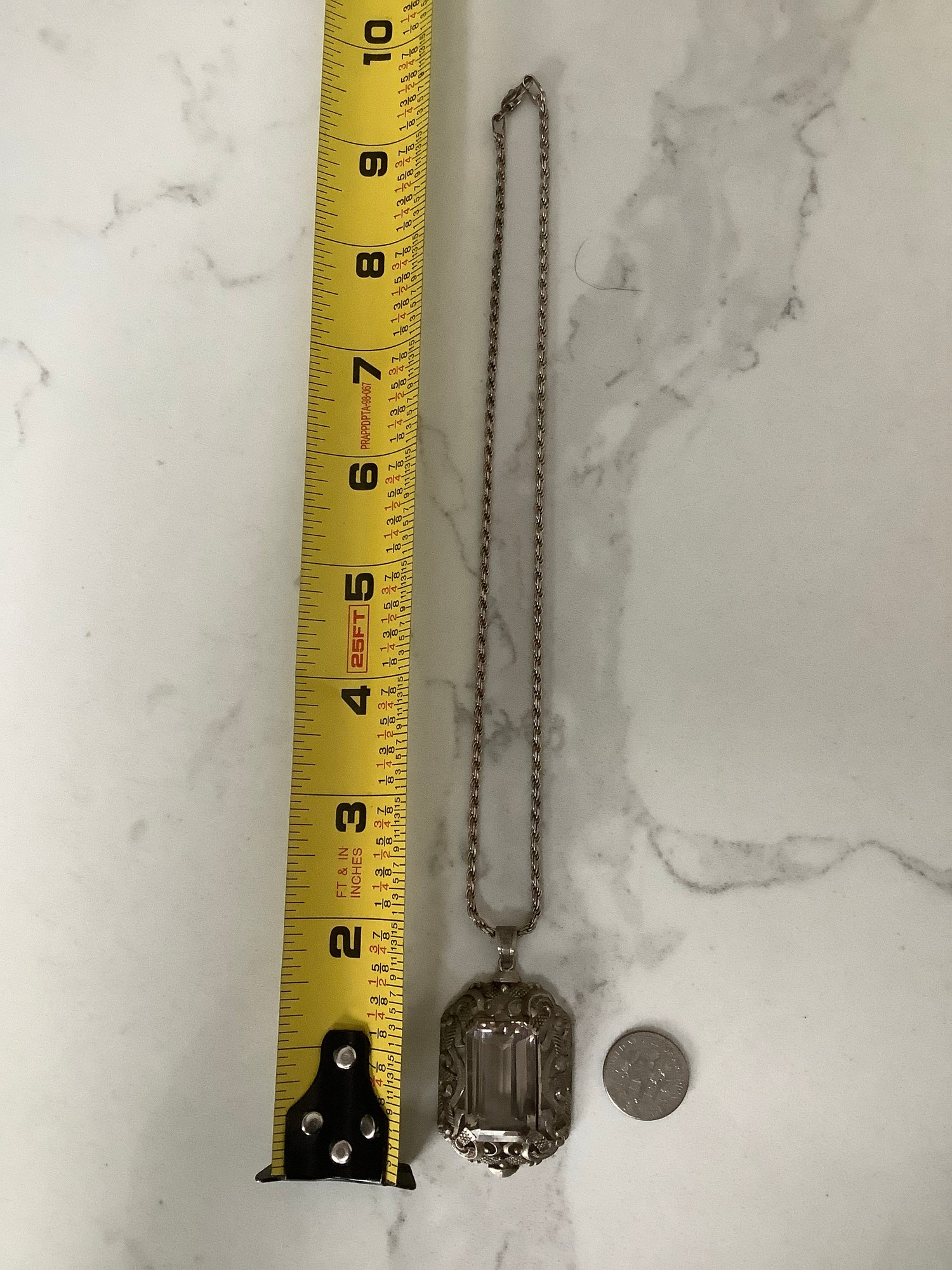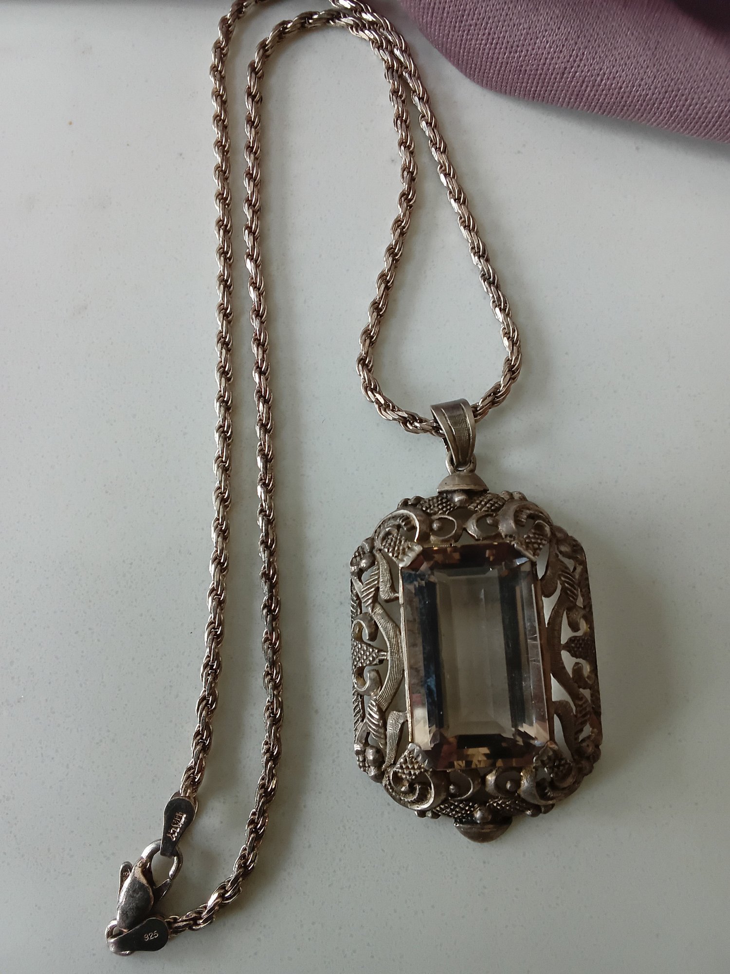 Vintage Sterling Silver 835 Rock Crystal Pendant Necklace #5