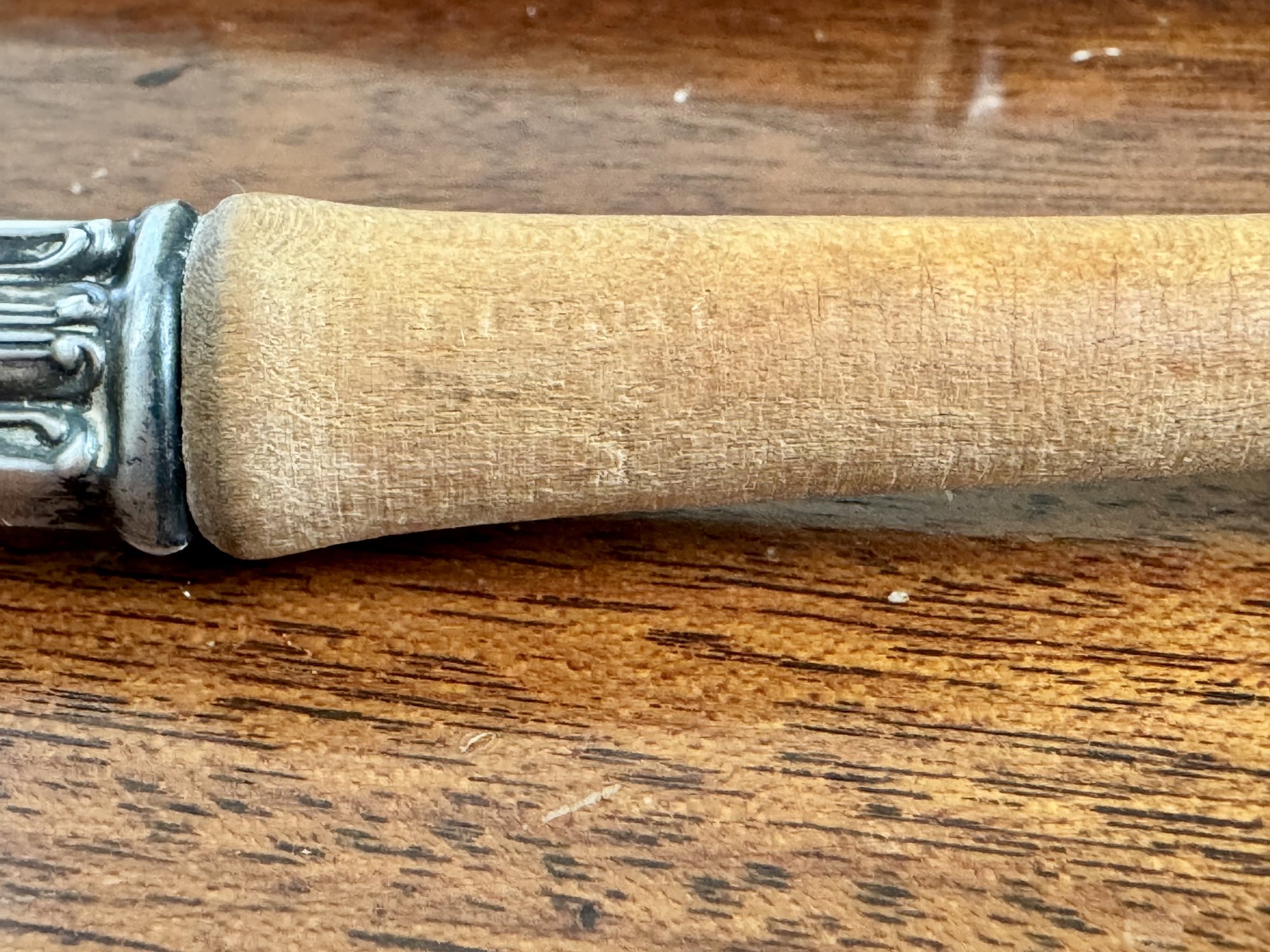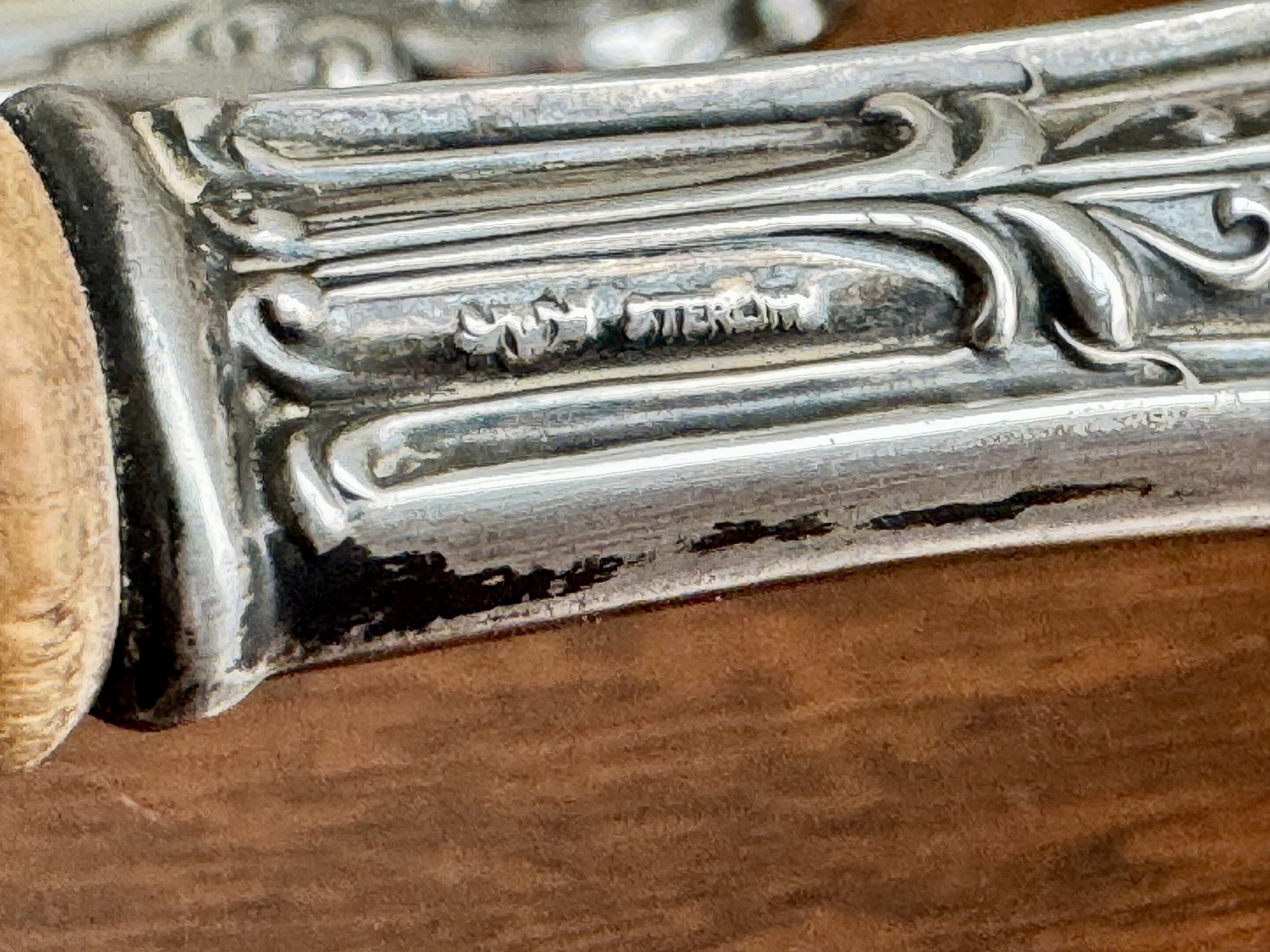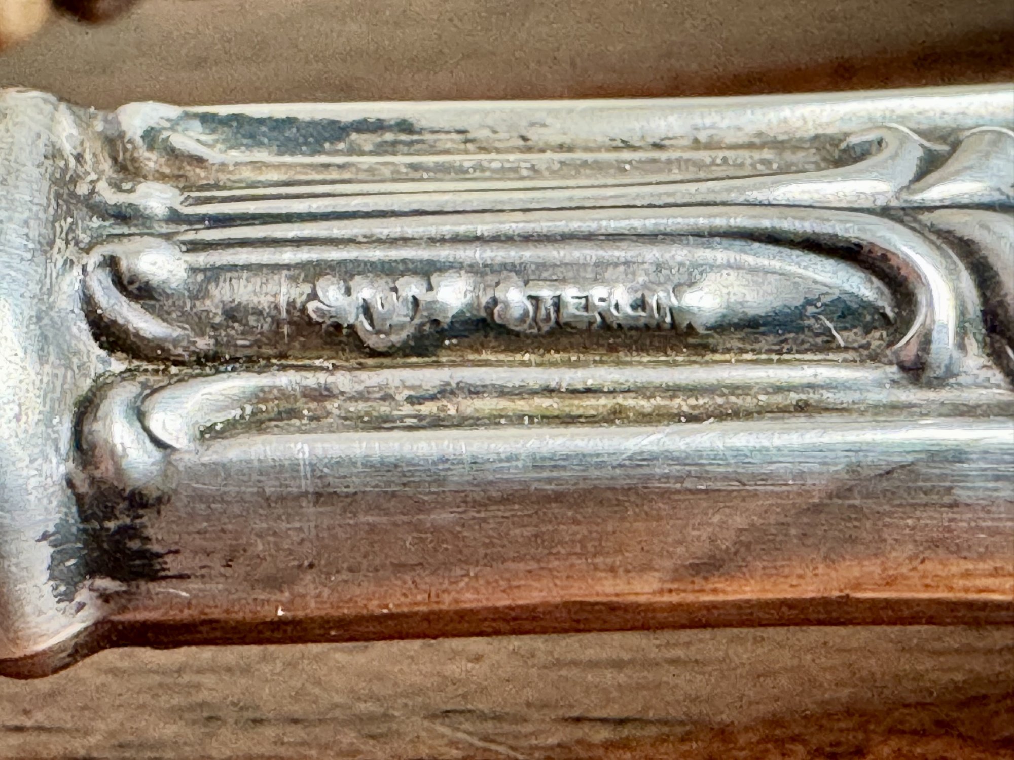 Note: Good vintage condition. Sterling handles show light surface wear and age-appropriate patina. Wood portions show normal signs of use consistent with age.