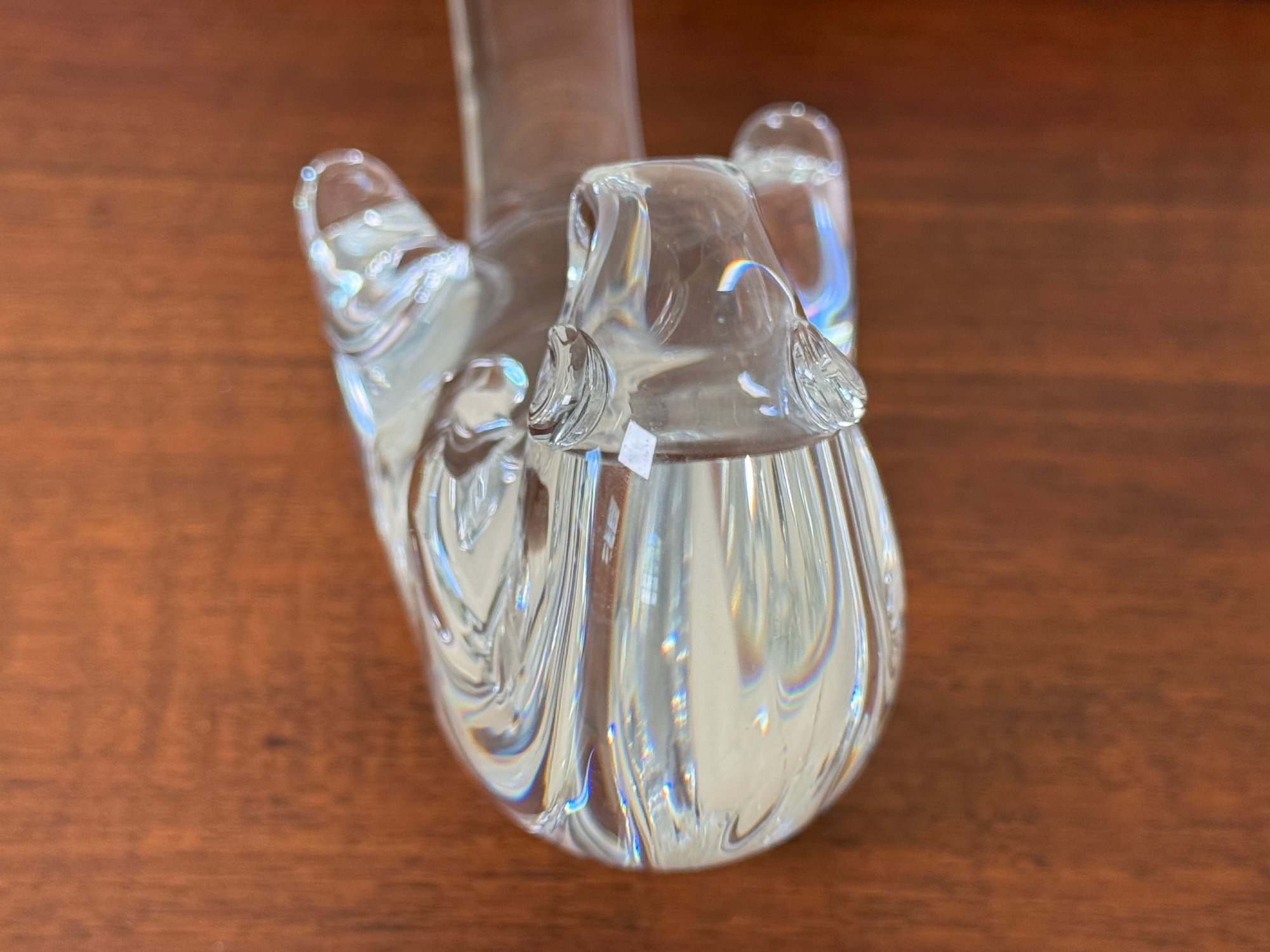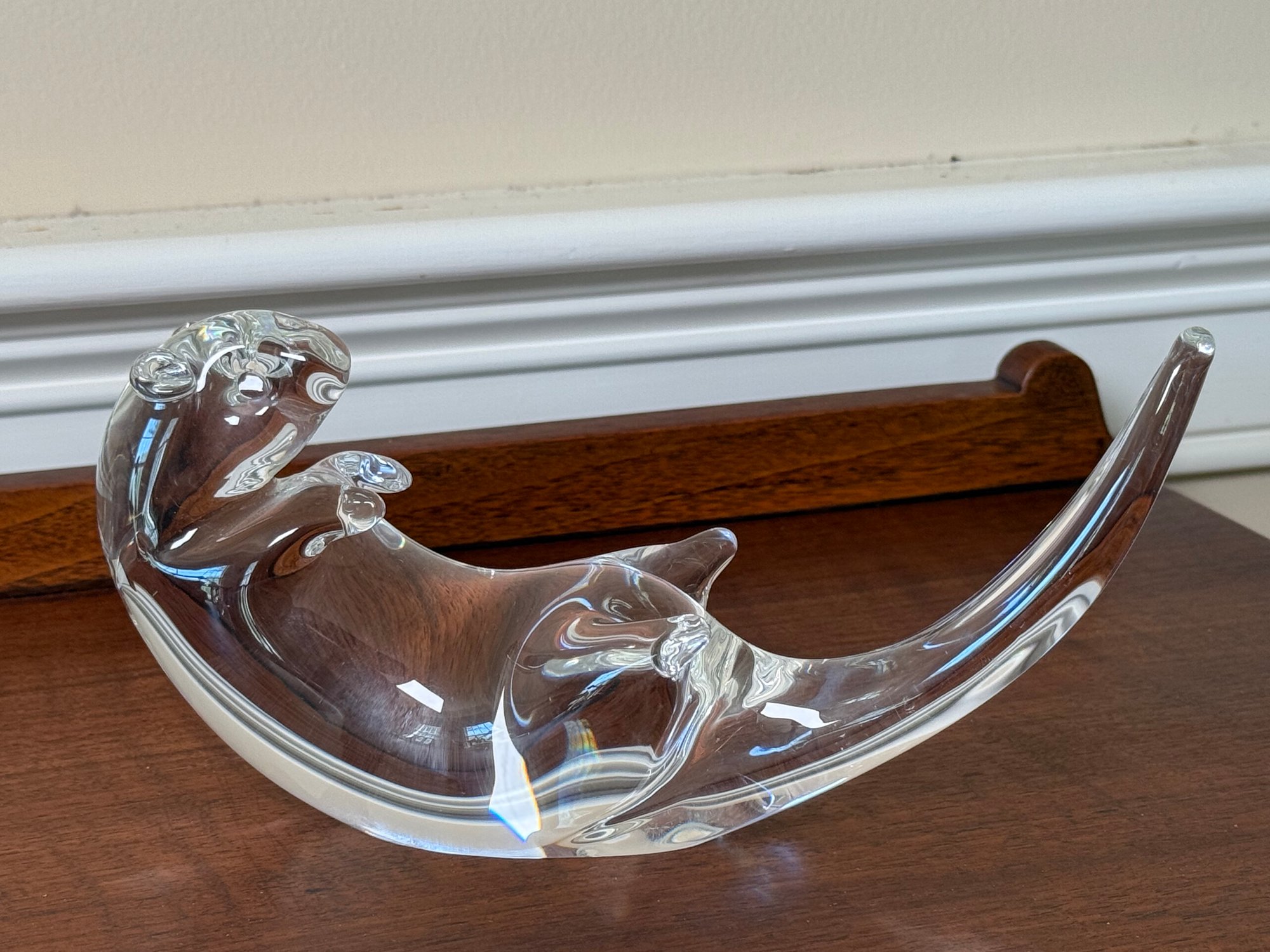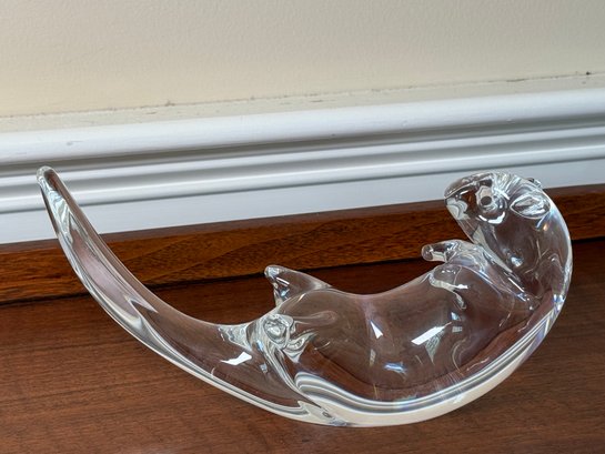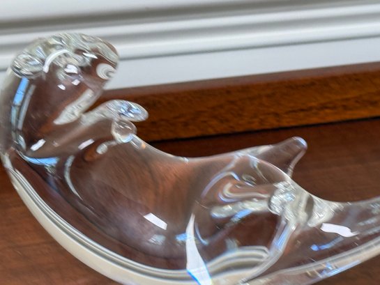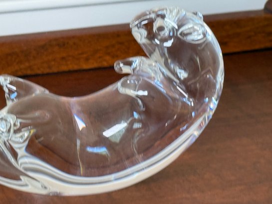 This gorgeous Steuben glass seat otter was designed by James Houston in 1978. Crafted by USA Glassworks Corning NY. The luxury brand Steuben was found by Ferderick Carder in 1903.