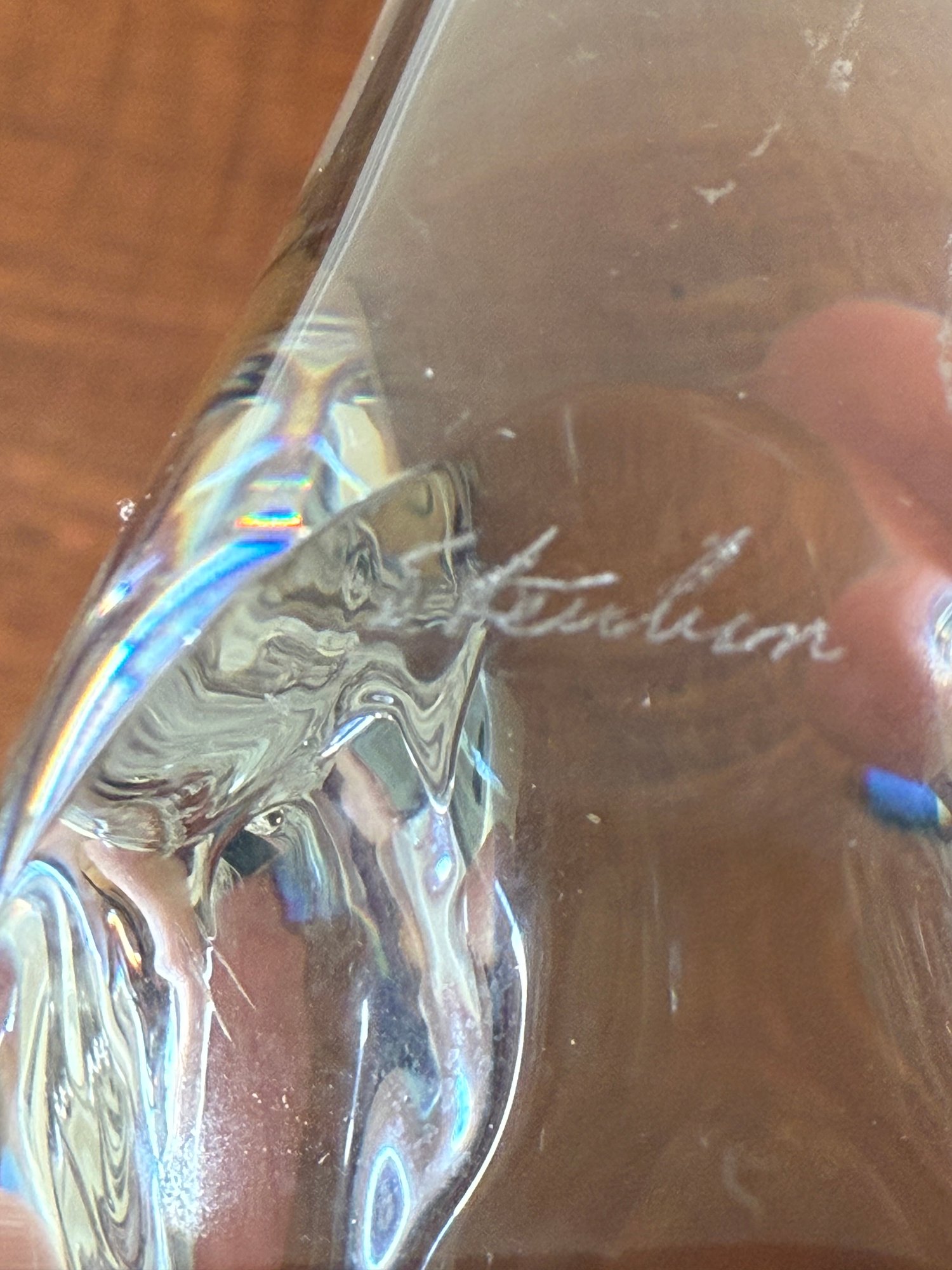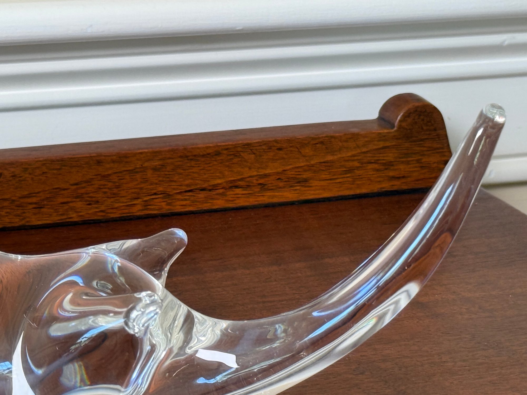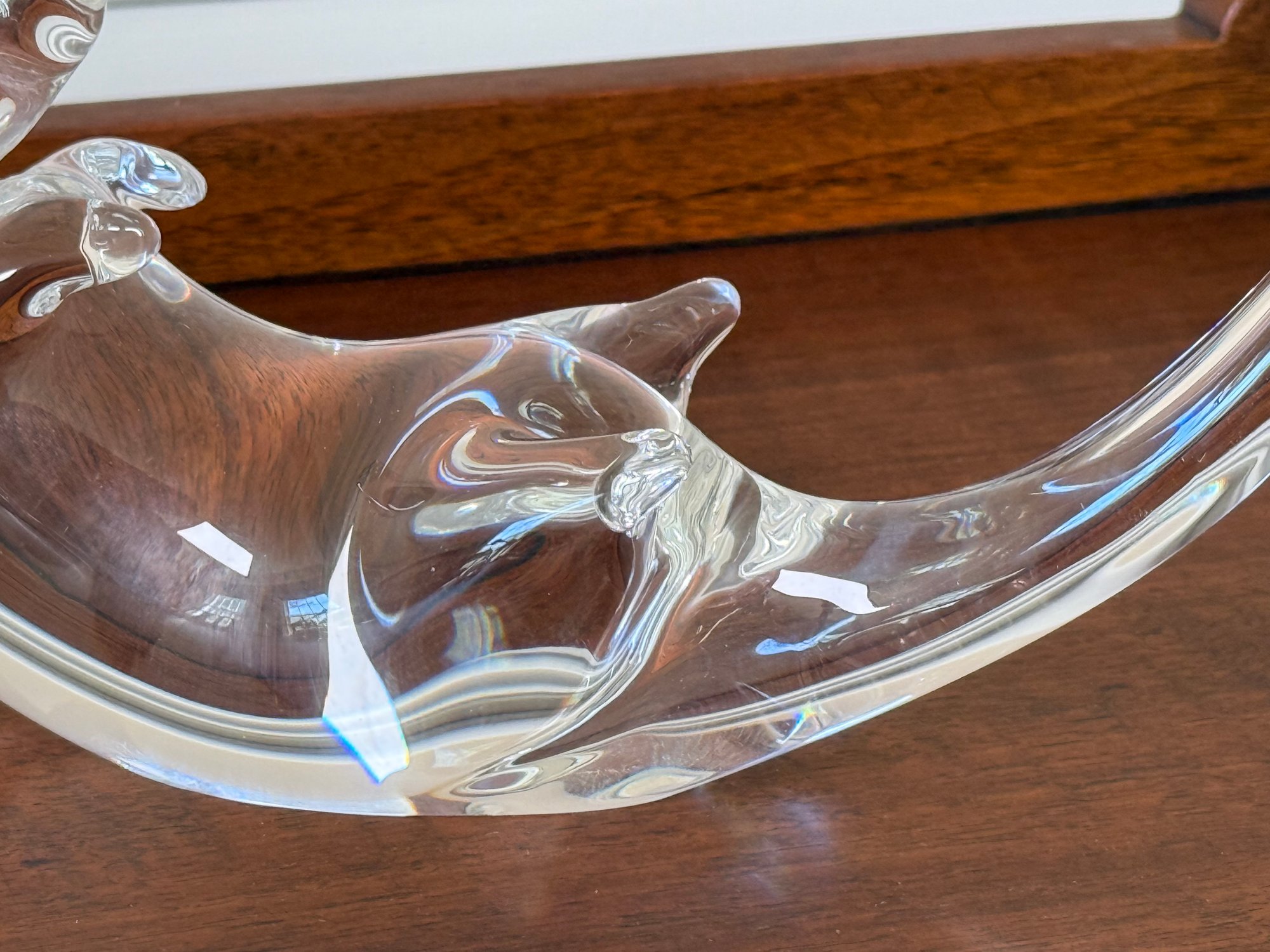 This gorgeous Steuben glass seat otter was designed by James Houston in 1978. Crafted by USA Glassworks Corning NY. The luxury brand Steuben was found by Ferderick Carder in 1903.