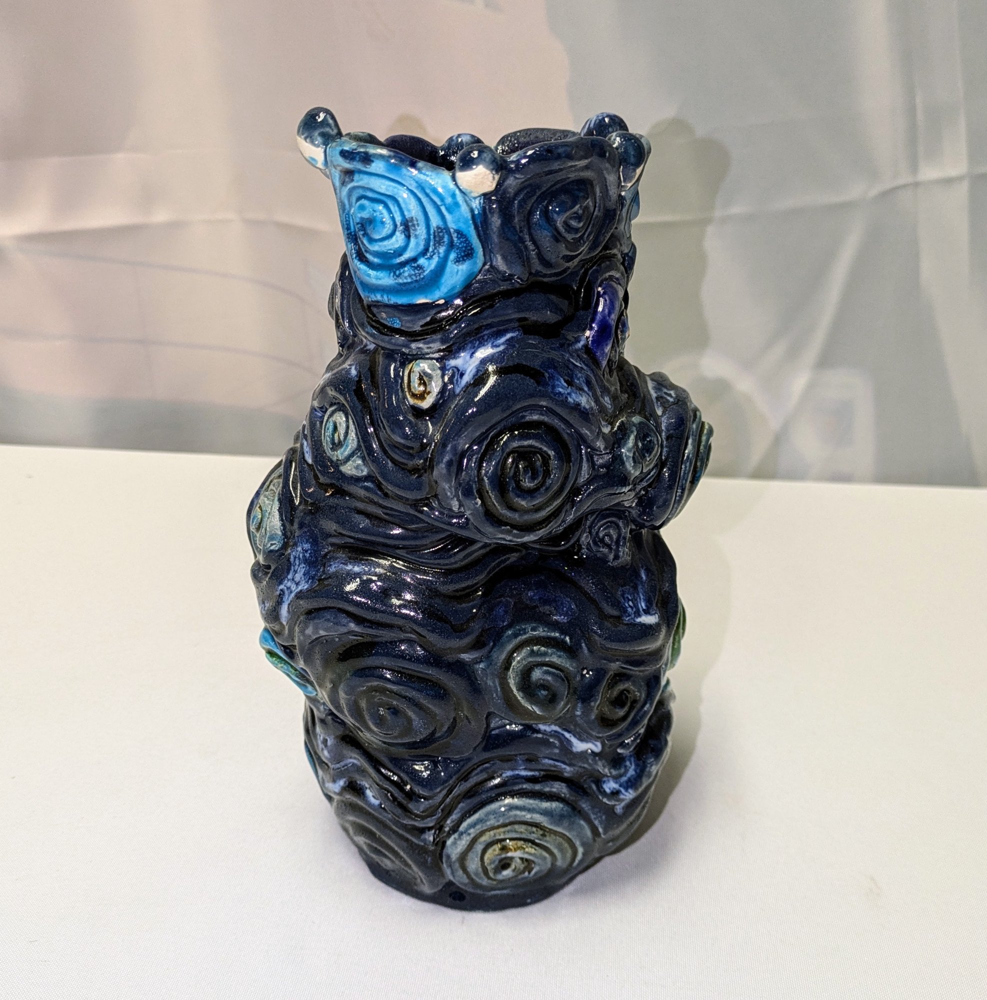 Great Dimensional Shape and Swirl Design Pattern. There is some loss of paint on the top 4 ball accents, consistent with age and use. Overall, Very Good Vintage Condition. Please see all photos as part of the description and condition. 9.5"H