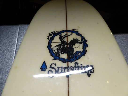 Vintage Sunshine 9 Ft. 3 In. Long Surfboard With Cover And Leash