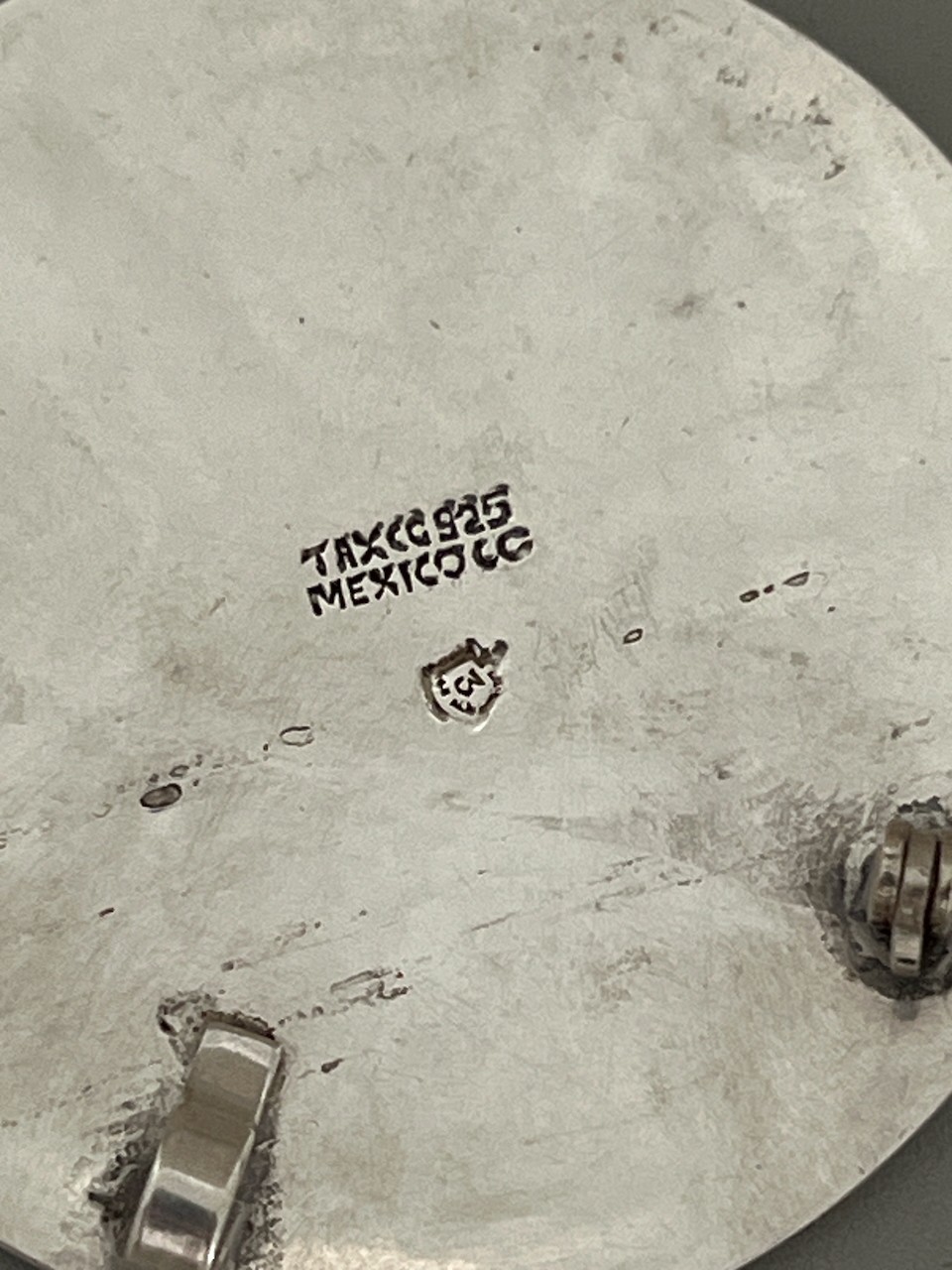 3 eagle stamp, “Taxco Mexico OC” 2” diameter