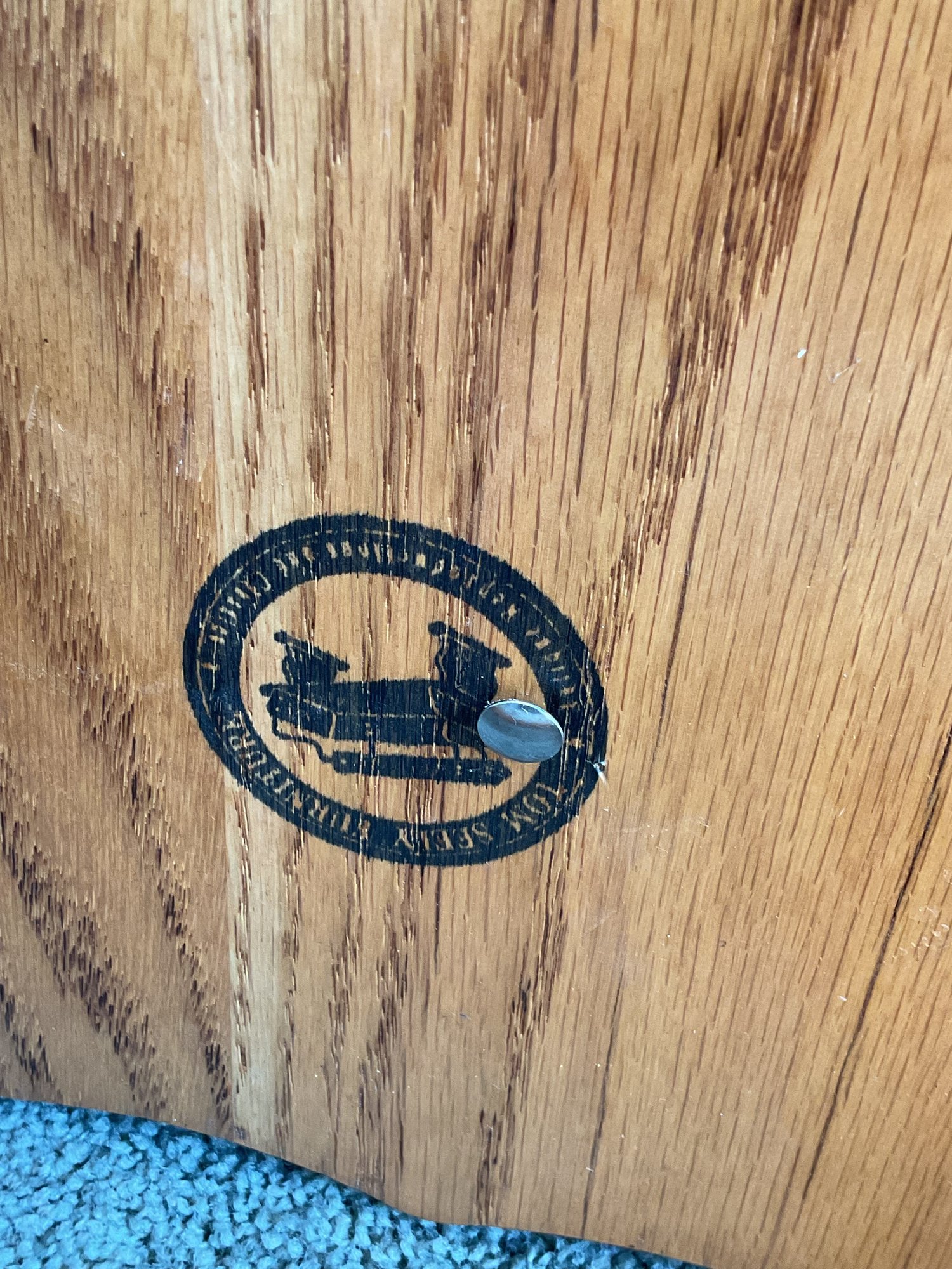 The chair is in good, sturdy condition. As a pre-owned vintage item, it shows minor scuffs and scratches consistent with light use (primarily along the runners), which adds to its authentic character. Please see photos for a close-up of the maker's mark on the underside.
