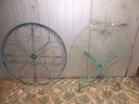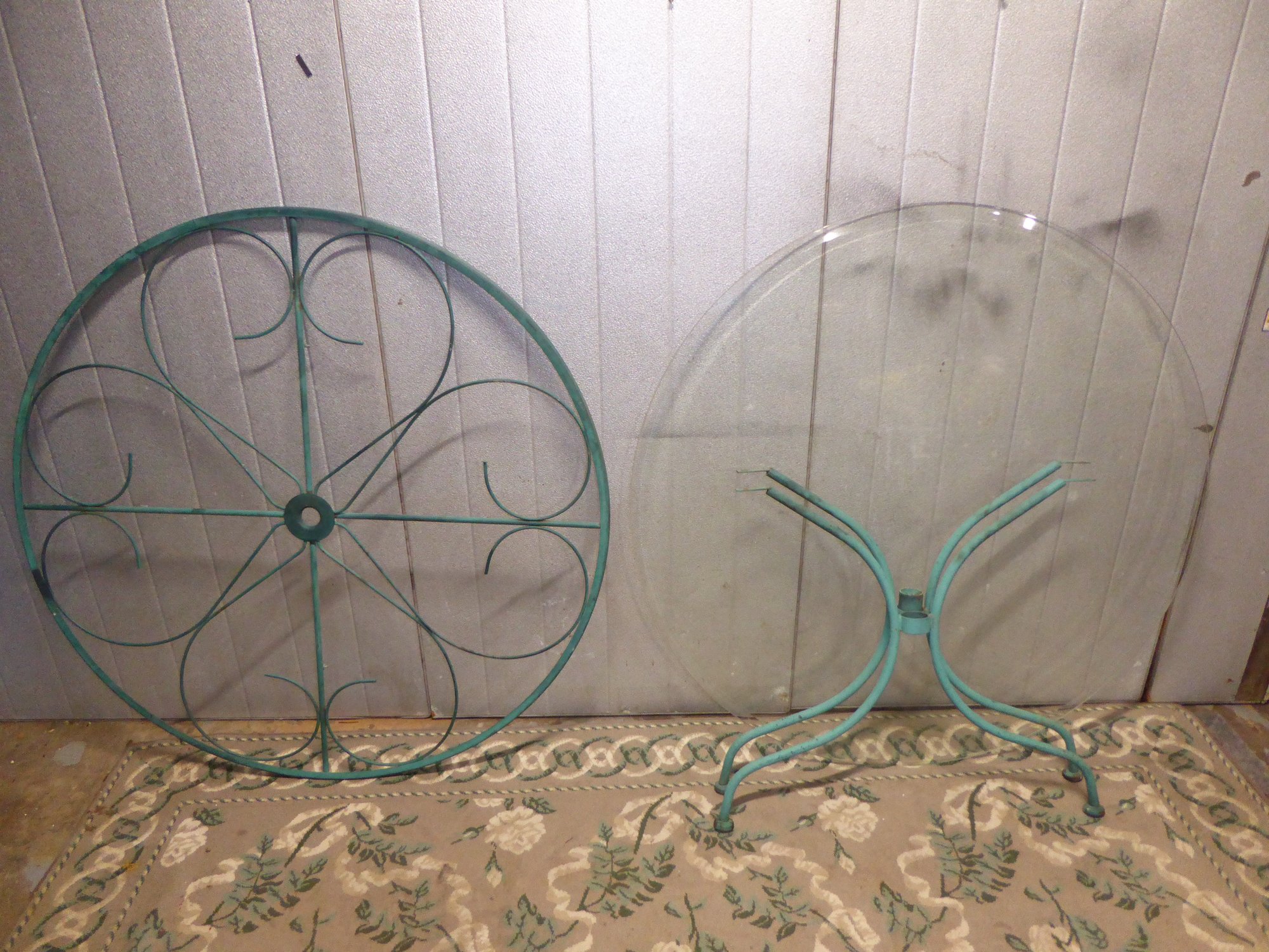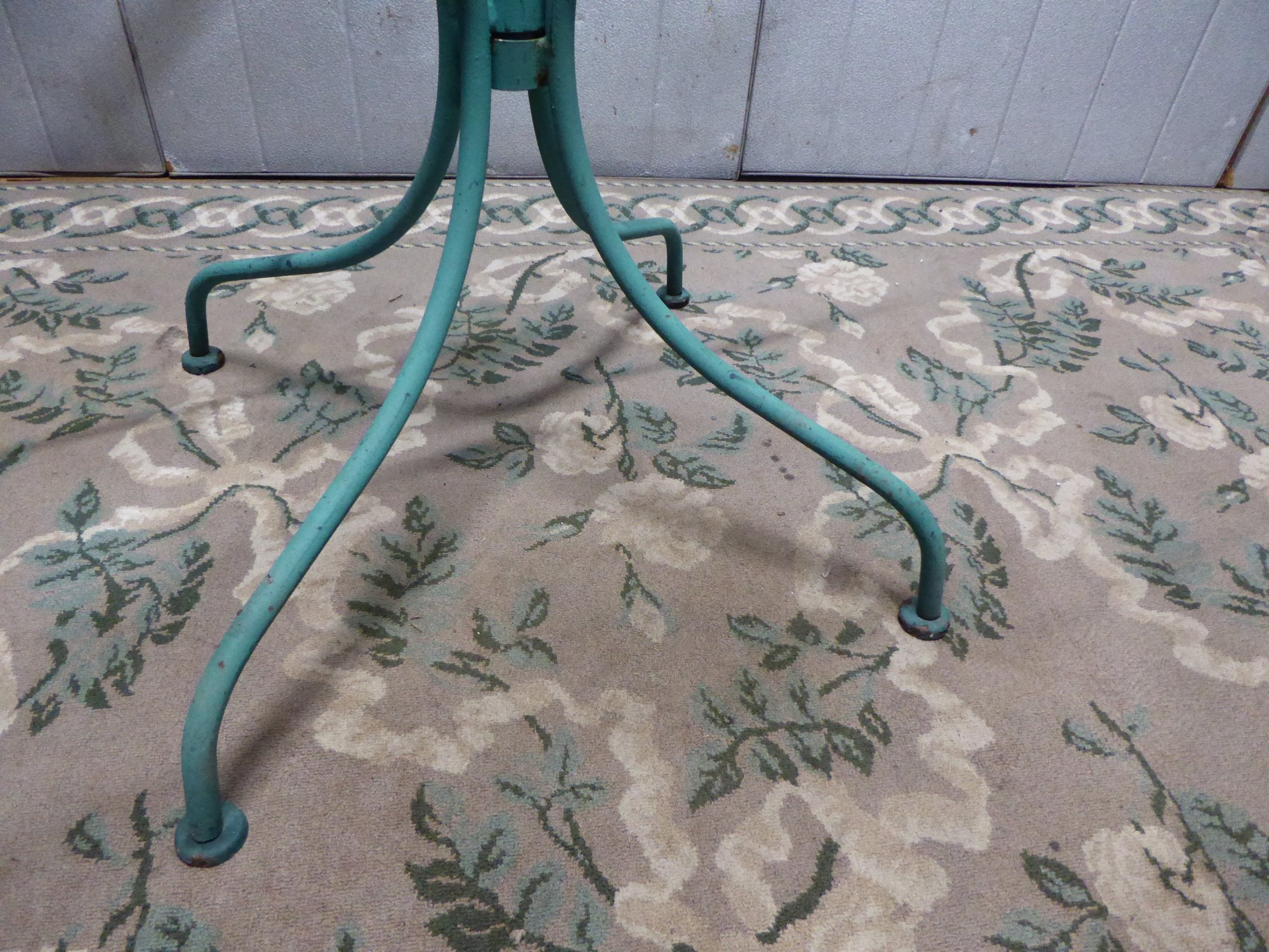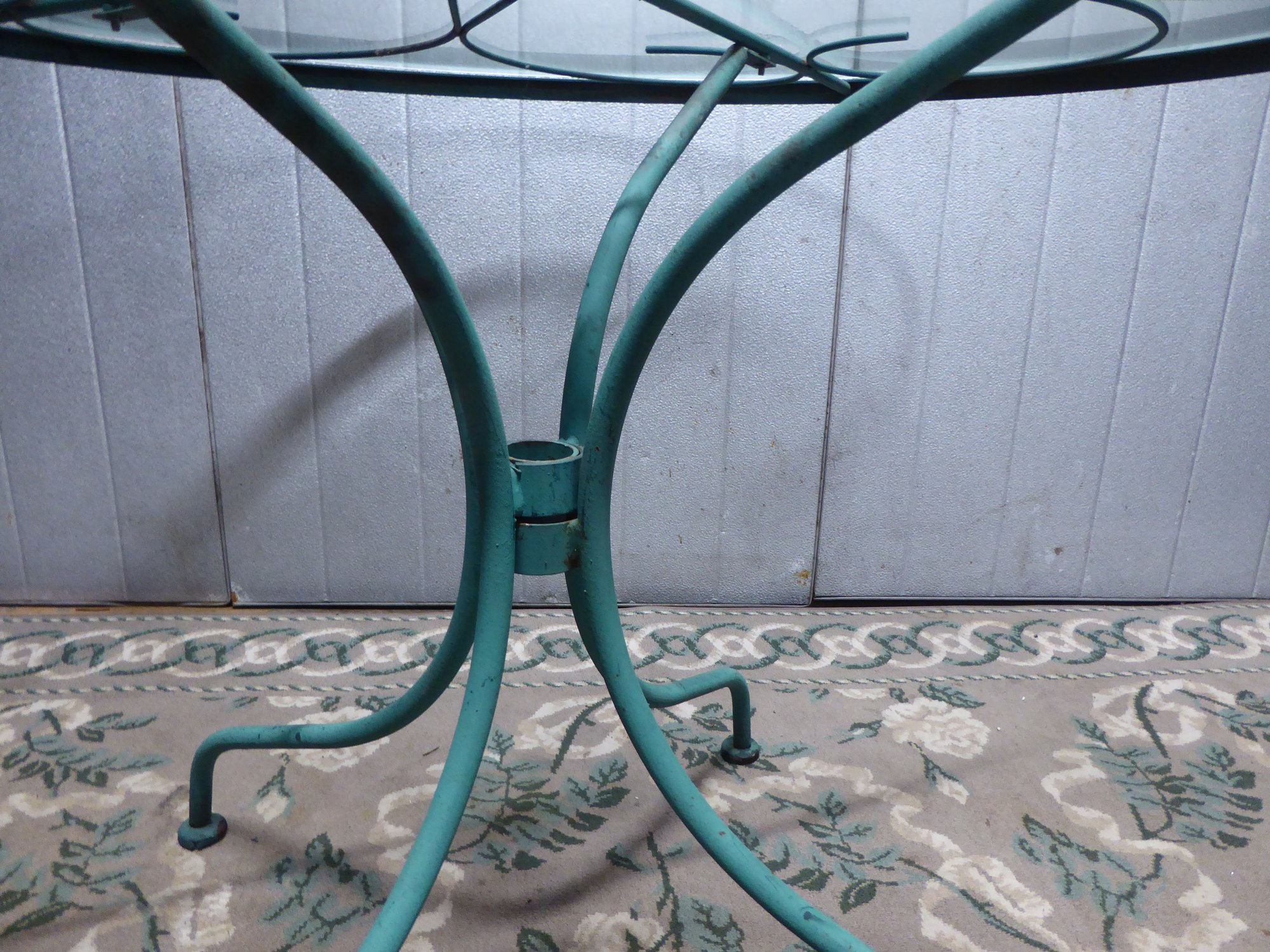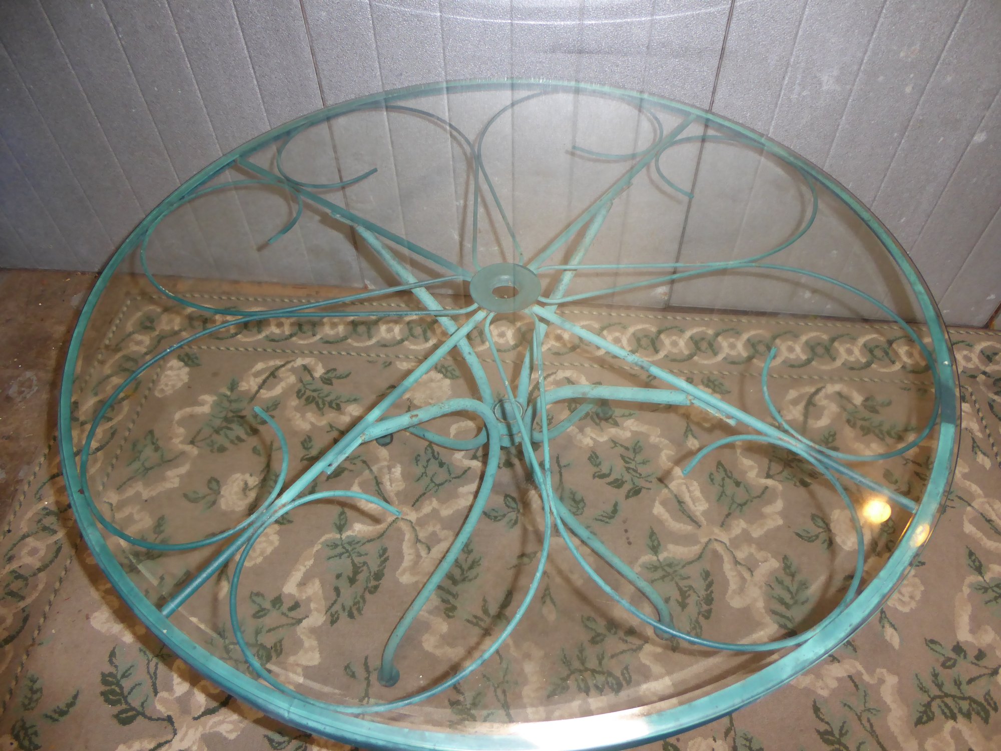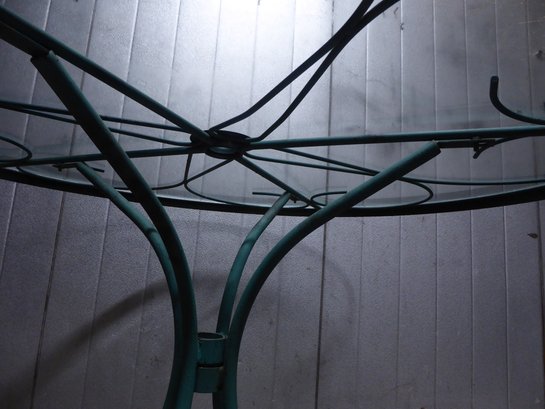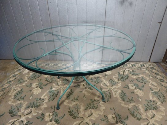 Vintage Turquoise Wrought Iron Woodard Style Round Glass Patio Table