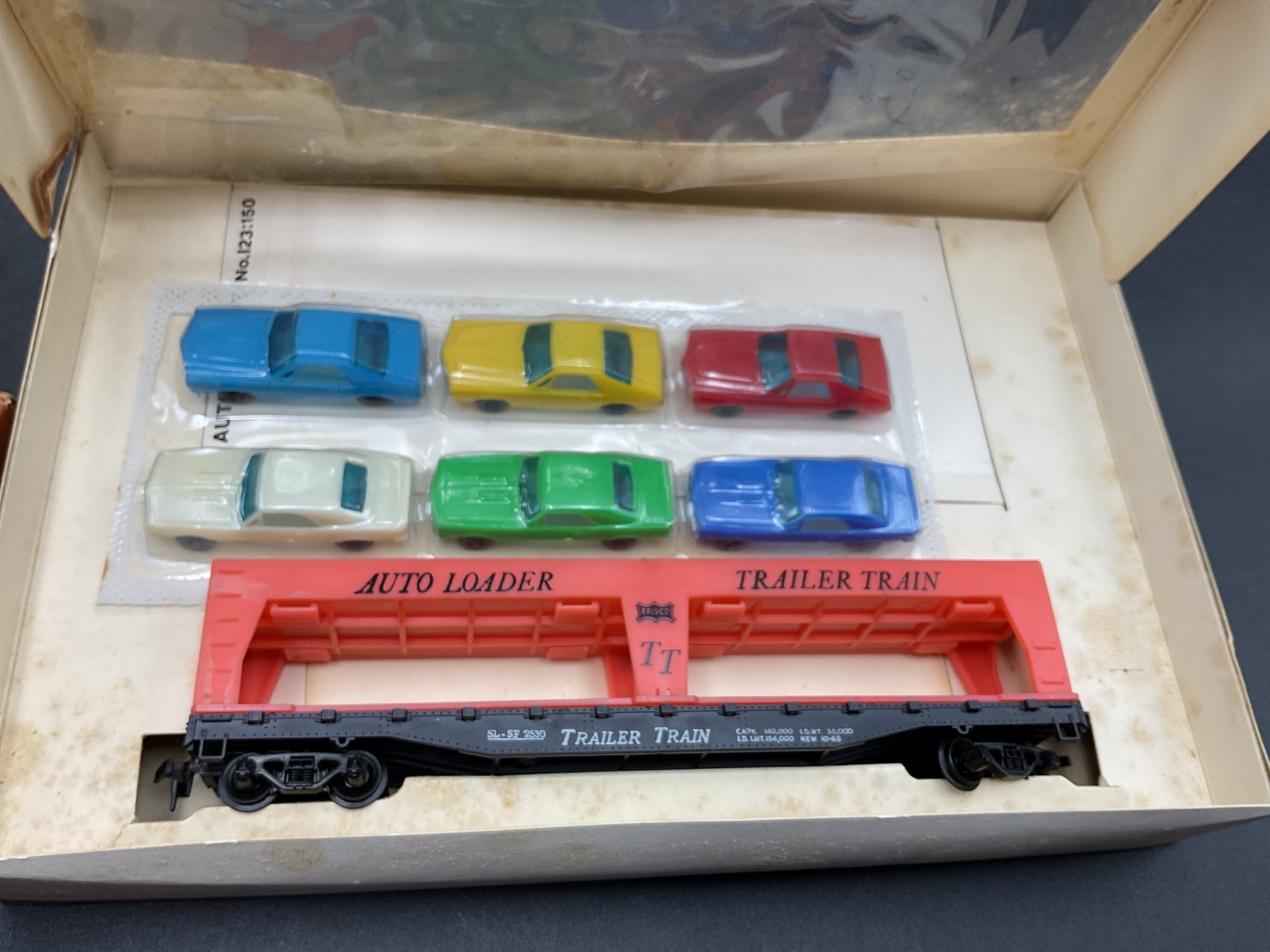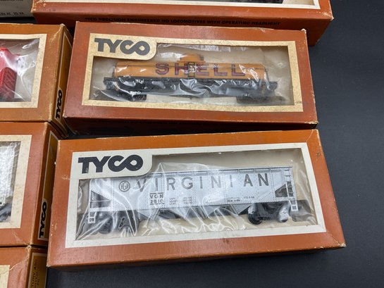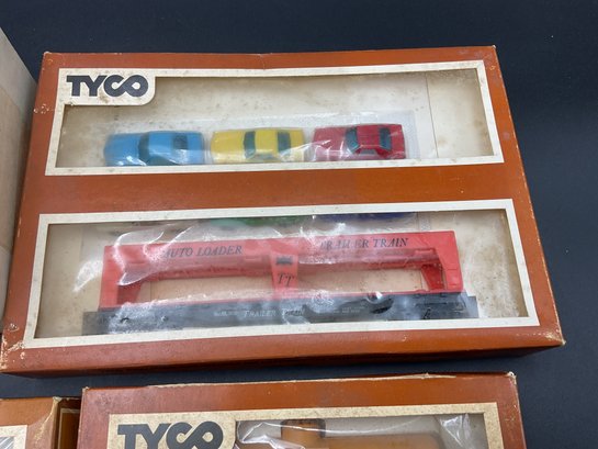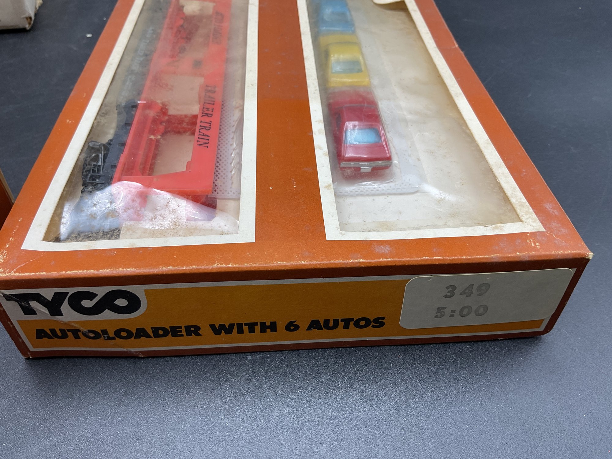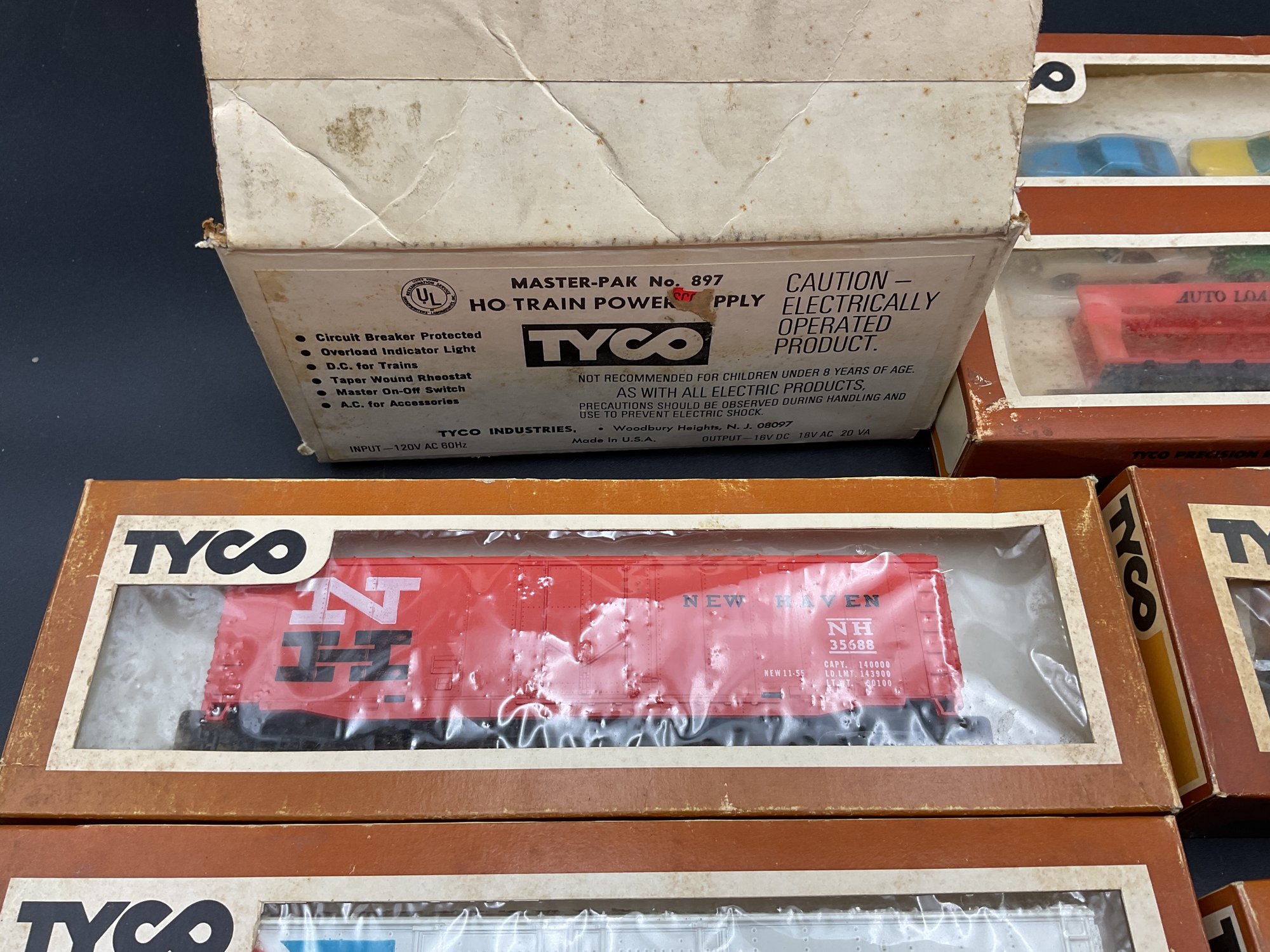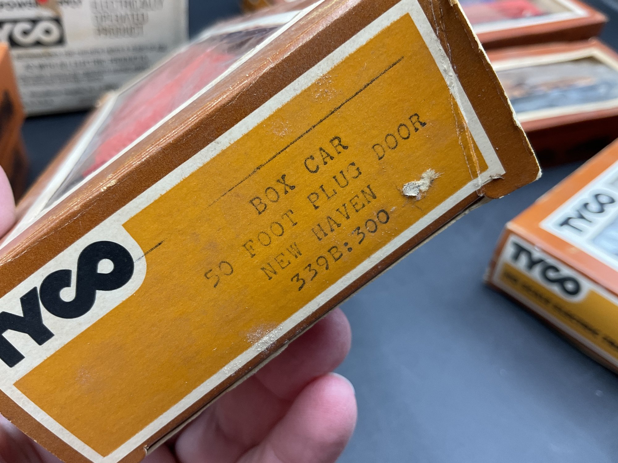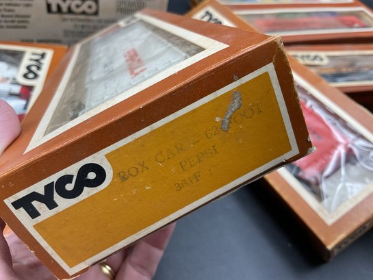 This lot includes 1976 vintage TYCO model trains and power supply. All in original boxes and in excellent condition except the Spirit of '76 caboose car has no box and is missing one set of wheels. Boxes all have dirt and wear from long term storage - these have not been used in 50 years! (no track)