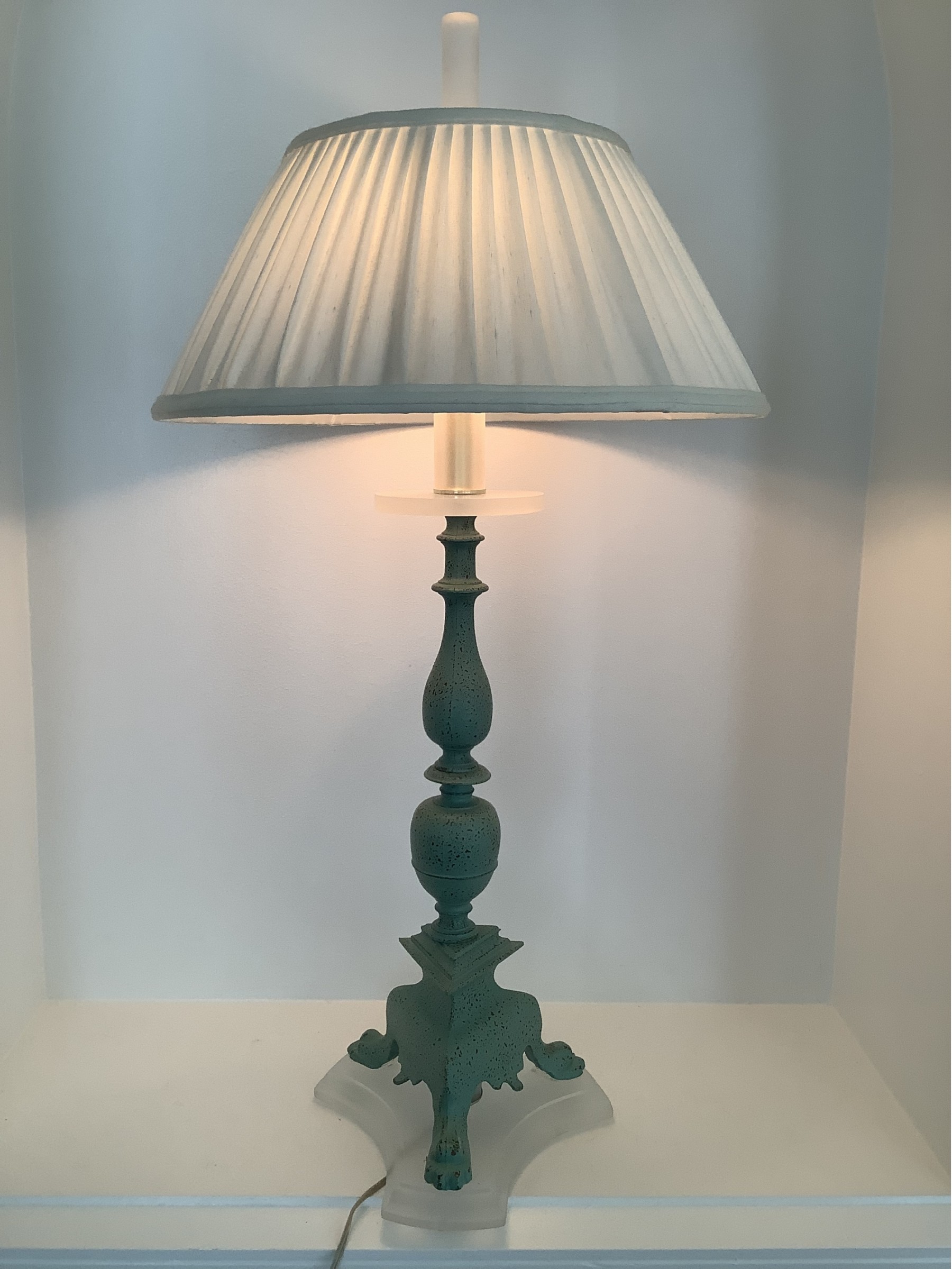 Vintage Unique Lamp In Green And White