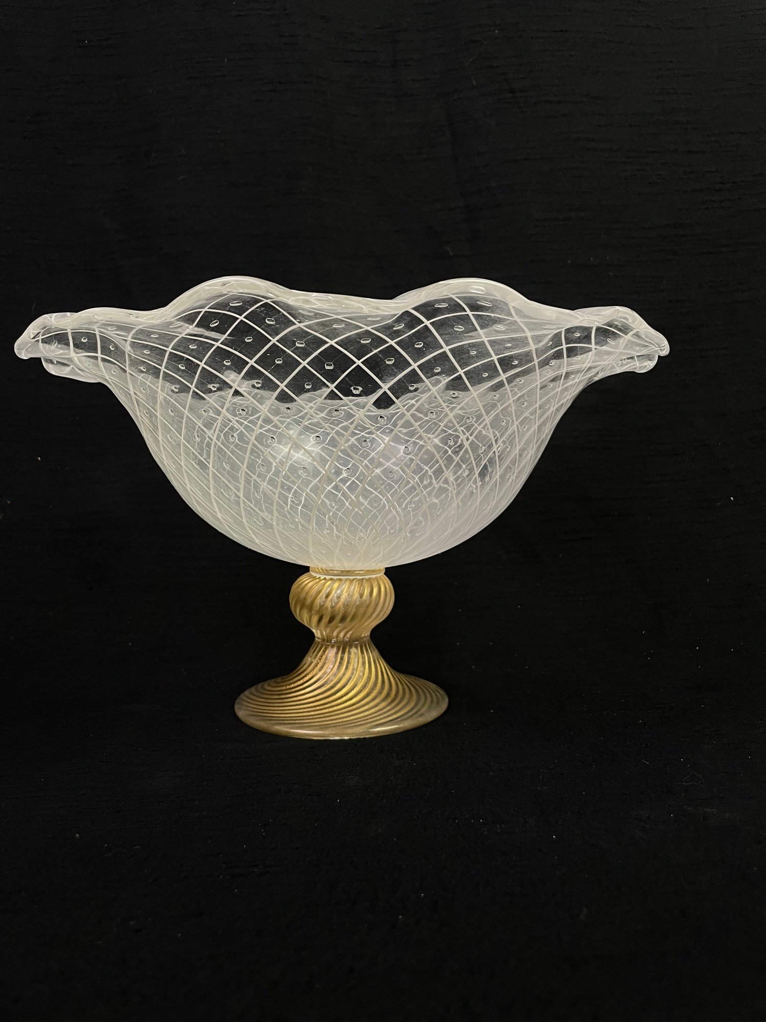 Vintage Venetian Murano Style Art Glass Pedestal Bowl