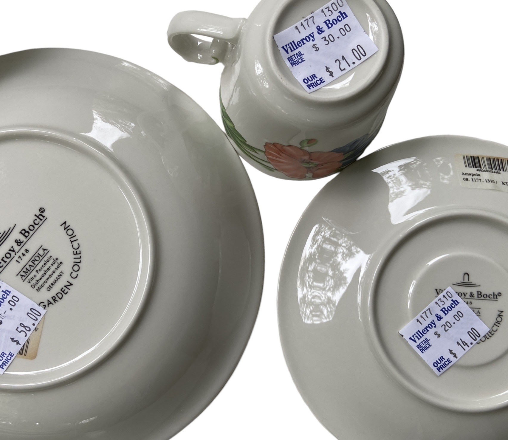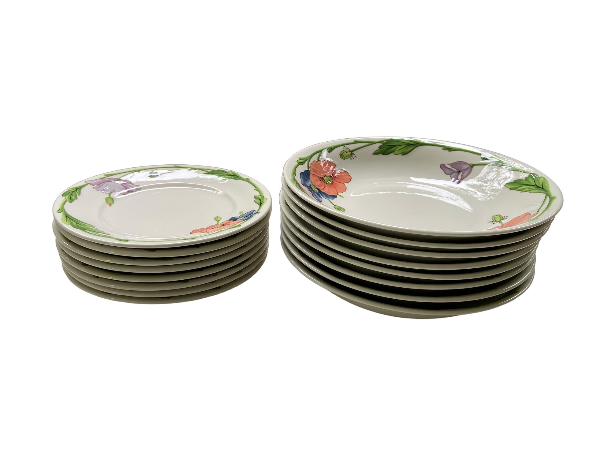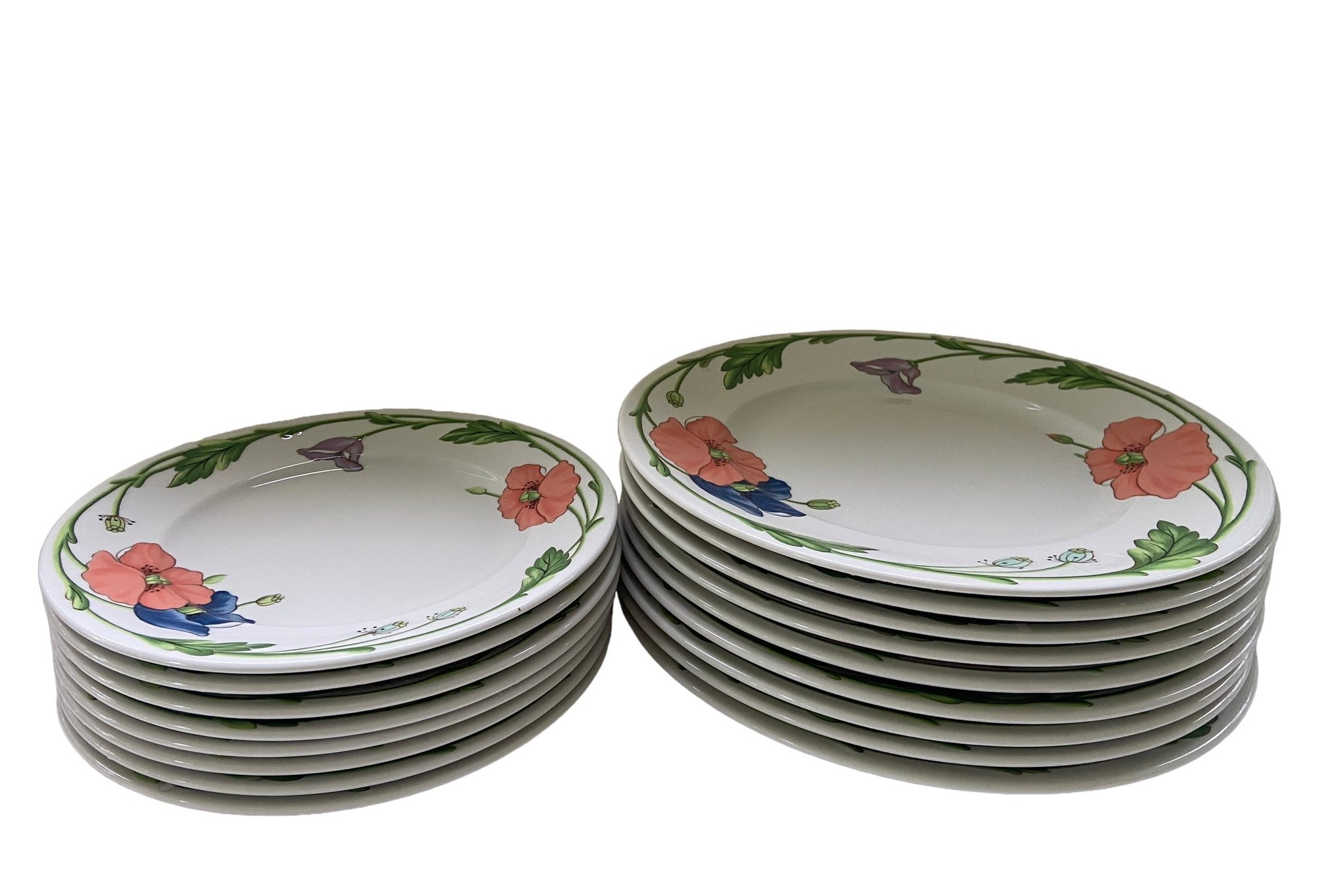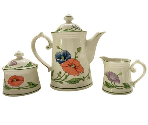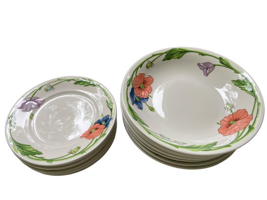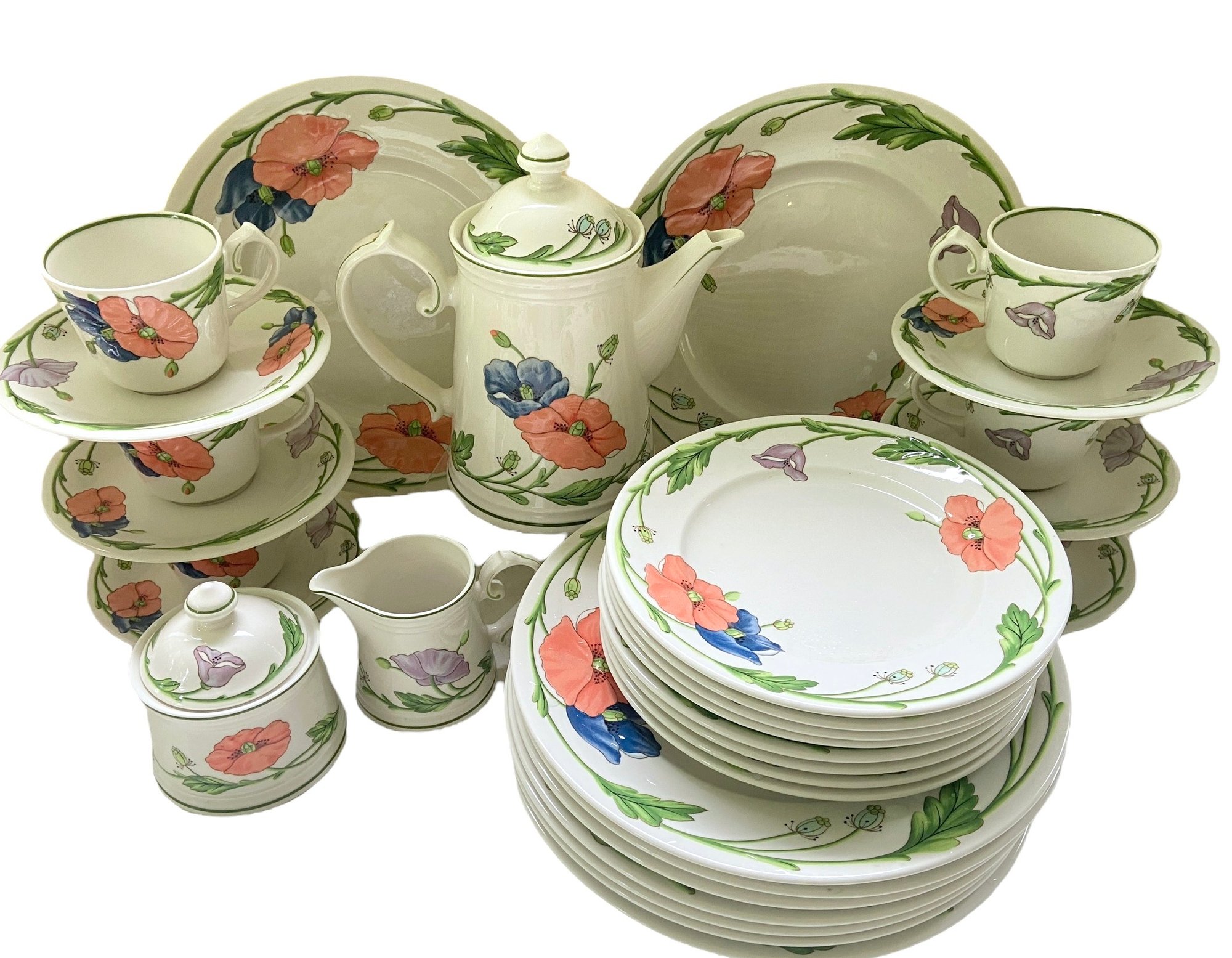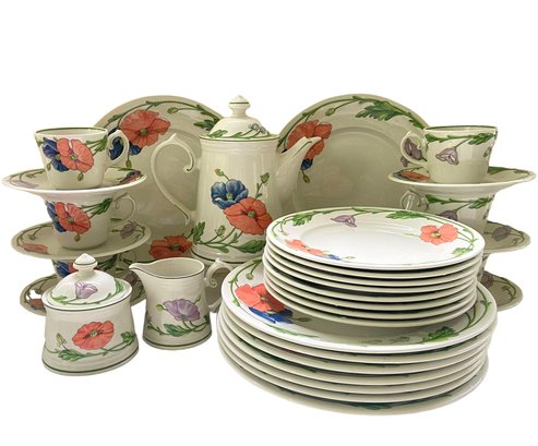 Beautiful "Amapola" pattern by Villeroy & Boch, made in Germany, 67 pieces. In unused condition about 1/2 of the set is new with tags. Includes: