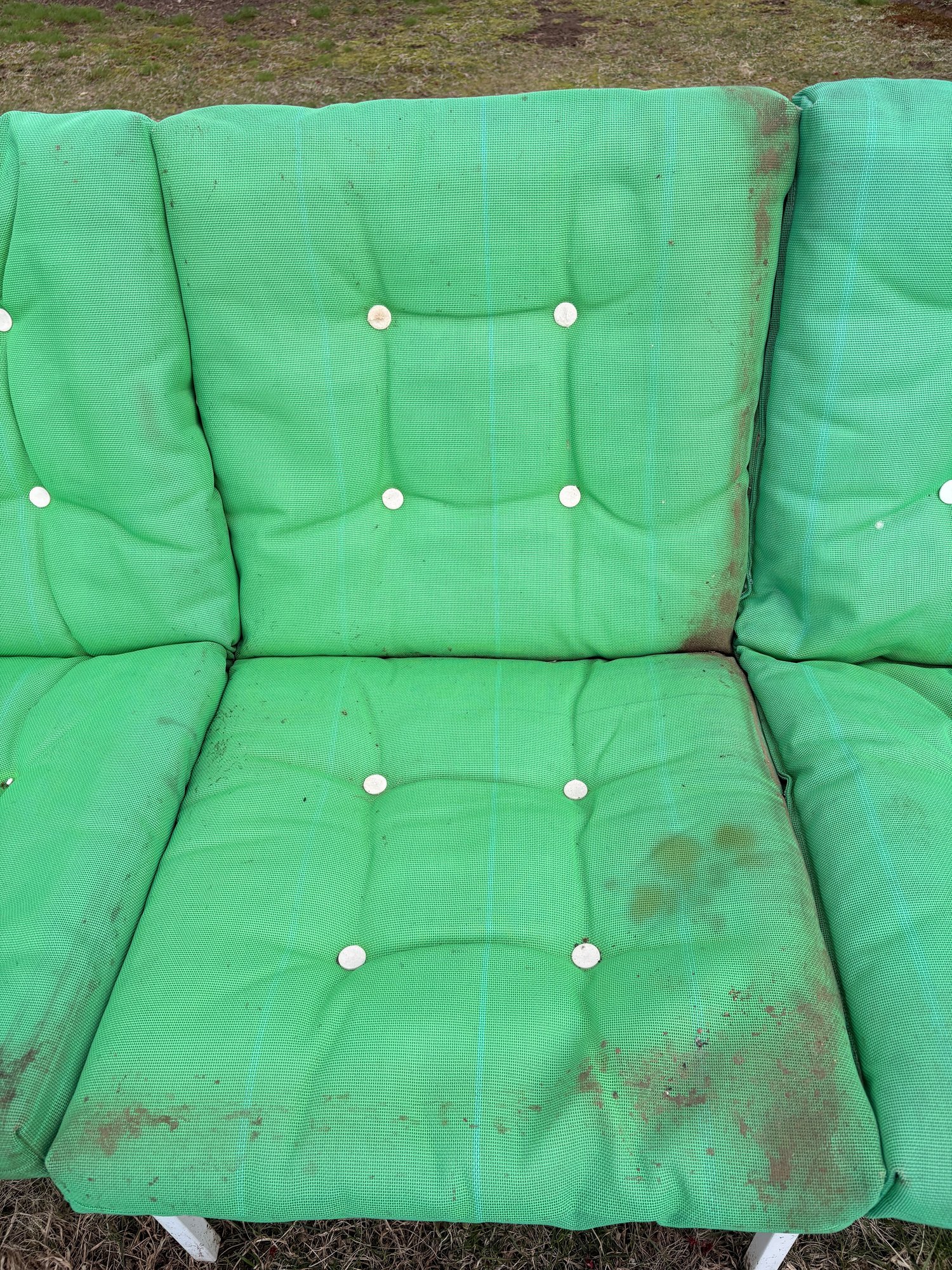 Cushions themselves along with the entire set can use a good cleaning and some of the cushions have some cosmetic issues like a missing white button - please see photos.