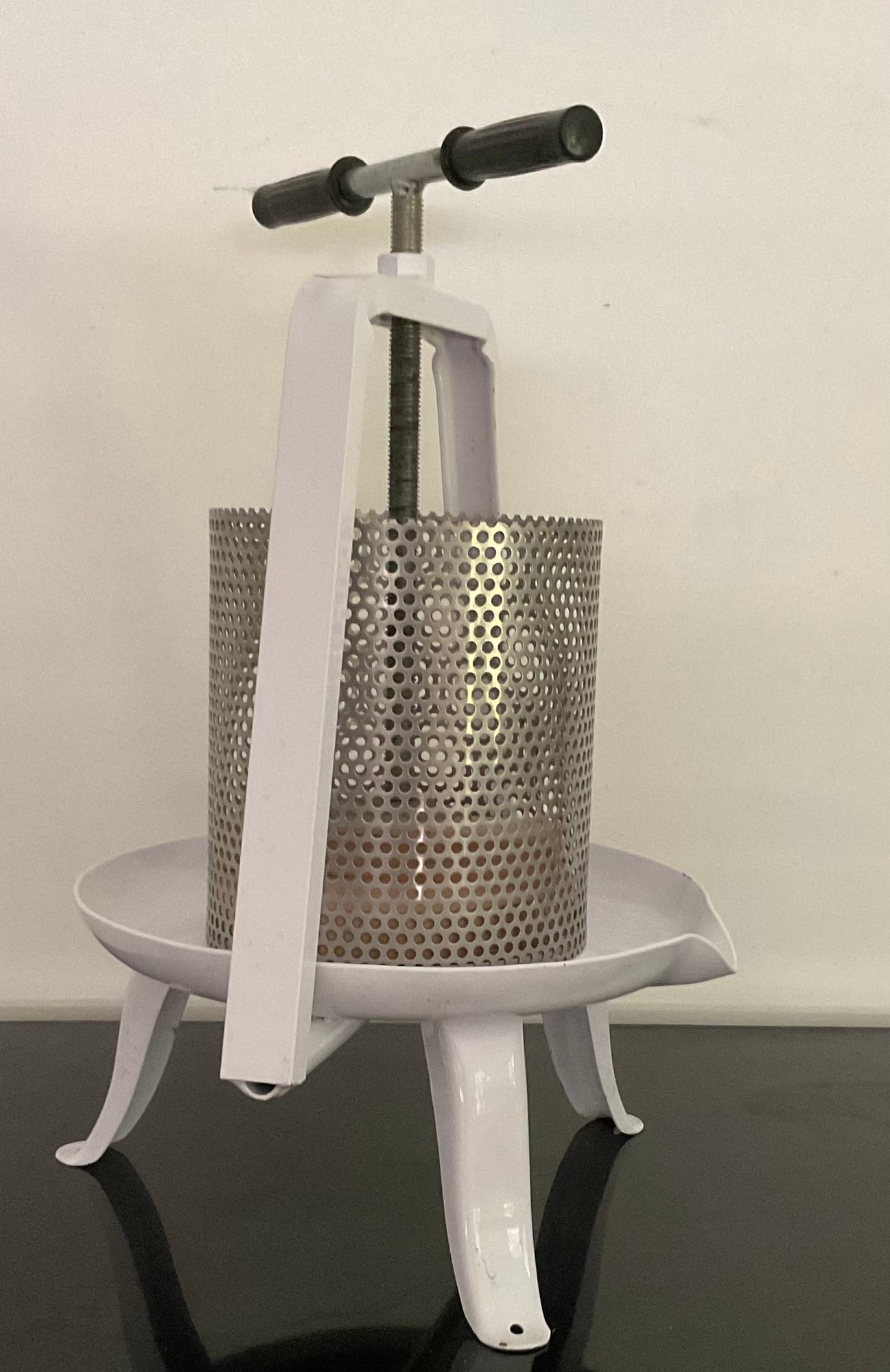 Vintage White Enamel Eggplant, Wine Press.