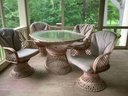 This set has bee unused for sometime in a screeded in porch , could use good cleaning with hose . Otherwise good sturdy condition .