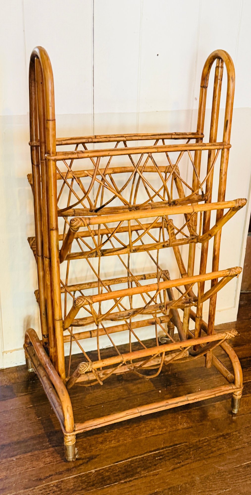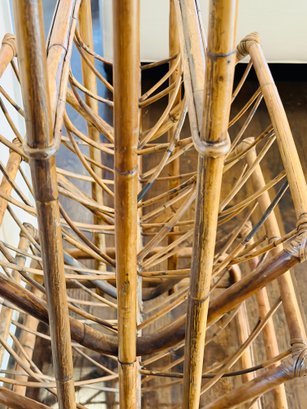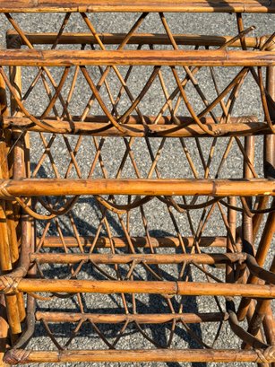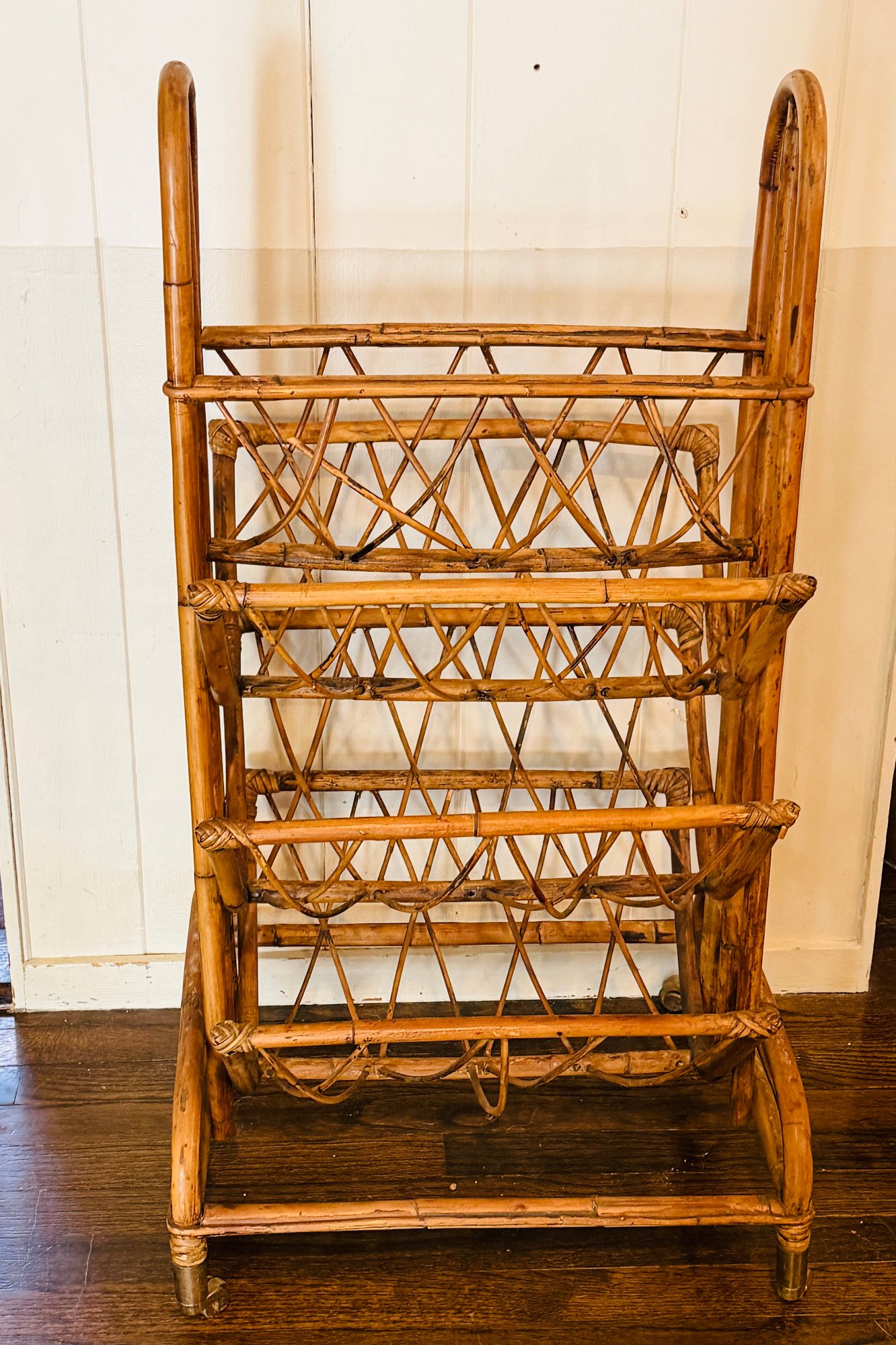 Made of wicker and rattan, a vintage mid century hollywood regency design.