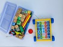 Vintage Wooden Block And Pull Toy Block Caddy