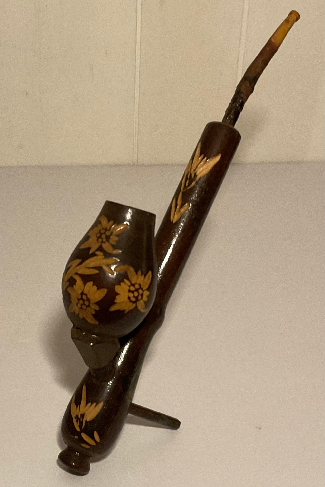 Vintage Wooden Pipe, Hand Carved, Wood Stand.