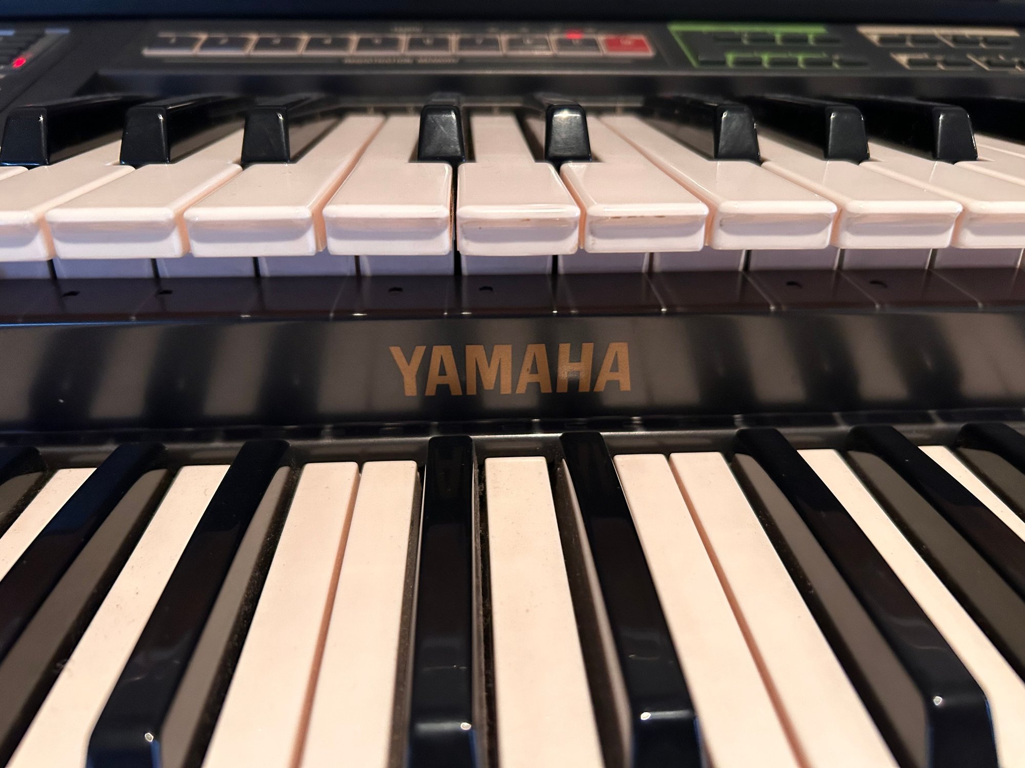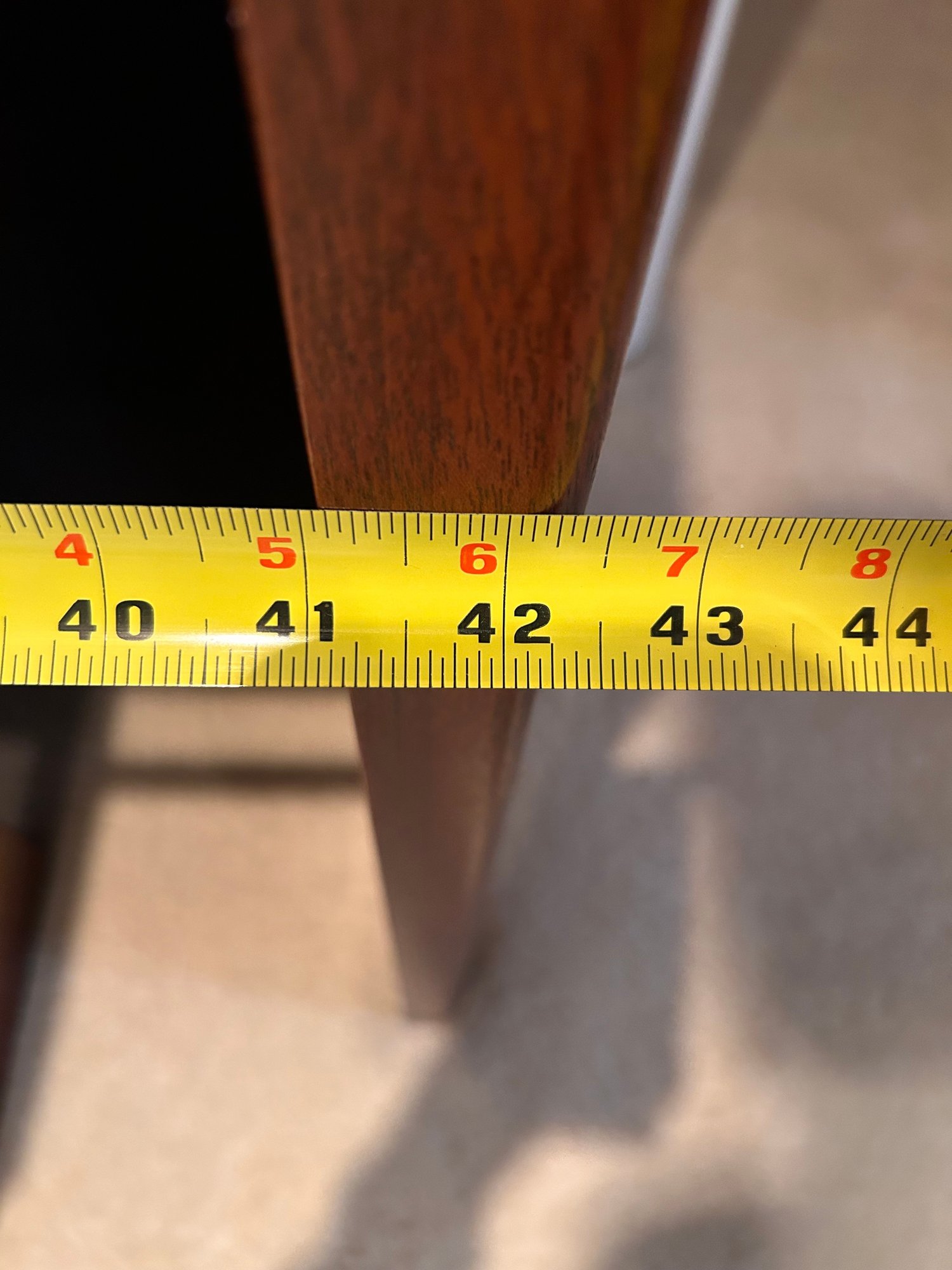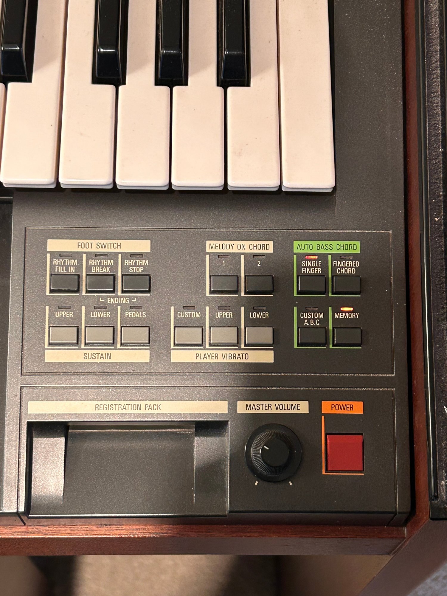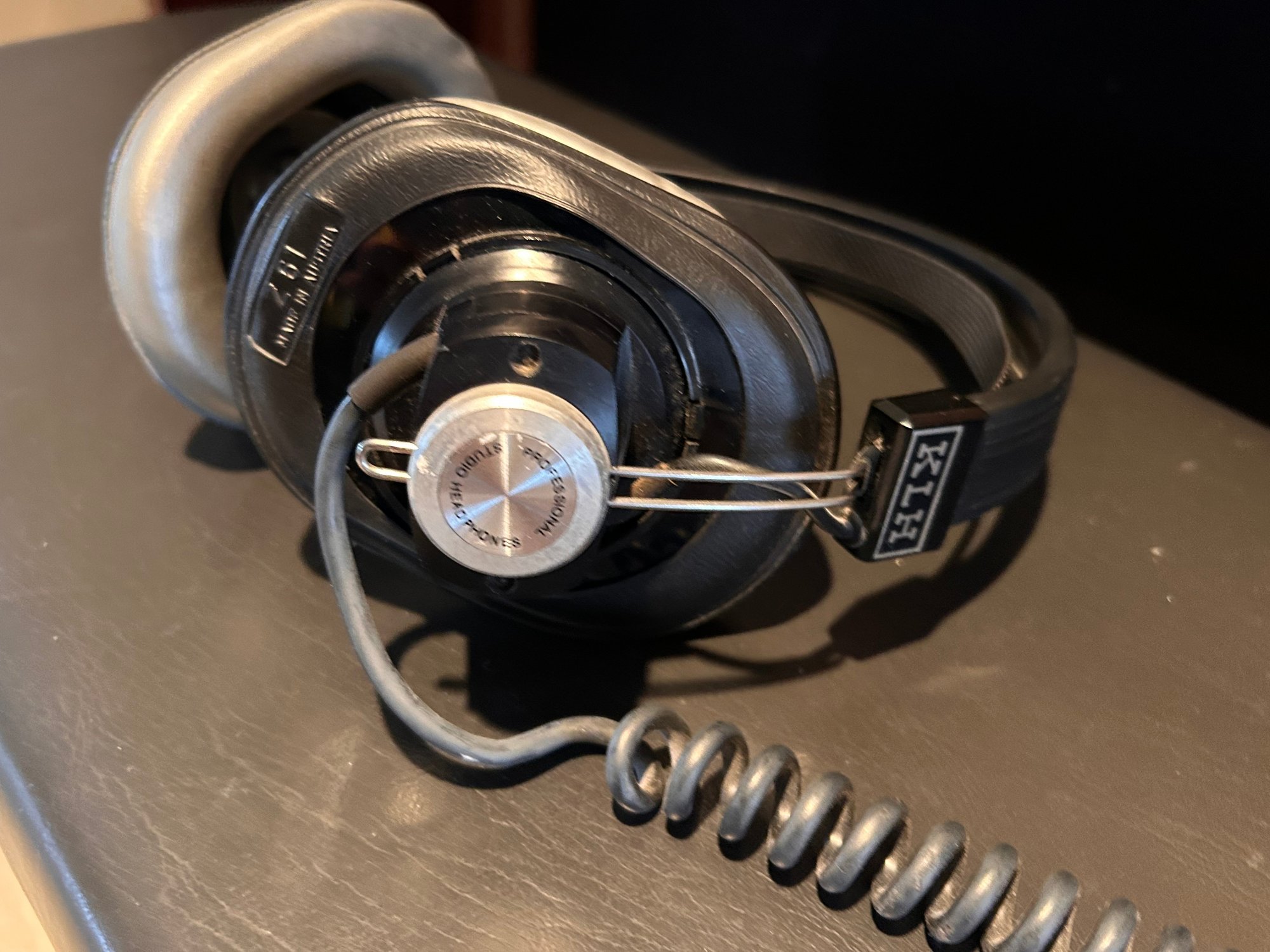 Tested and working, this unit appears clean and well kept. It includes headphones and has a folding glass top with a beautiful wooden finish. Measures approximately 42.5” wide, 17.5” deep with a height of 35”.