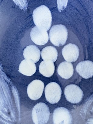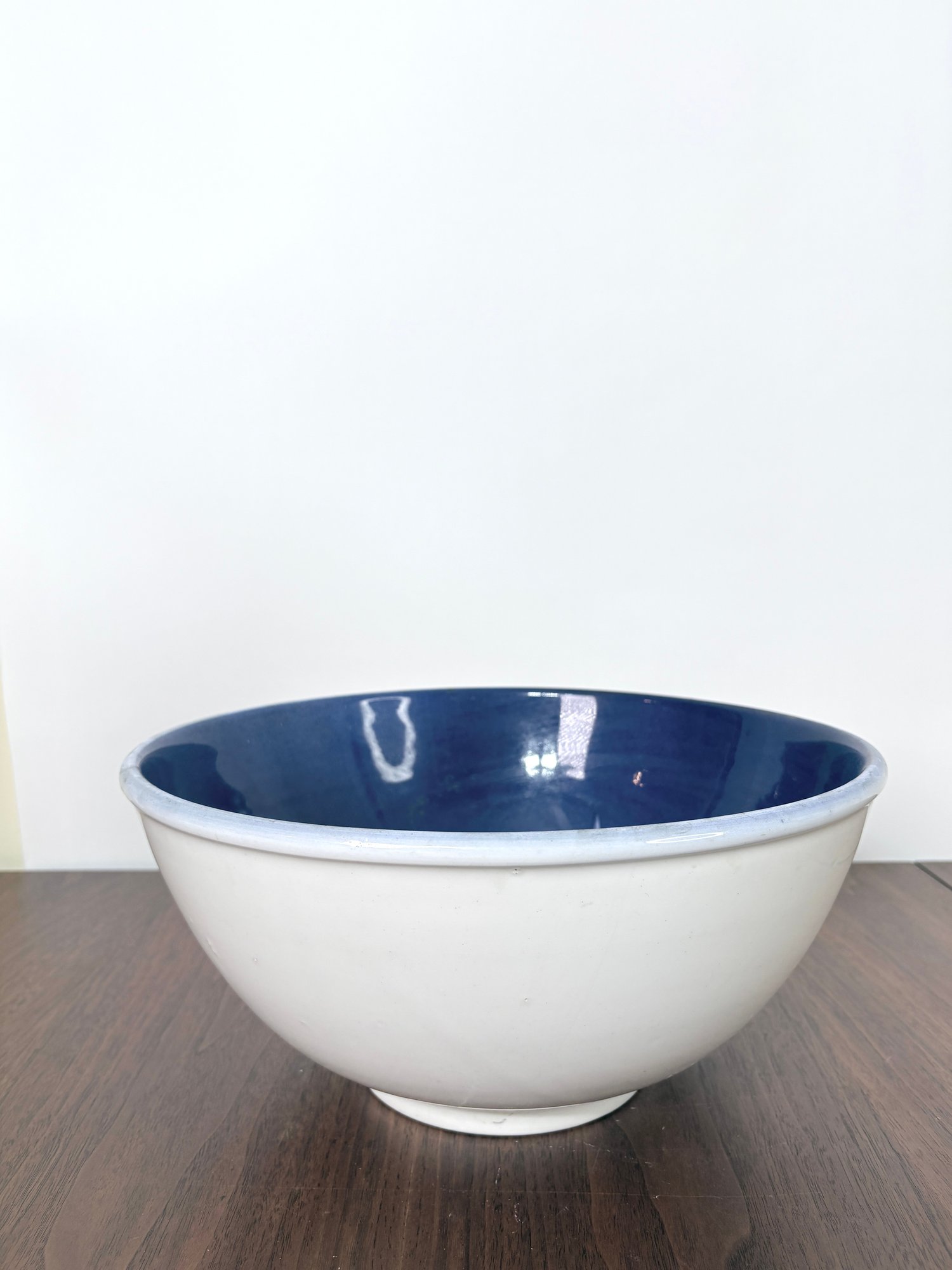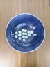 Deep blue glaze with a white, hand-painted style grape cluster in the center.