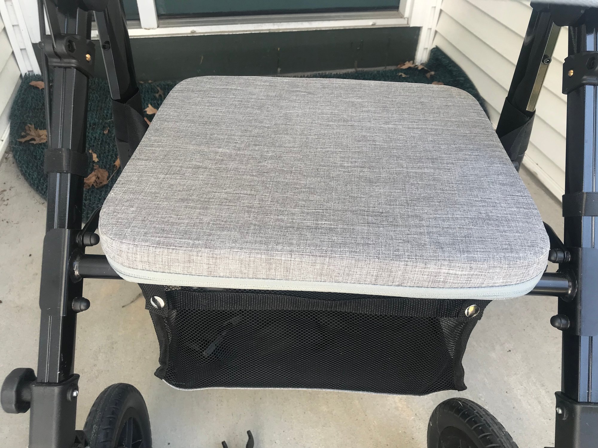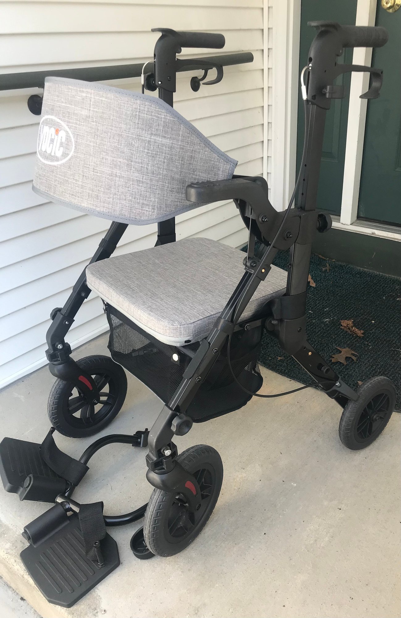 Includes: Rollator unit, removable footrests, and storage bag.