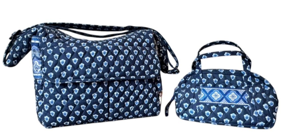 A charming coordinating pair by Vera Bradley in a classic navy and blue floral print. Both pieces are in very nice, clean condition.