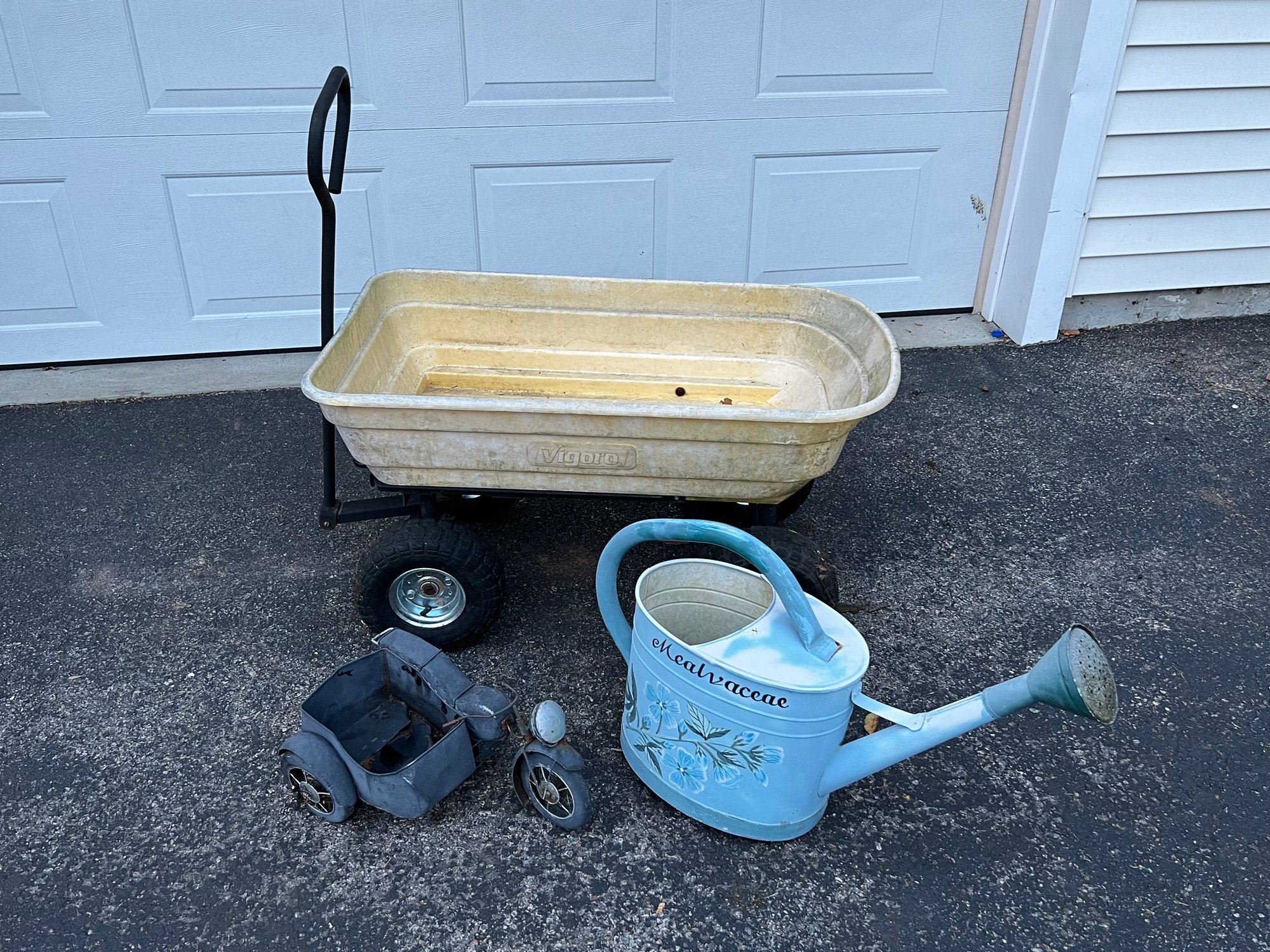 Wagon is faded, has flat tires and should have new tires installed. Others are rusted.