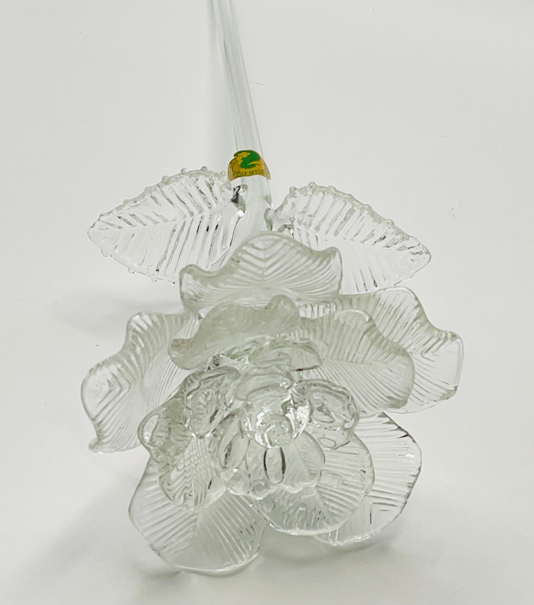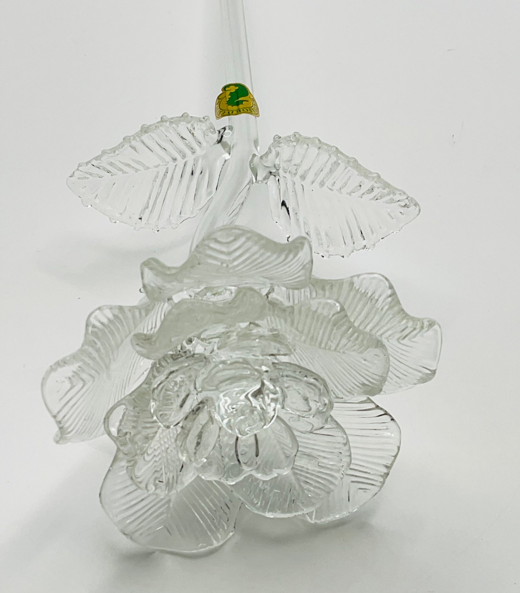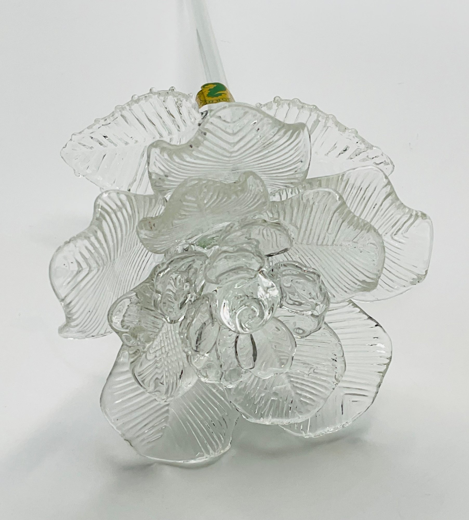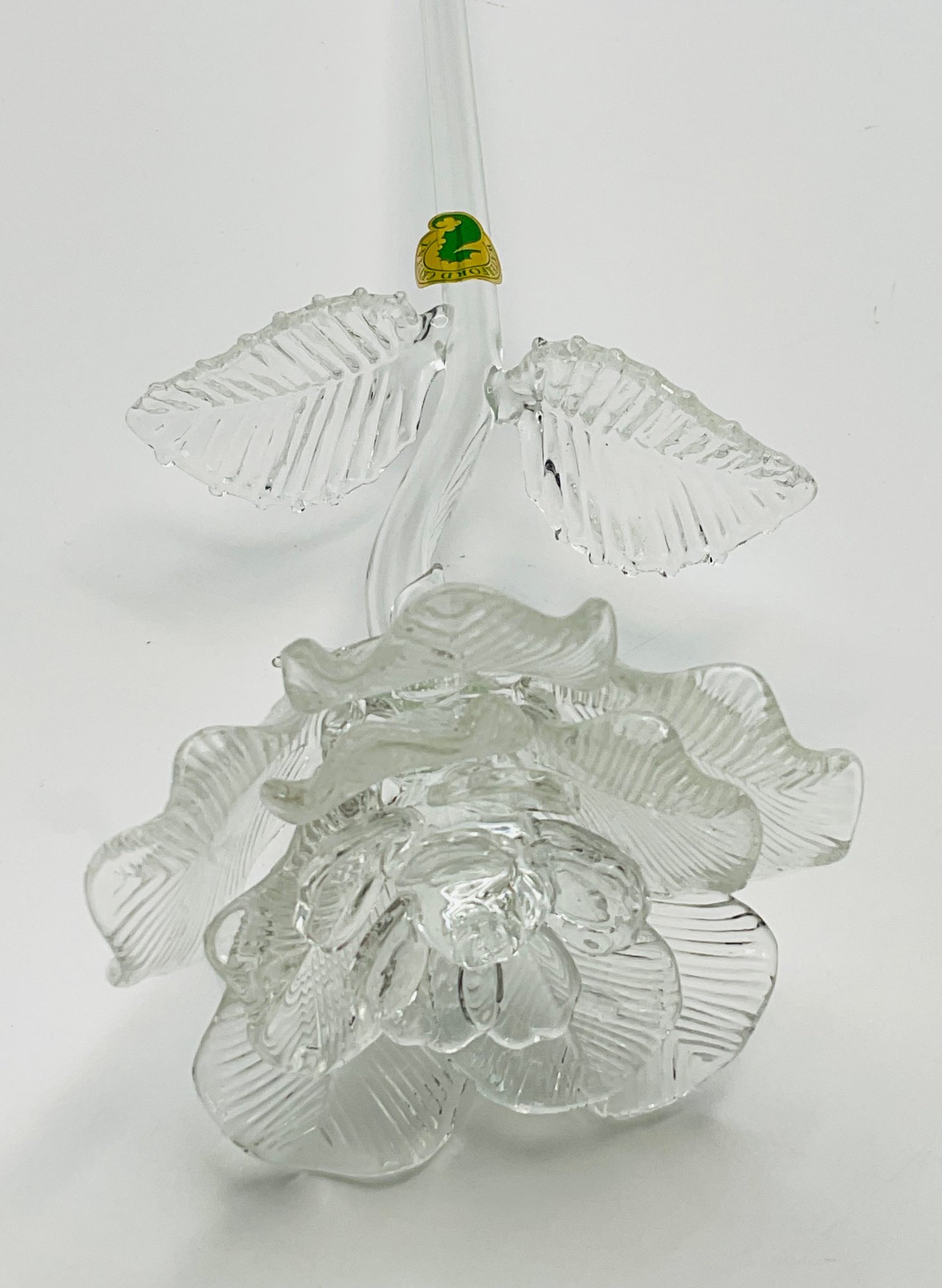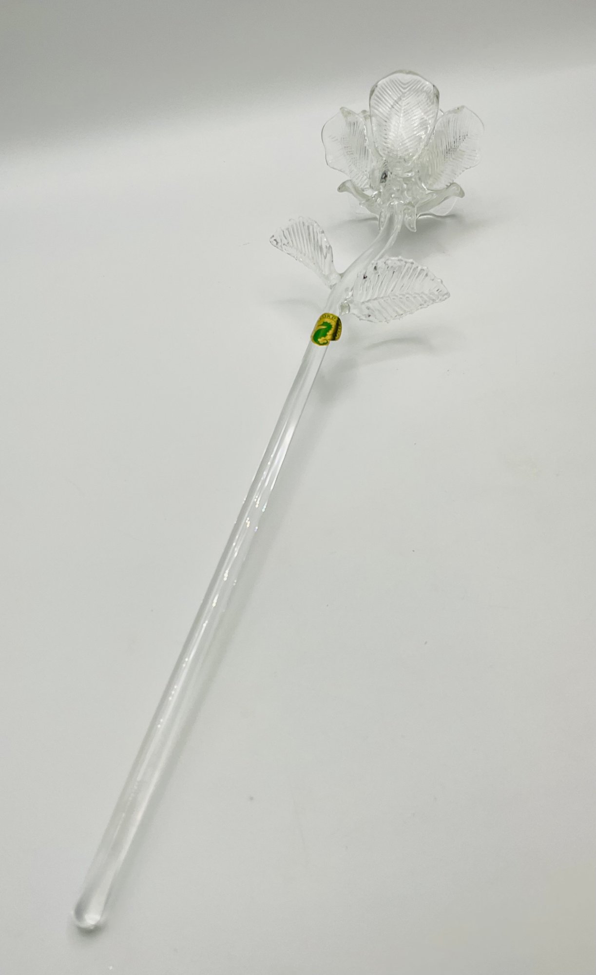 exquisite Waterford Crystal long-stemmed rose. A testament to fine craftsmanship, this piece features a beautifully detailed, multi-petaled bloom and delicate textured leaves, all masterfully crafted from clear, brilliant crystal.