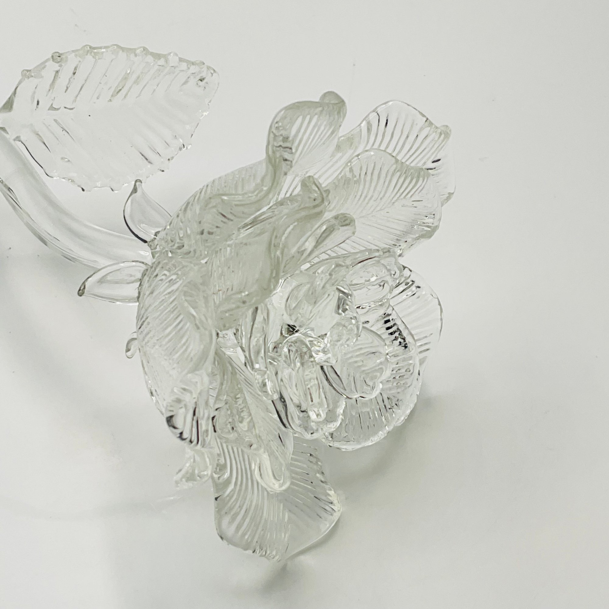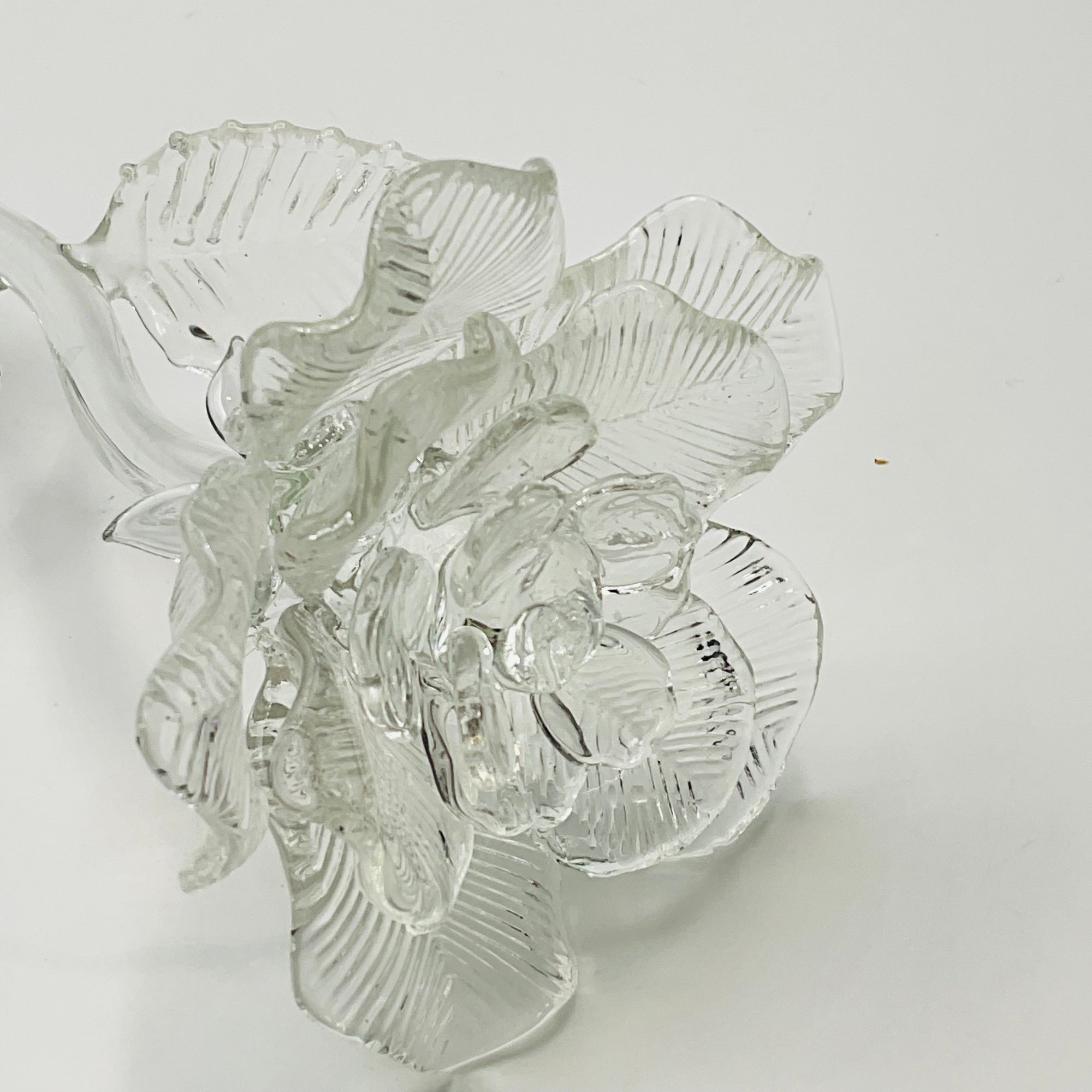 Design: Intricate "sculpted" aesthetic with ribbed detailing on the petals and leaves to catch and refract light.