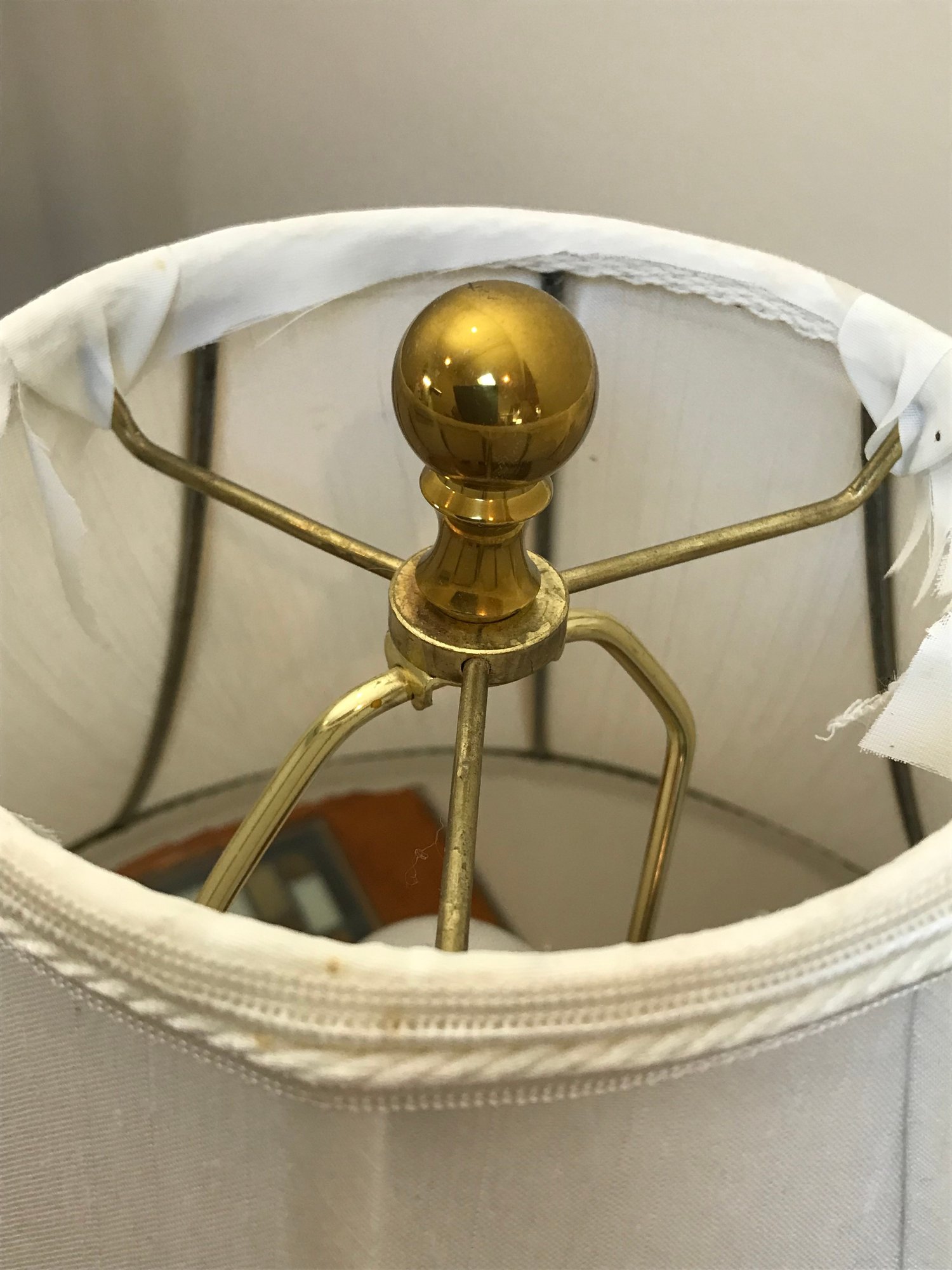 Dimensions: 27.25" total height (to top of finial); 16" diameter shade.