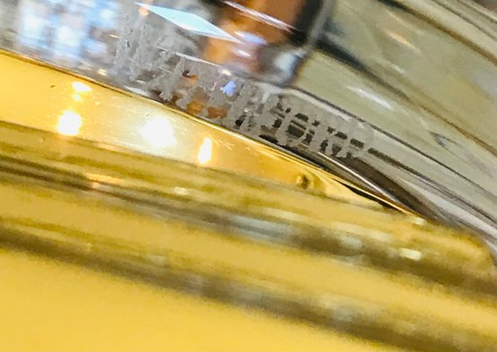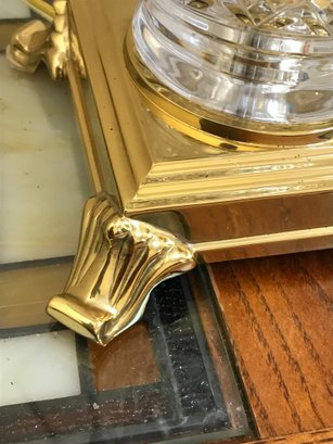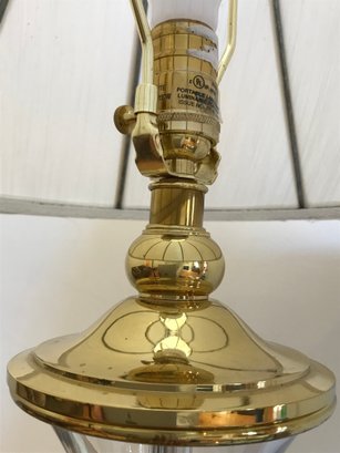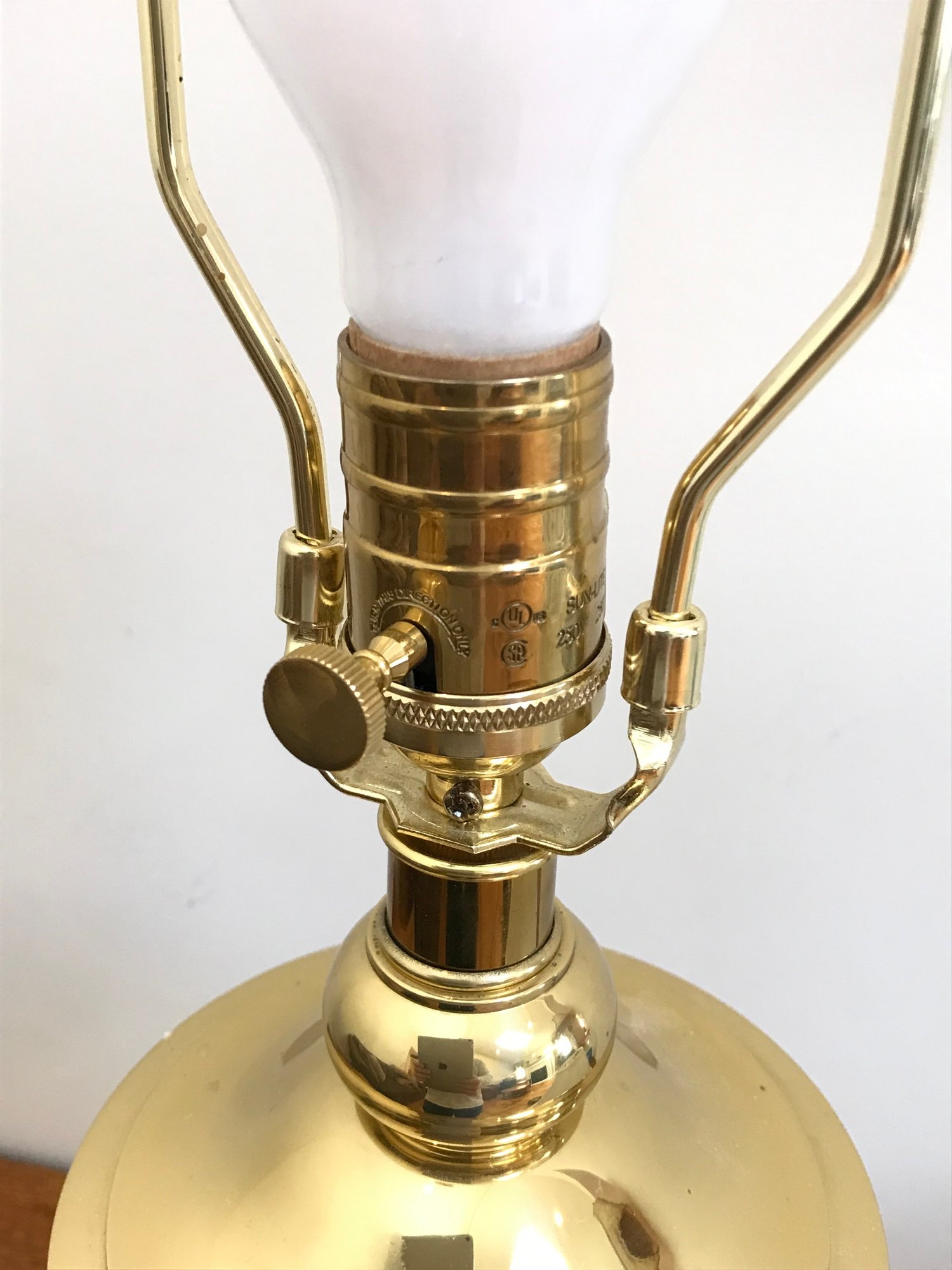 Condition: Excellent vintage condition; crystal is clear with no chips or cracks. Brass shows minimal age-appropriate patina. Shade is intact with original branding.