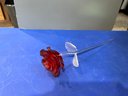 Waterford Fleurology Sculpted Colored Glass Red Flower Stem 14 1/2" W Box