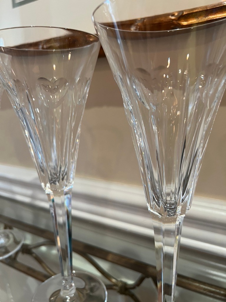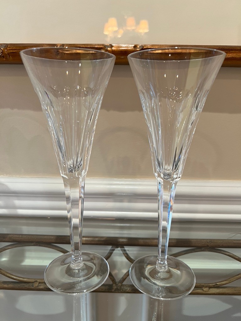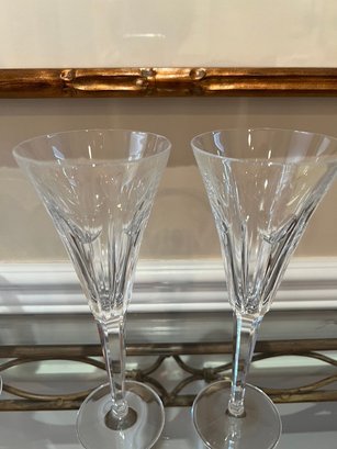 Waterford toasting champagne flutes, "LOVE" pattern, pair