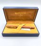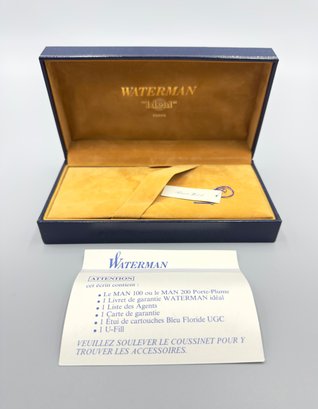 Medium 18k Waterman Ideal nib has been cut to become a subtle cursive italic. As a result, the nib writes on the medium fine side with very nice line variation, excellent for every day writing and very smooth. Size 5-3/4" L / New in box never used