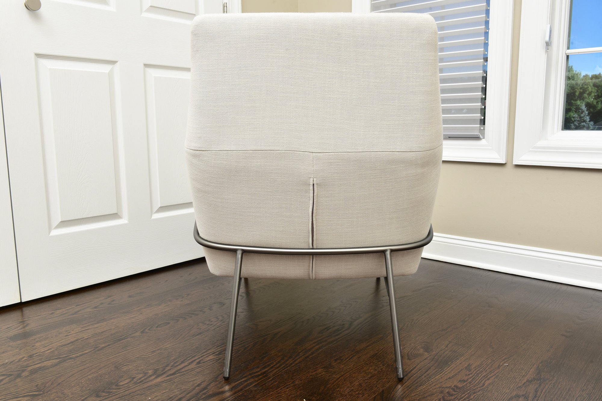 The wire base and modern lines on the Lucas give it an urban and industrially-cool look, with a reclined pitch that’s a warm welcome.