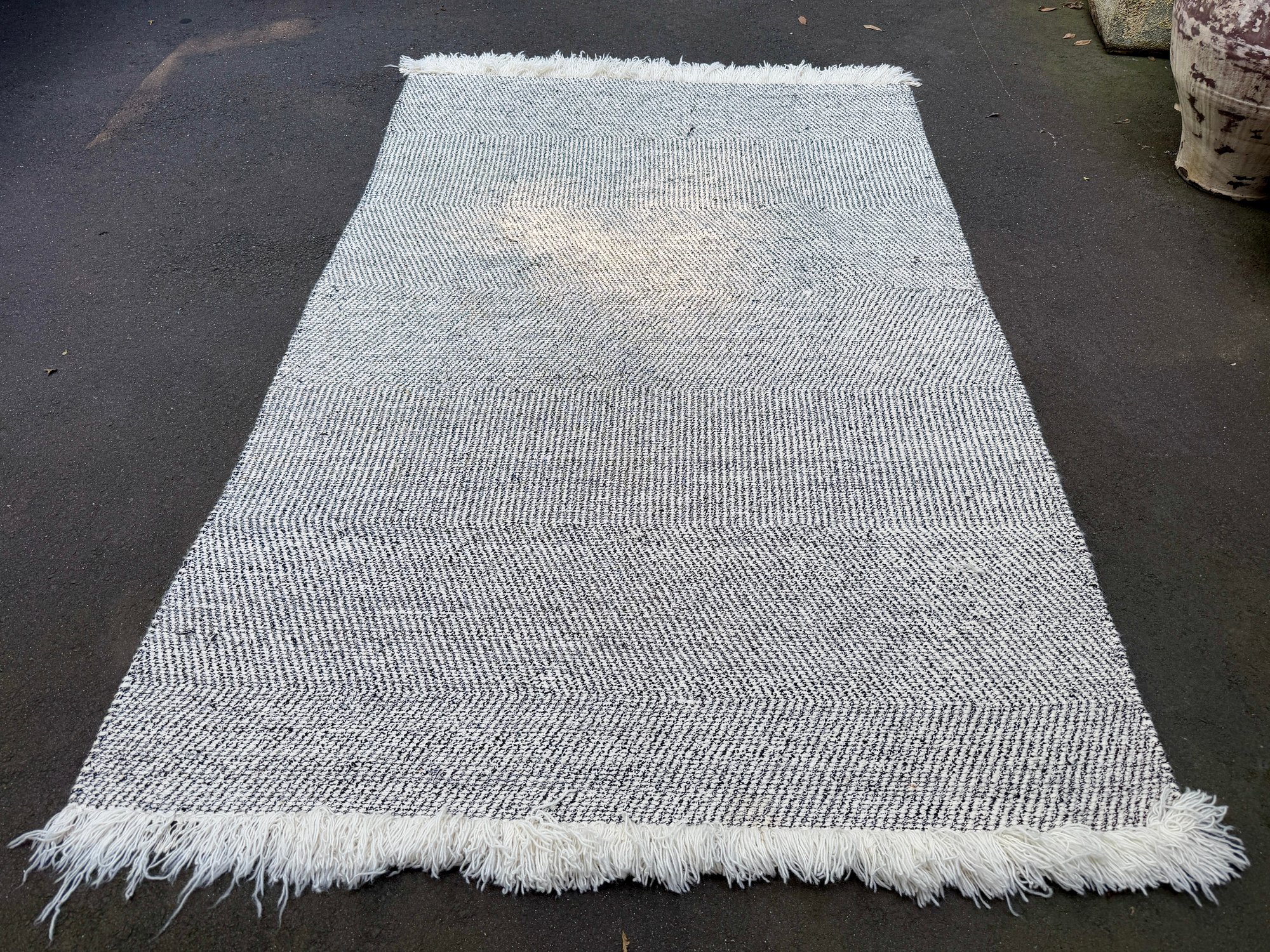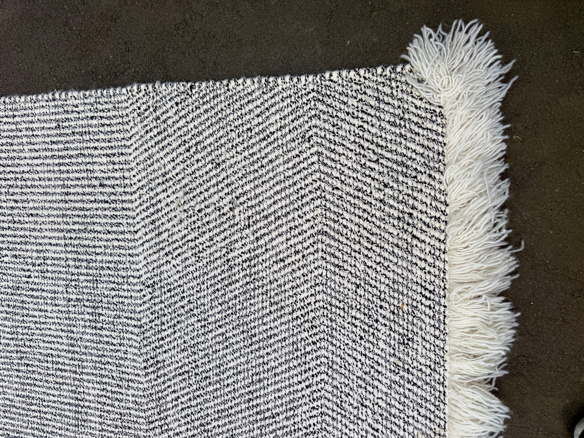 Underside of rug has a pink stain. Not visible from front