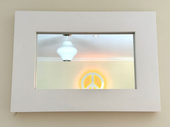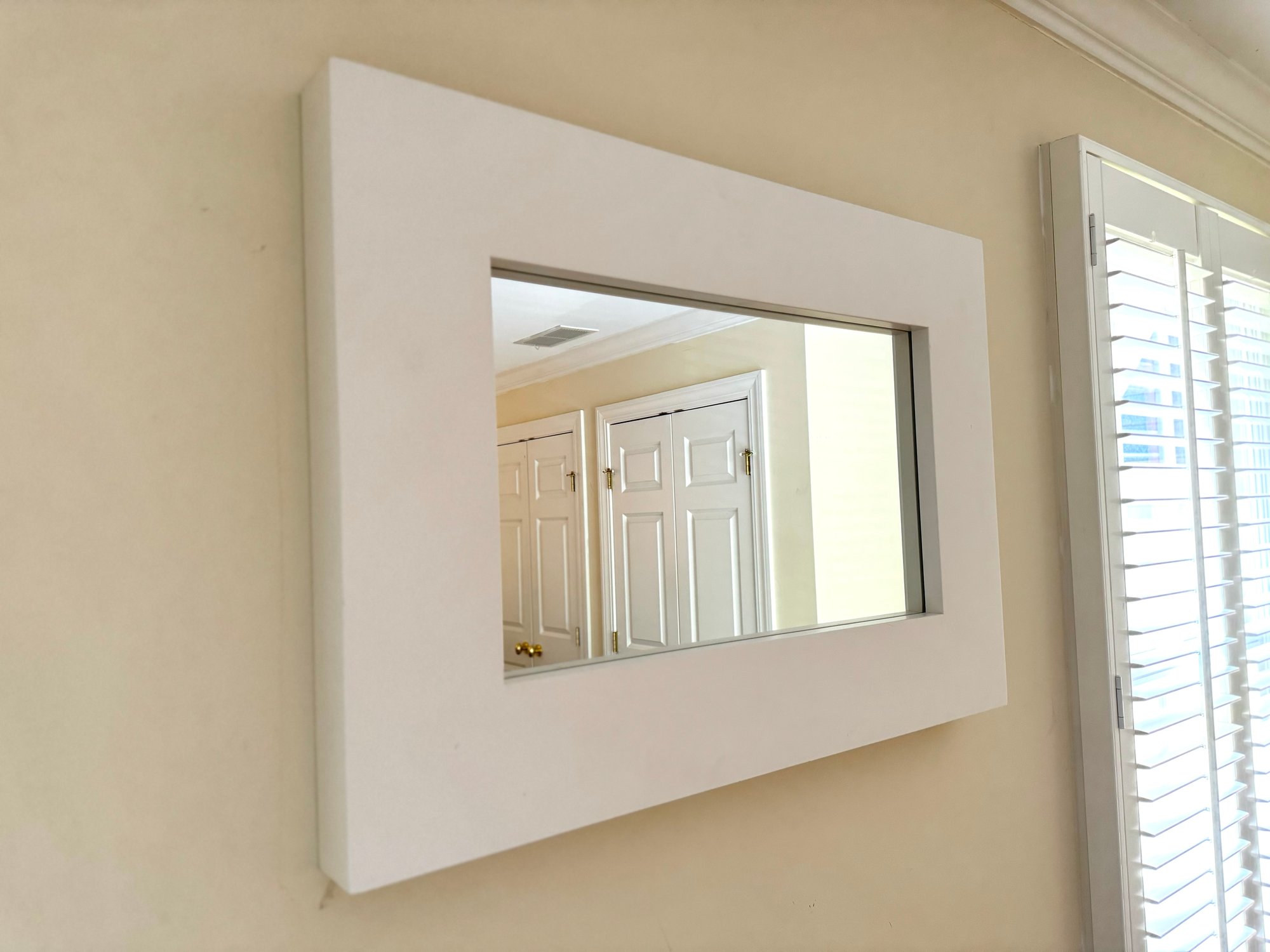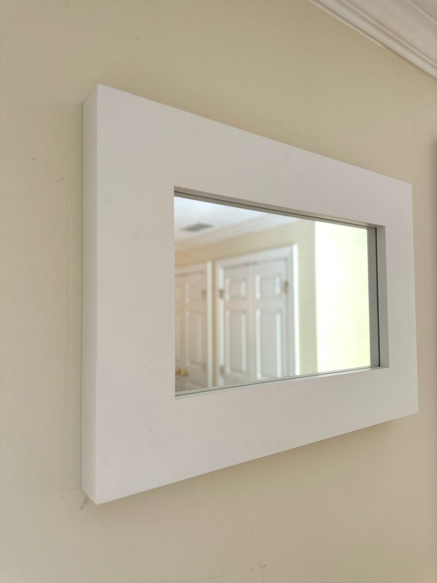 Light + Airy West Elm modern wall mirror with white border in white finish