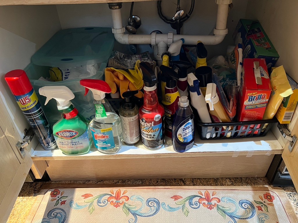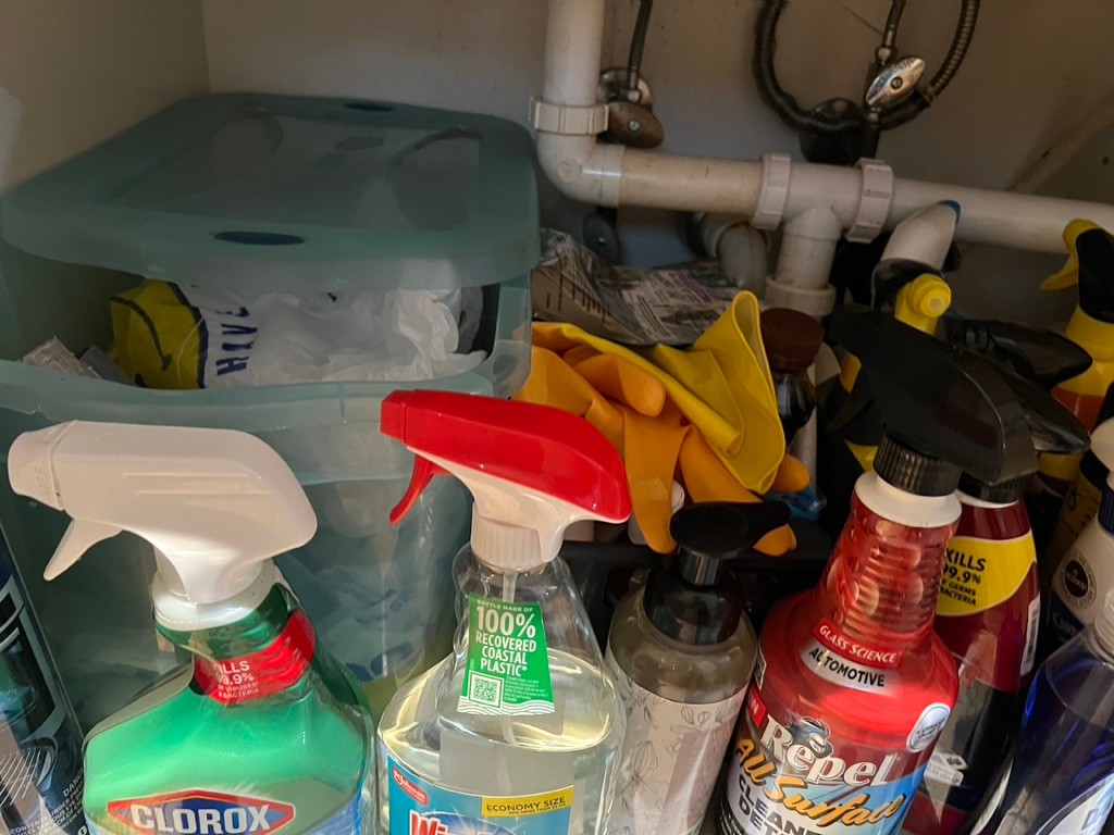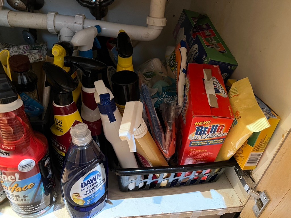 what's under your kitchen sink? this one is FULL! Everything under the sink!