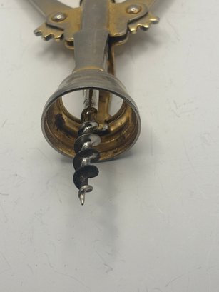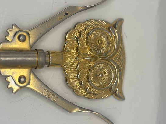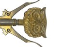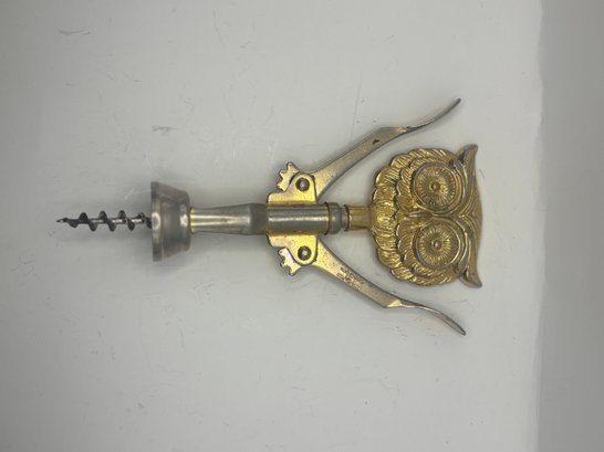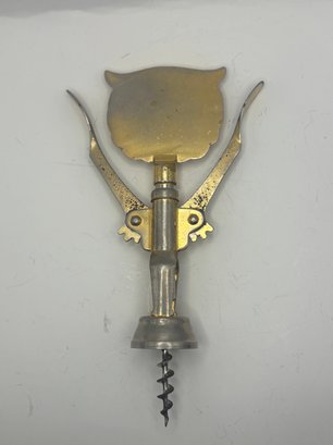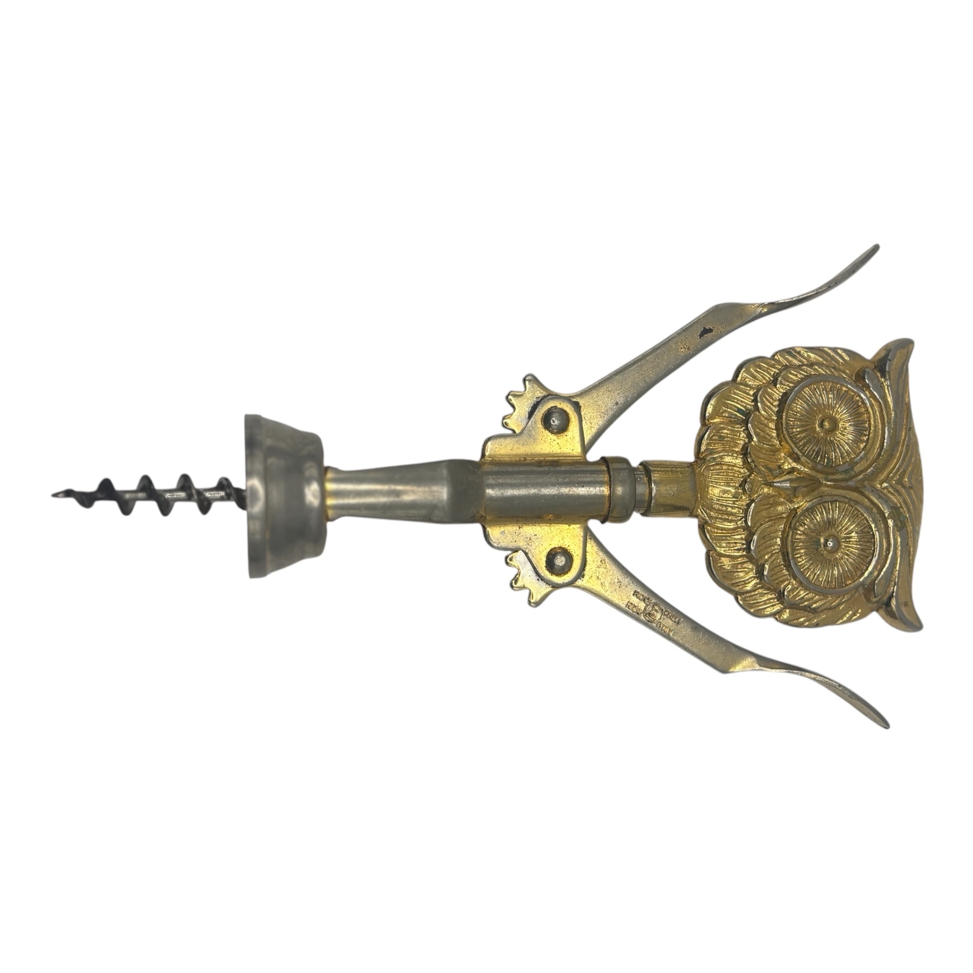 A wise little companion for your bar cart. This vintage brass corkscrew features a wonderfully sculpted owl head forming the handle, complete with bold, radiating eyes and feathered detailing that gives it loads of character. The wing-style lever arms fold outward for easy use, while the warm brass tone and gentle surface patina add to its old-soul charm.