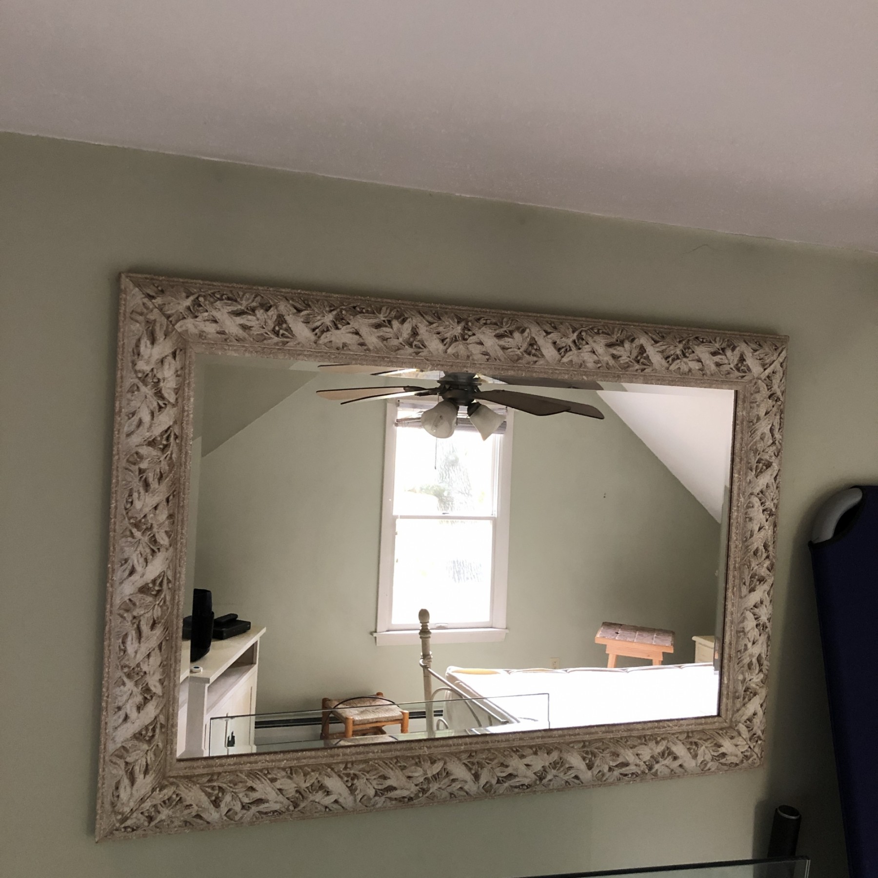 White Distressed Framed Mirror. Measures 38"x27".