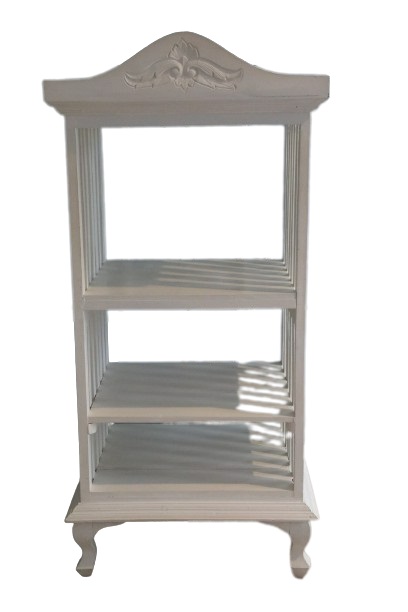 3 shelves, slat sides, decorative crest