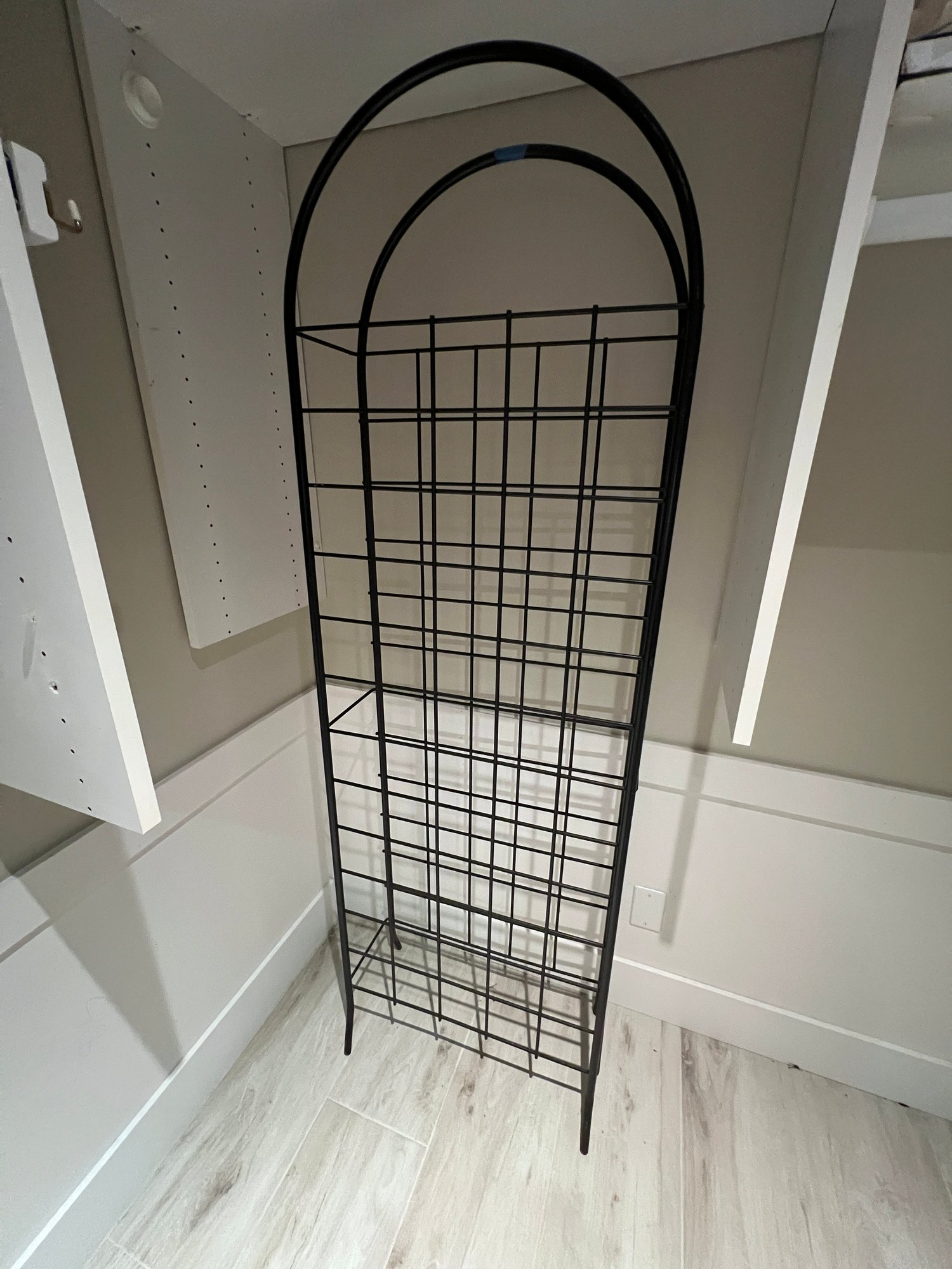 wine rack, tubular steel, holds 62 bottles, measures 22" wide x 67"high, by 8 1/2" deep