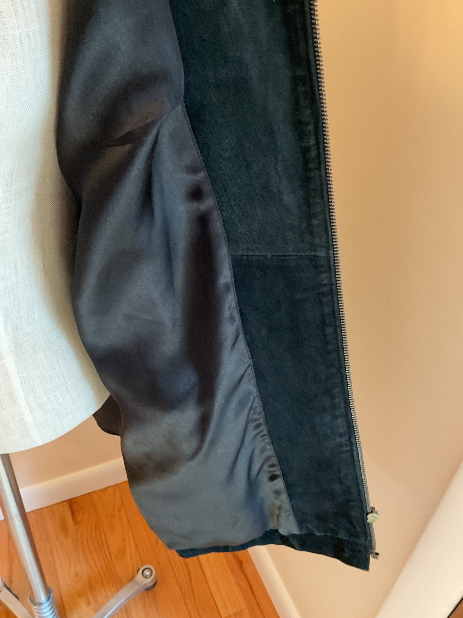 Beautiful black suede jacket, vintage from AMI. Zip front with 2 front pockets. Excellent condition.