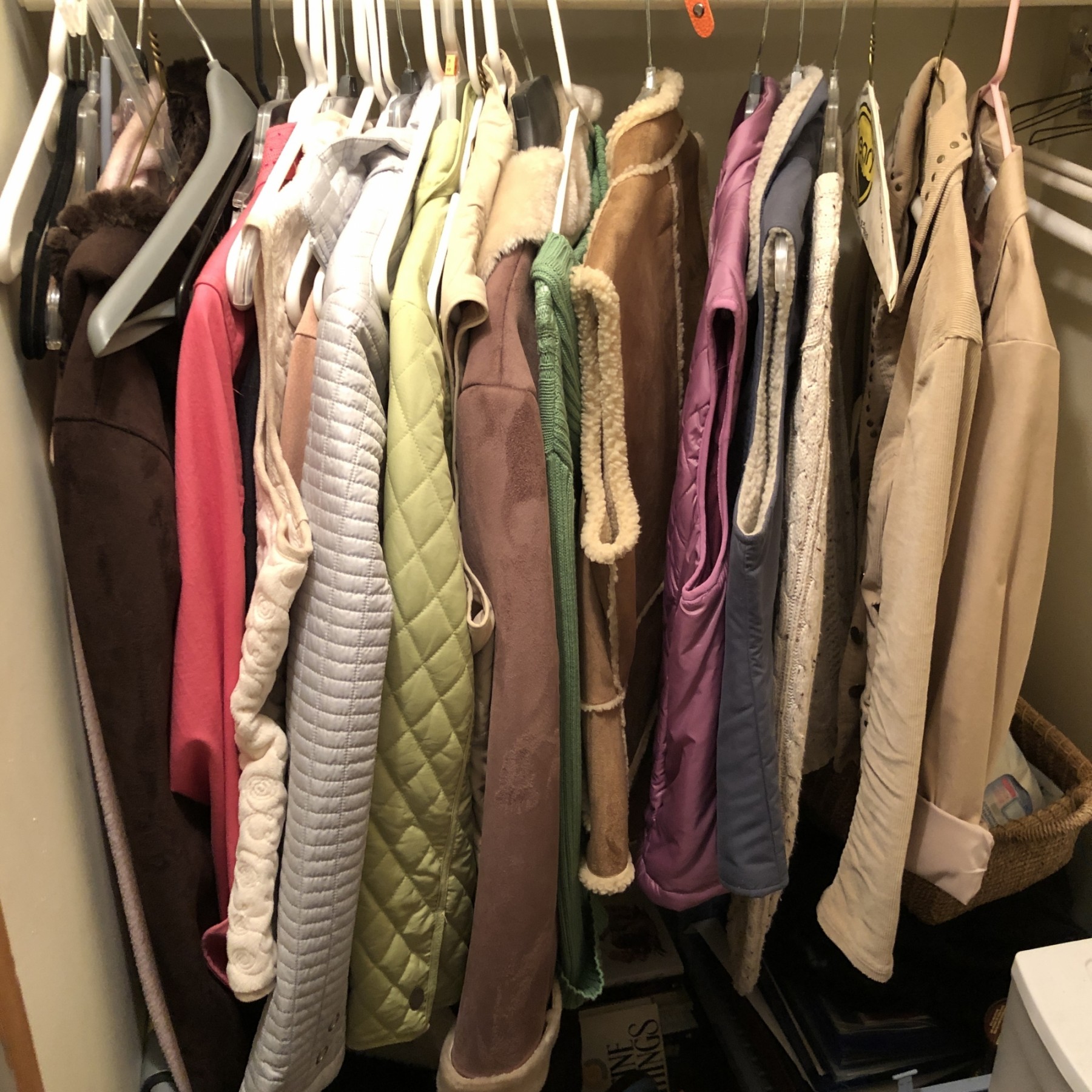 Women's coat lot, casual and winter coats in varying sizes and styles.