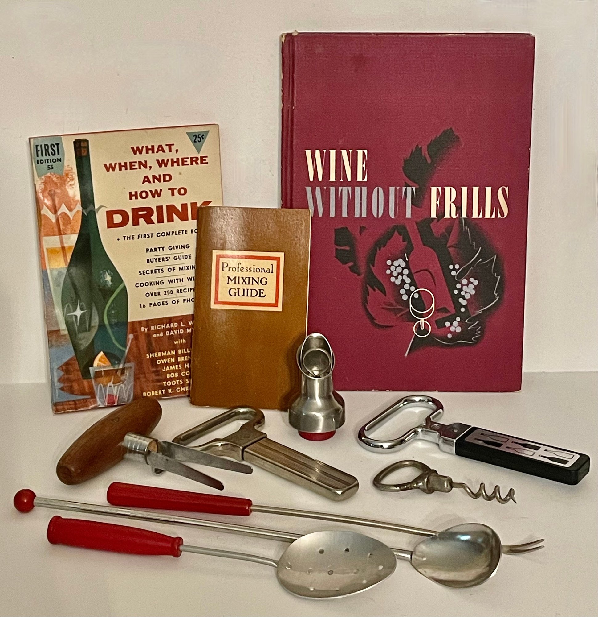 Great group of vintage bar items with very nice vintage books that are fun and interesting.