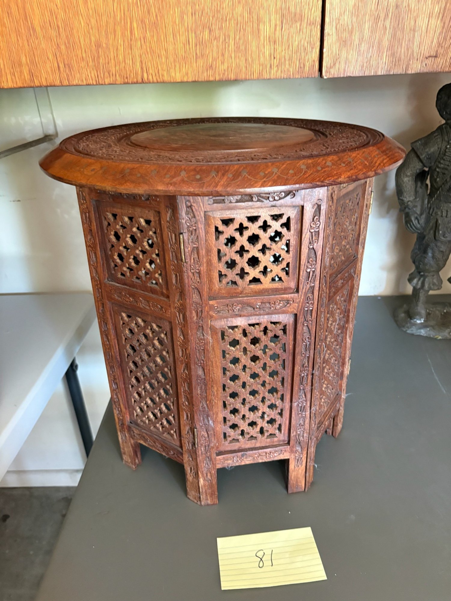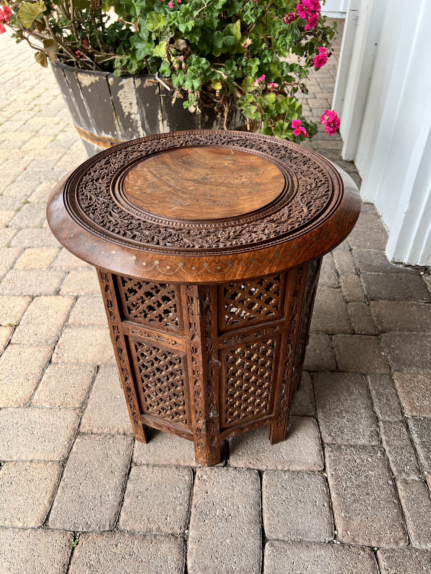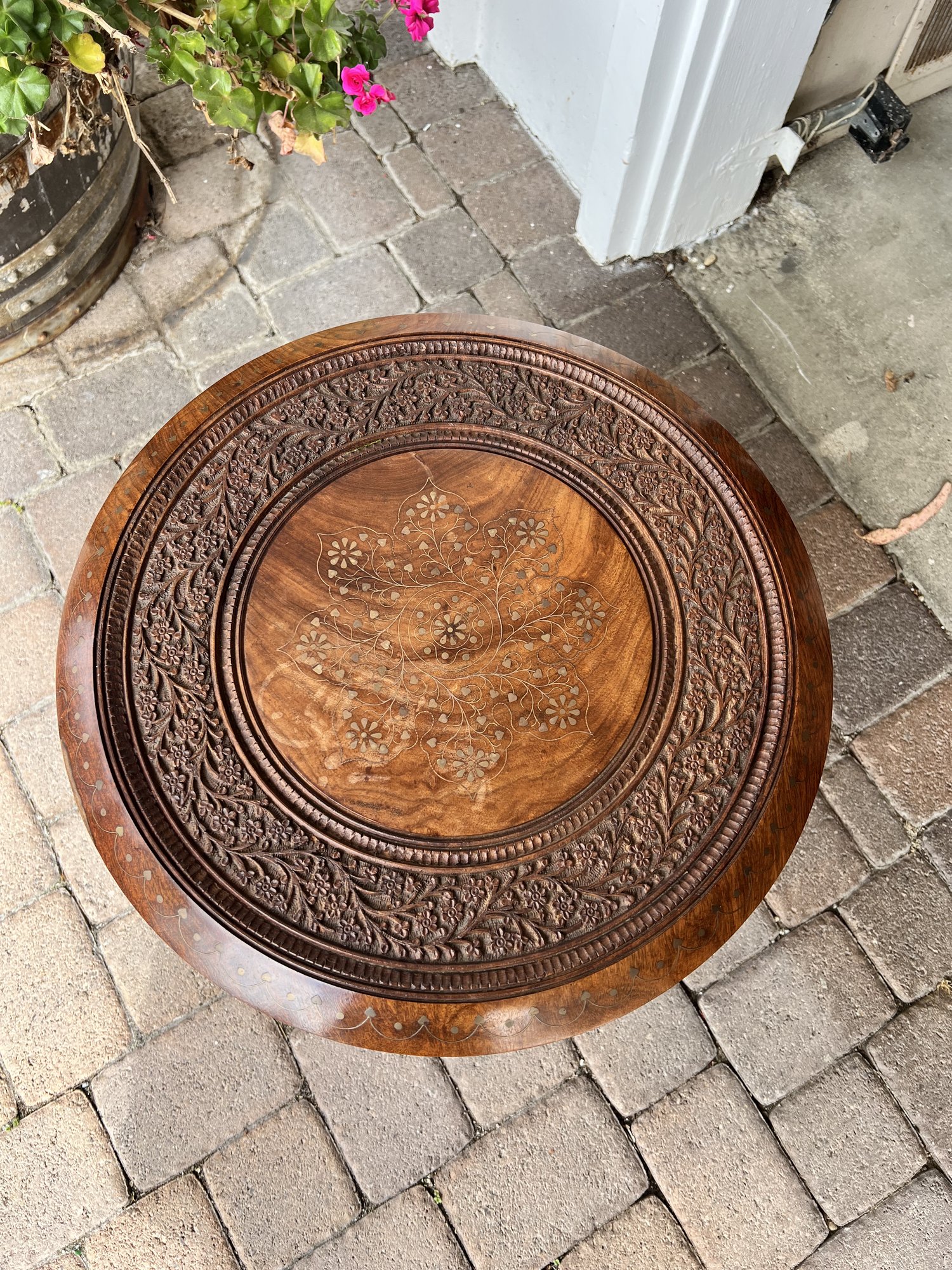 Rosewood Inlaid Indian Prayer Table With folding base 14"x14"x19"H