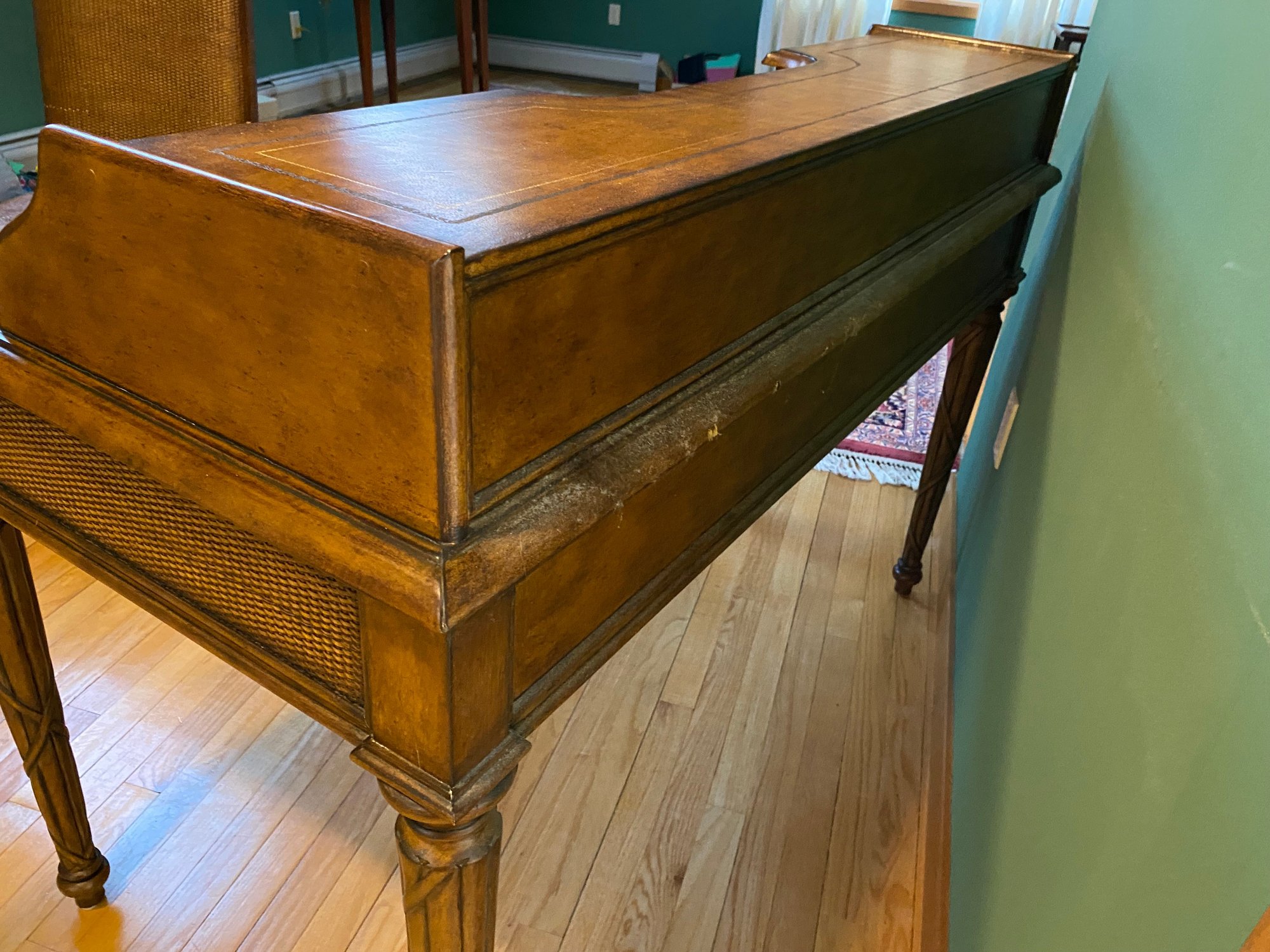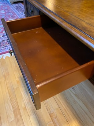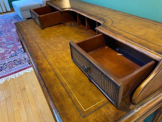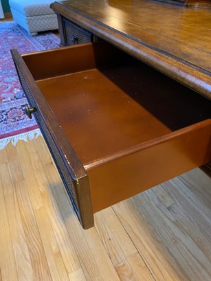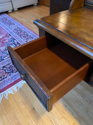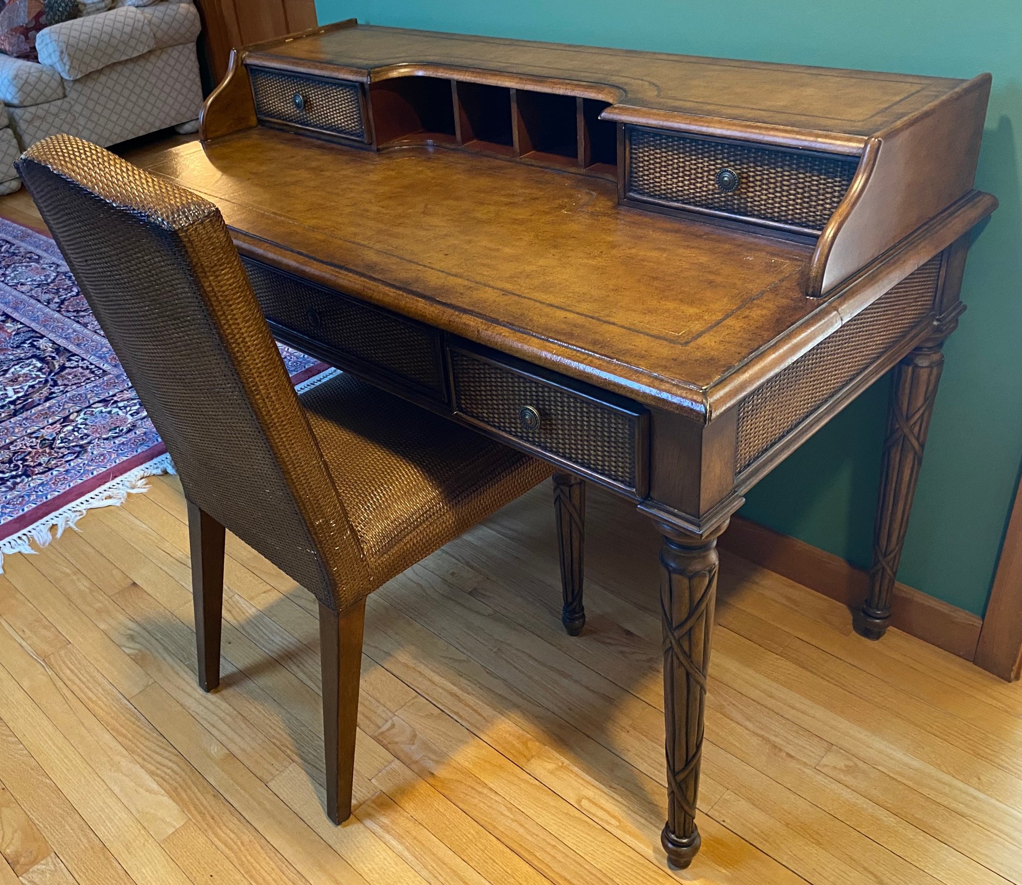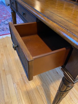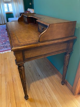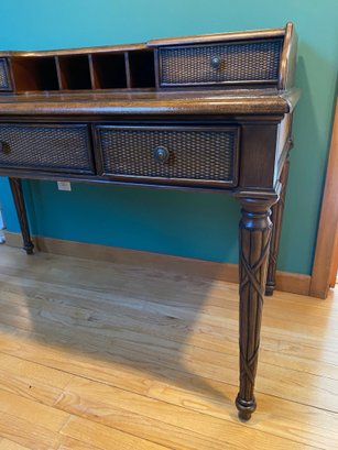 Wooden Rattan Style Writing Desk And Chair Set