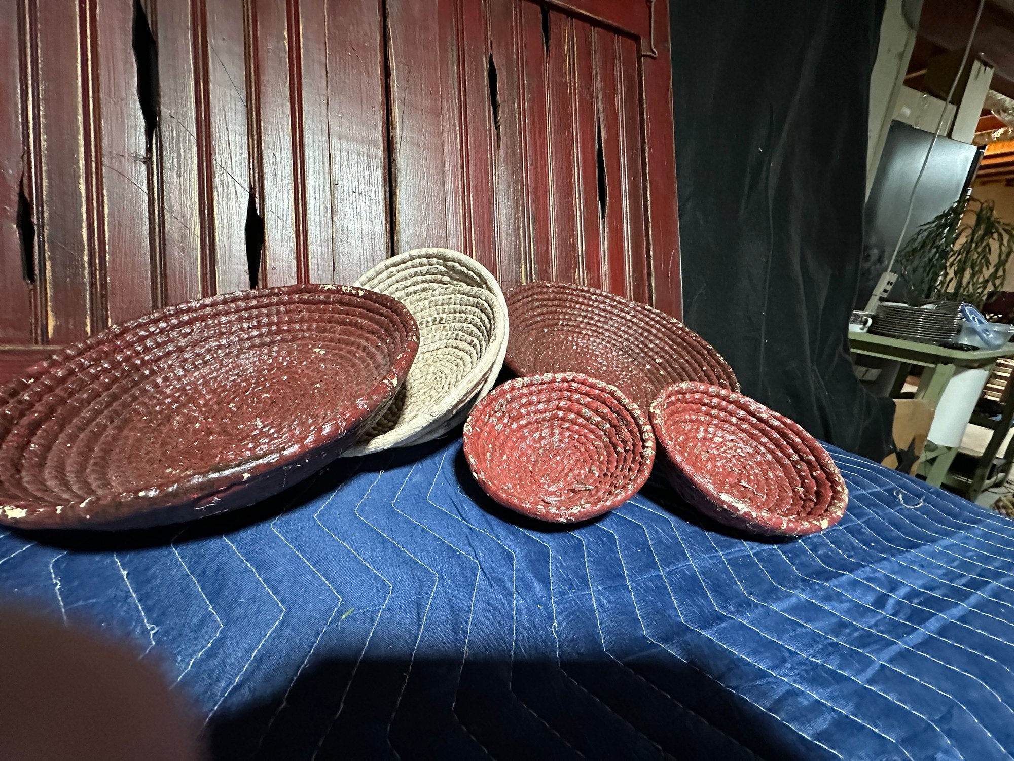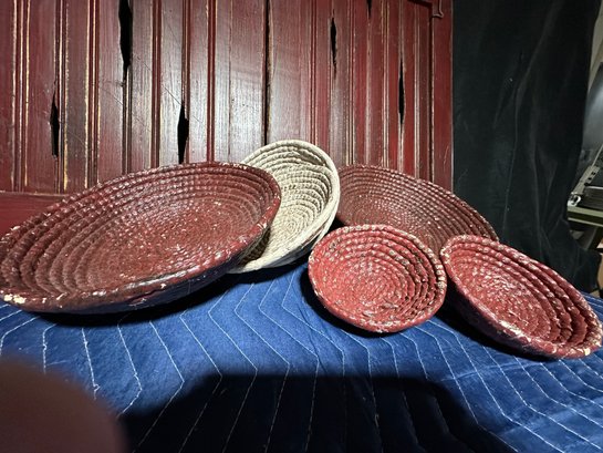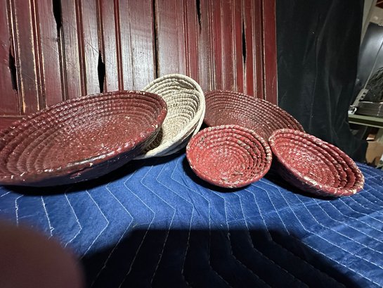 Woven Fabric Baskets That Are Painted So They Are Hard - 6 Pcs.