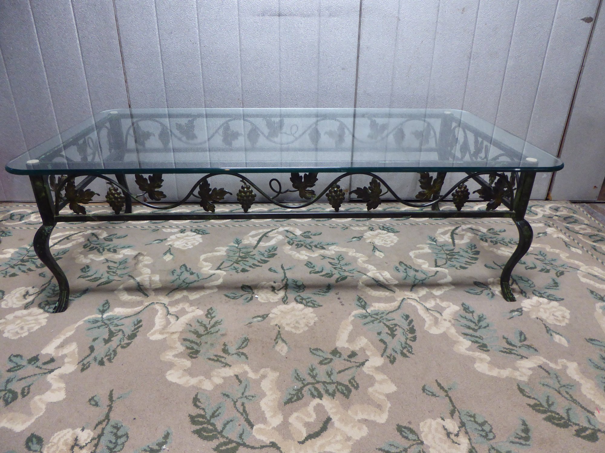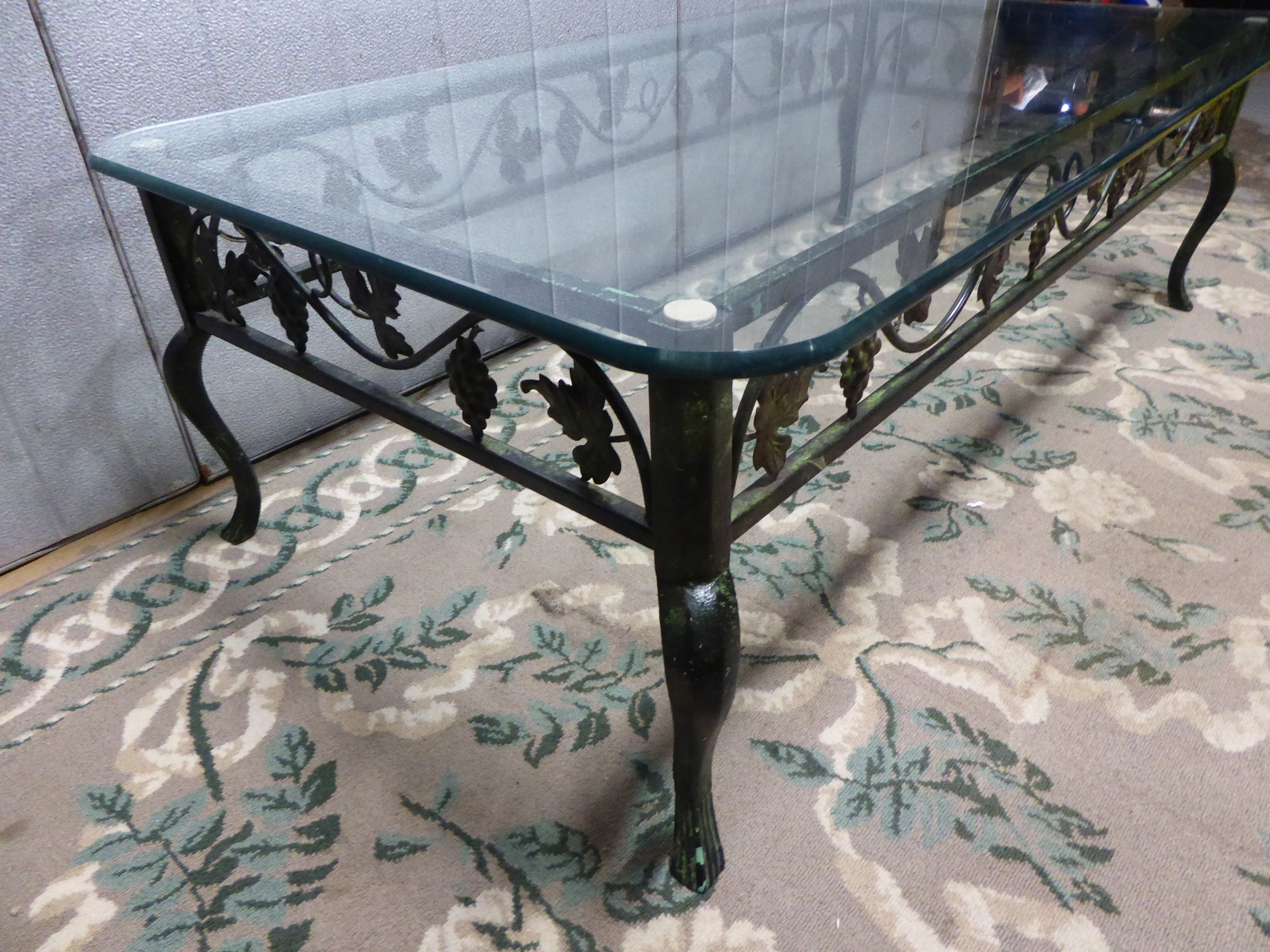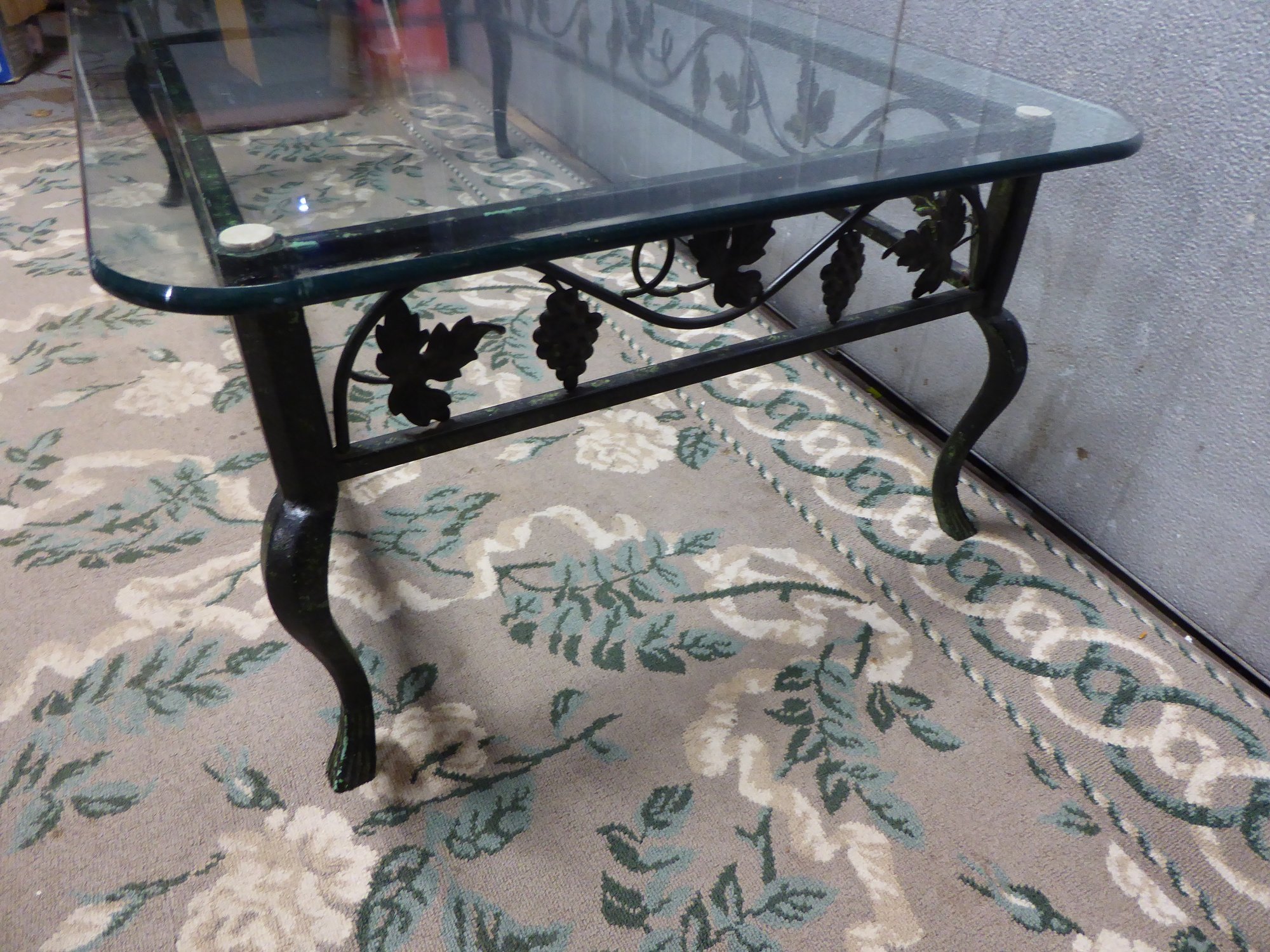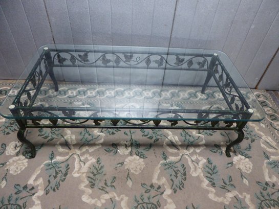 Wrought Iron Leaf And Grape Pattern Glass Top Coffee Table
